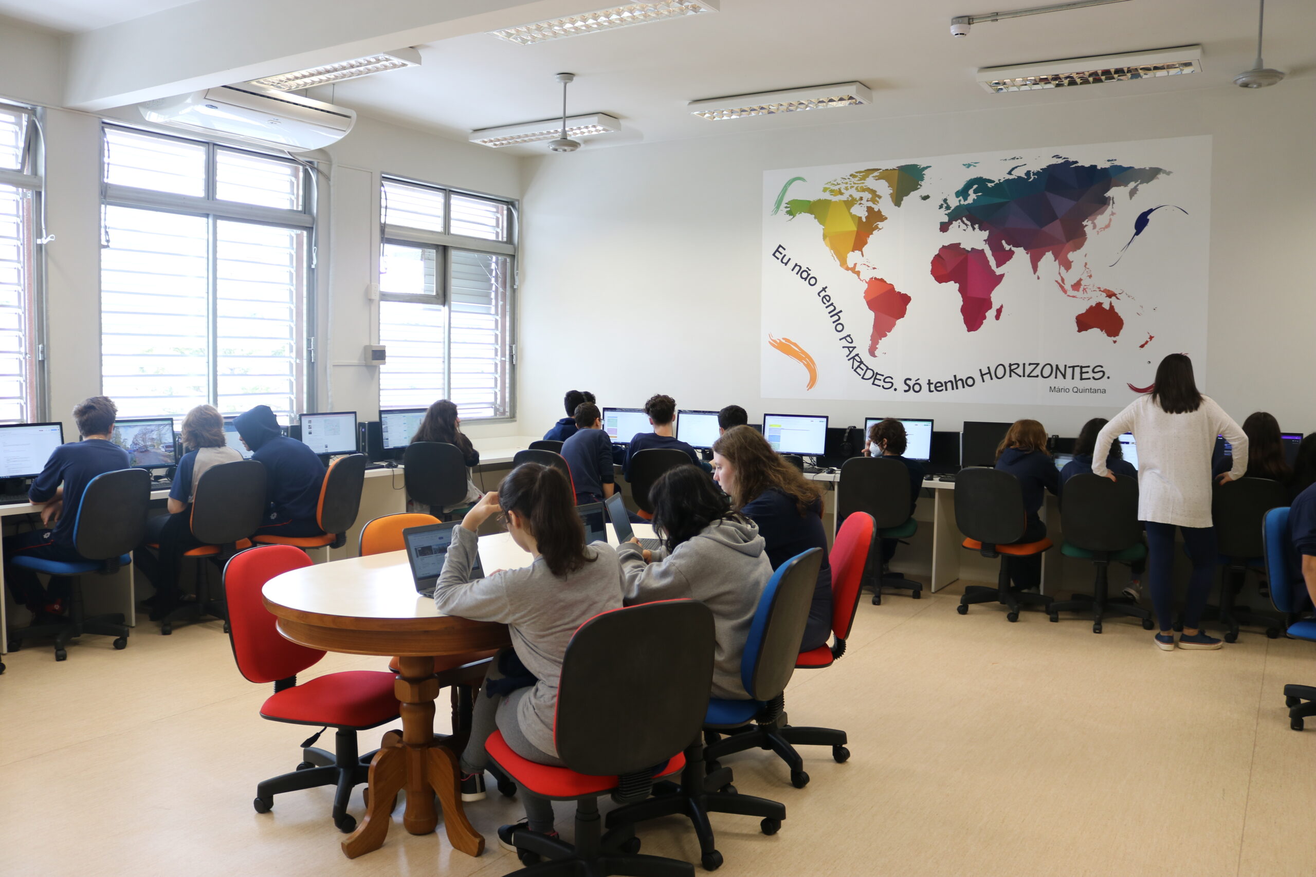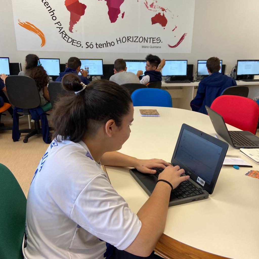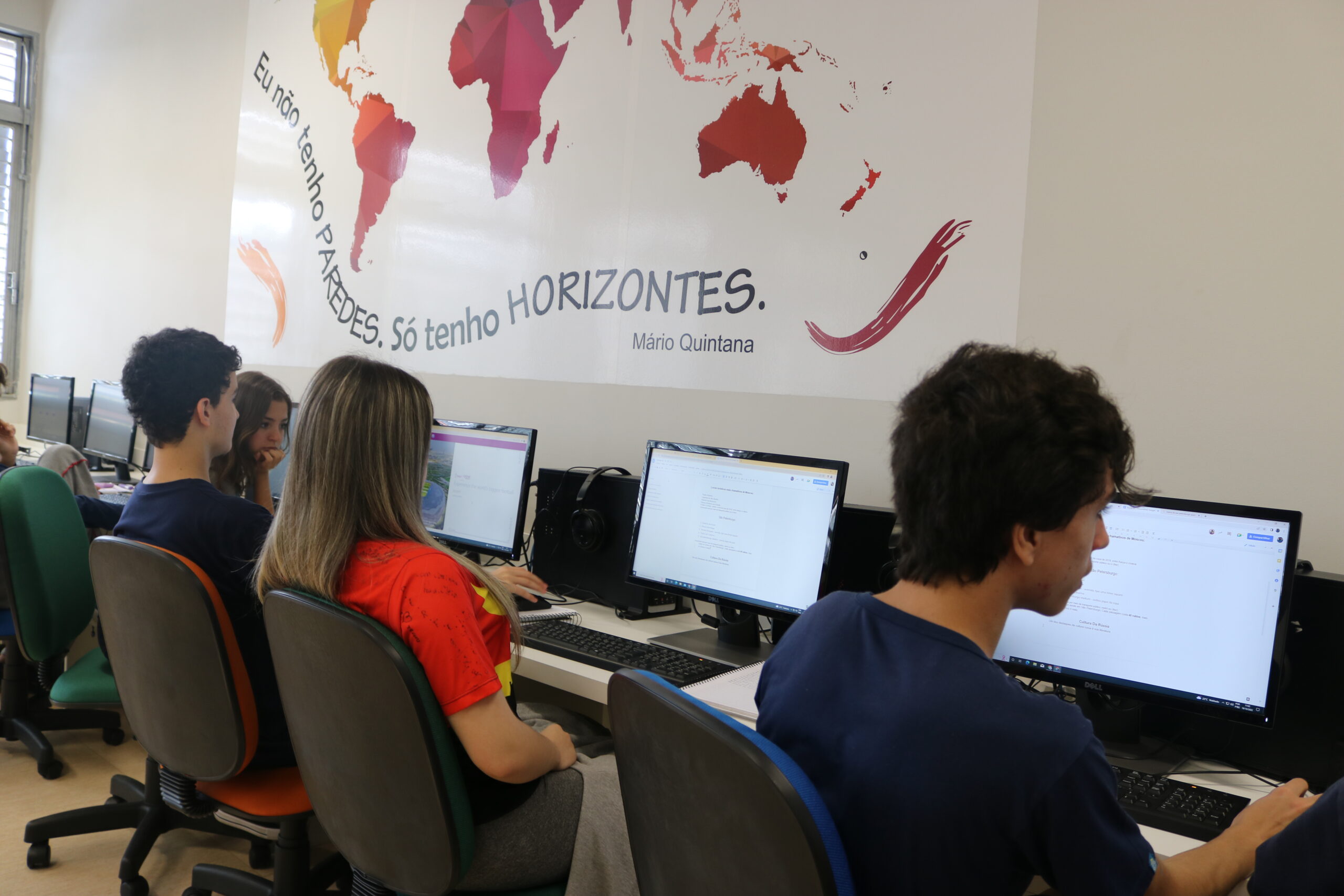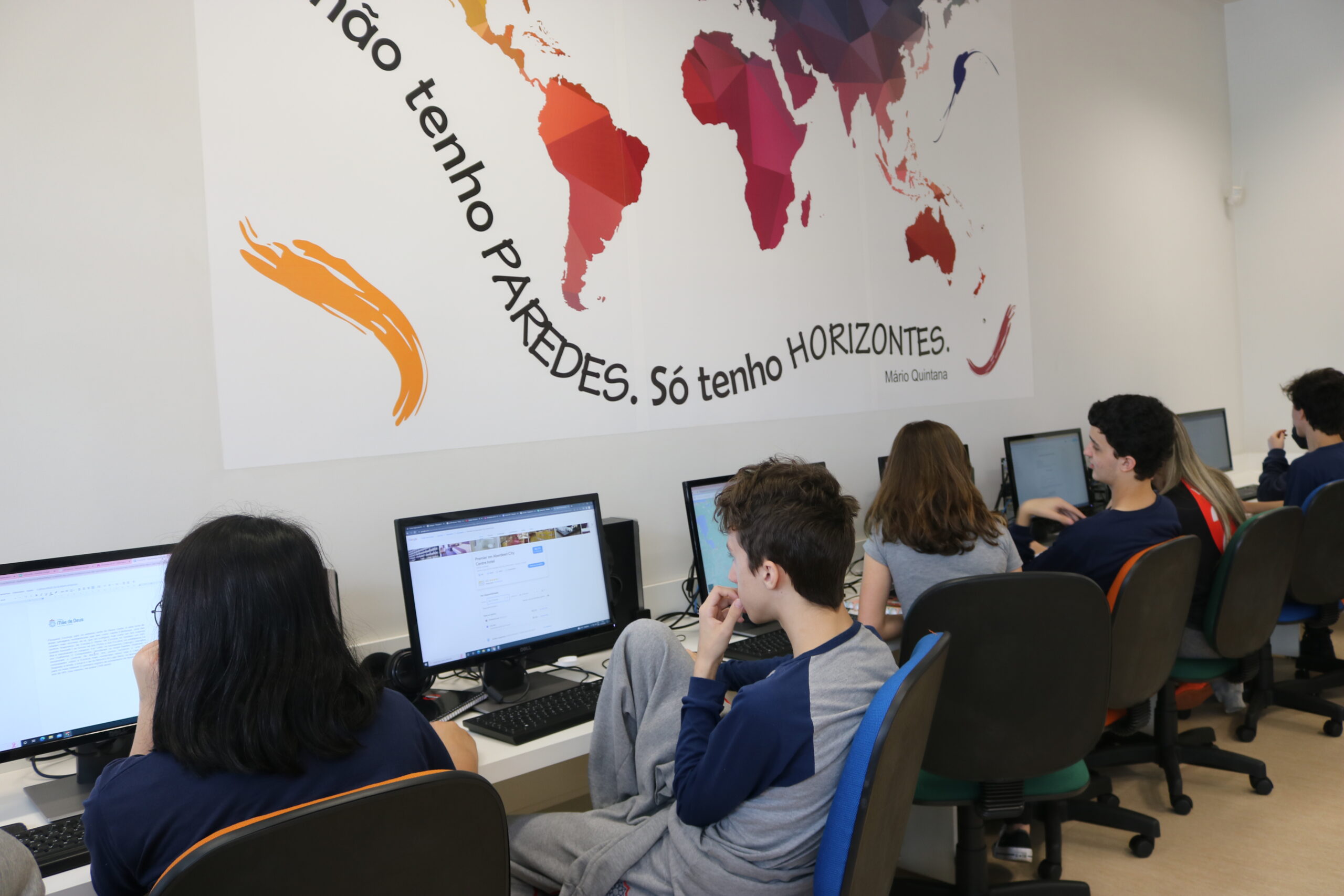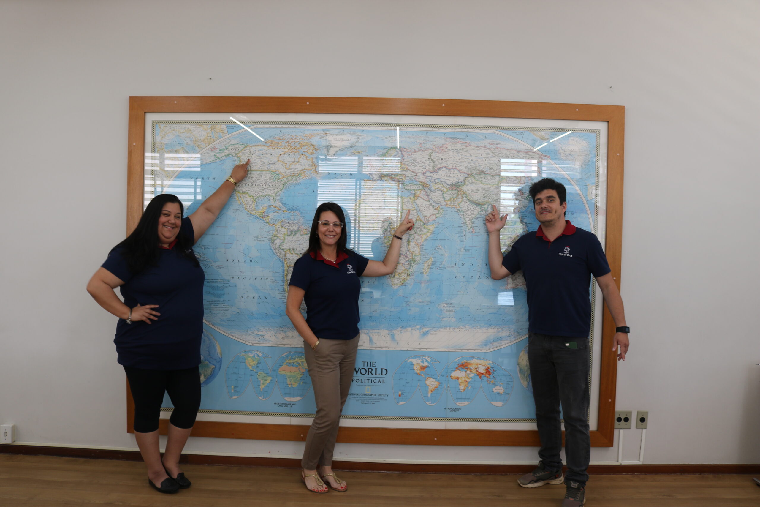 Por meio das disciplinas de Matemática, Língua Portuguesa e Geografia, os alunos do 9° Ano do Ensino Fundamental estão realizando o projeto “Viajando pelo Mundo”. O objetivo é incentivá-los a elaborar um roteiro de viagem que contenha toda a logística para um período de férias de 15 dias em um país estrangeiro.