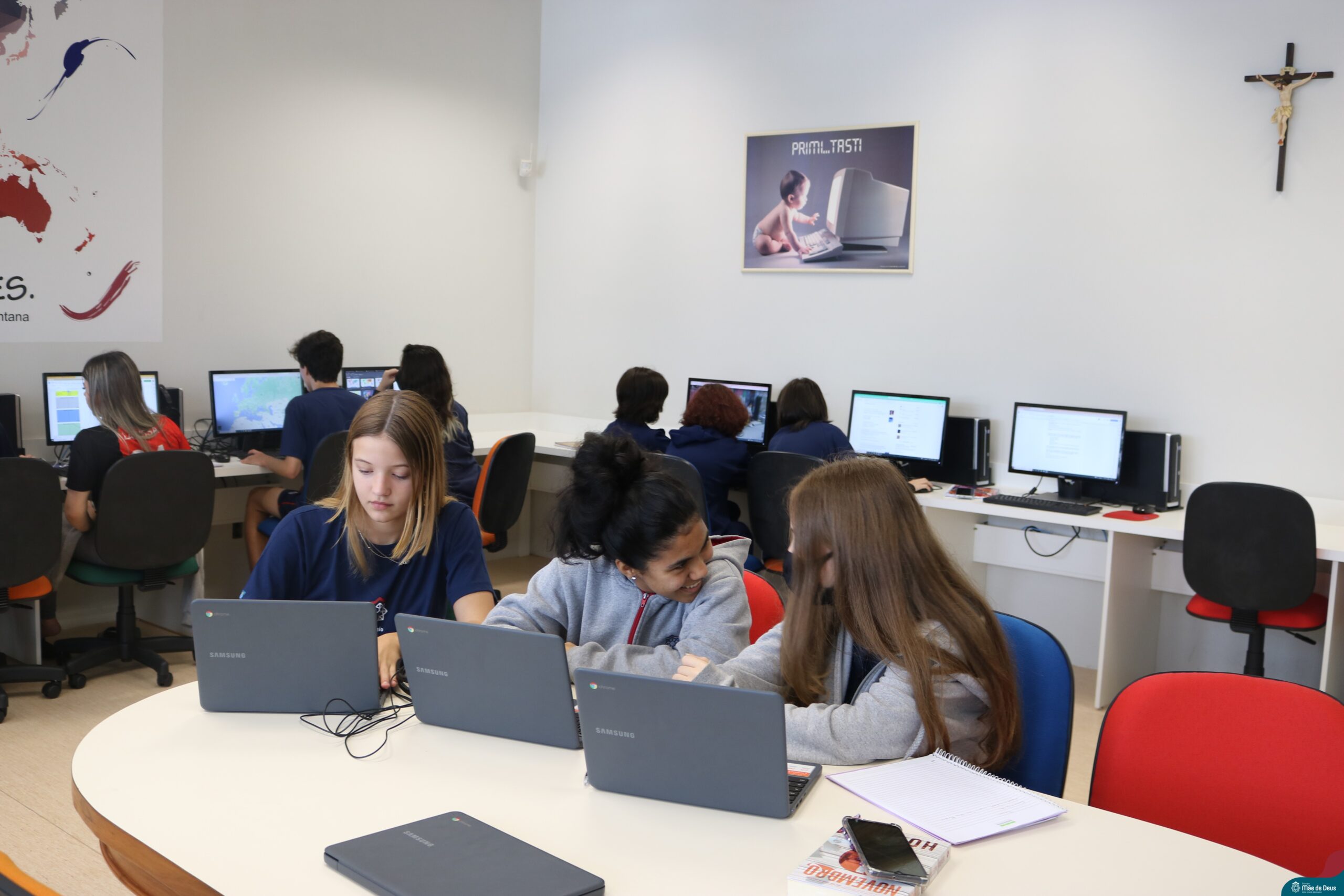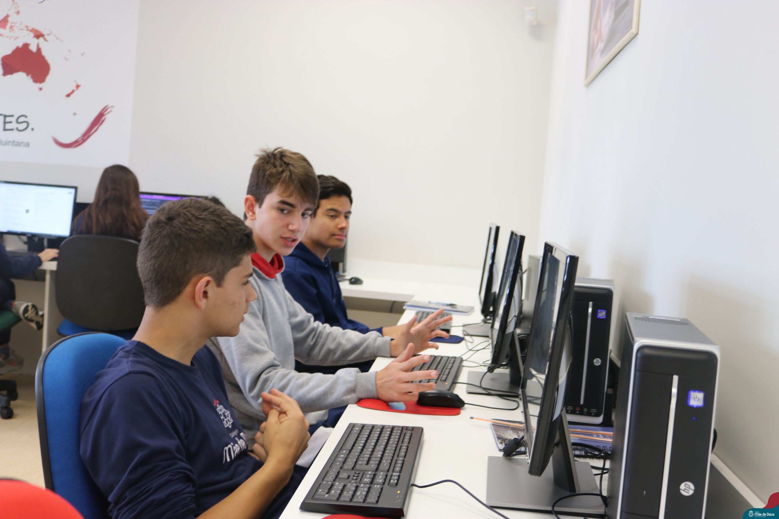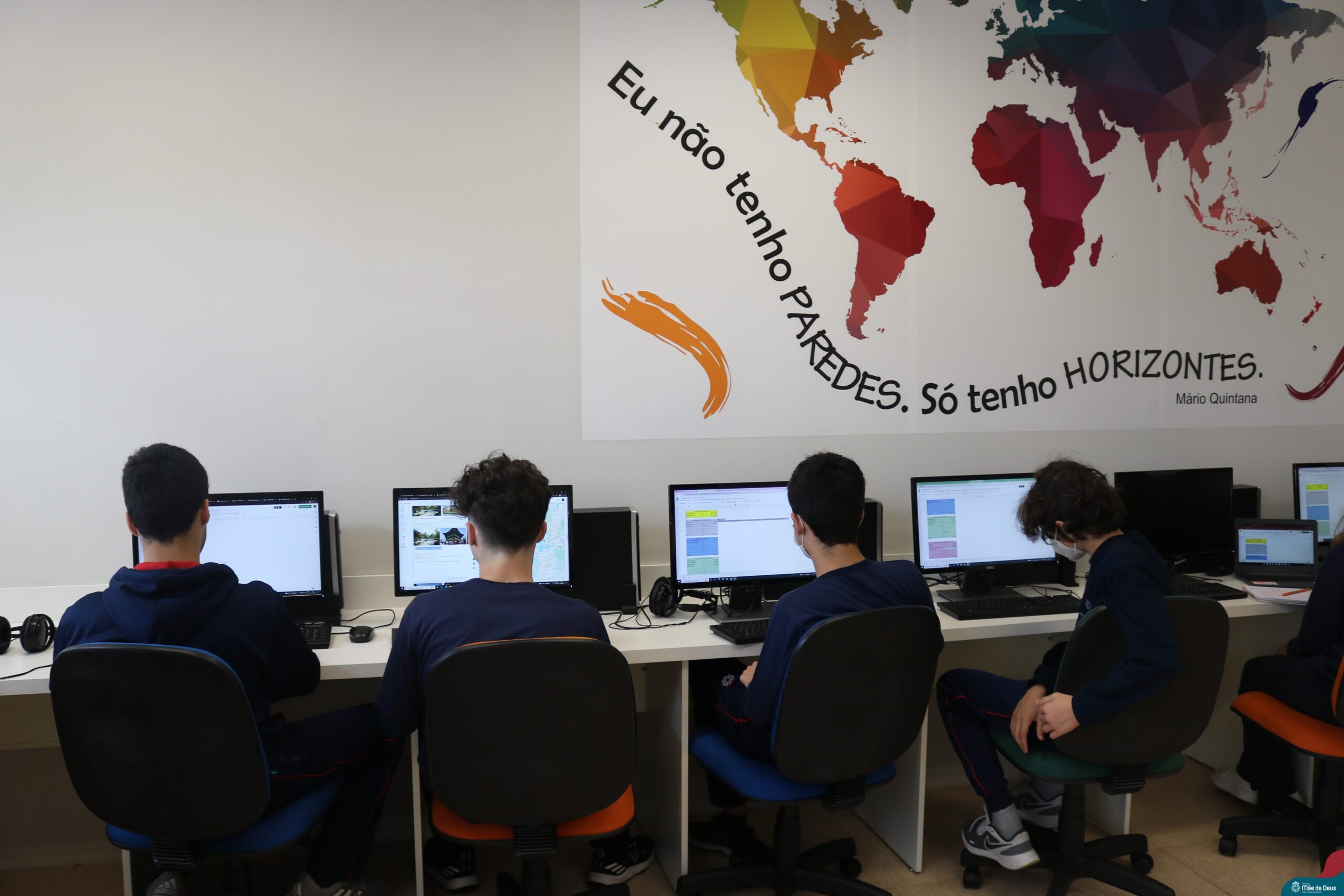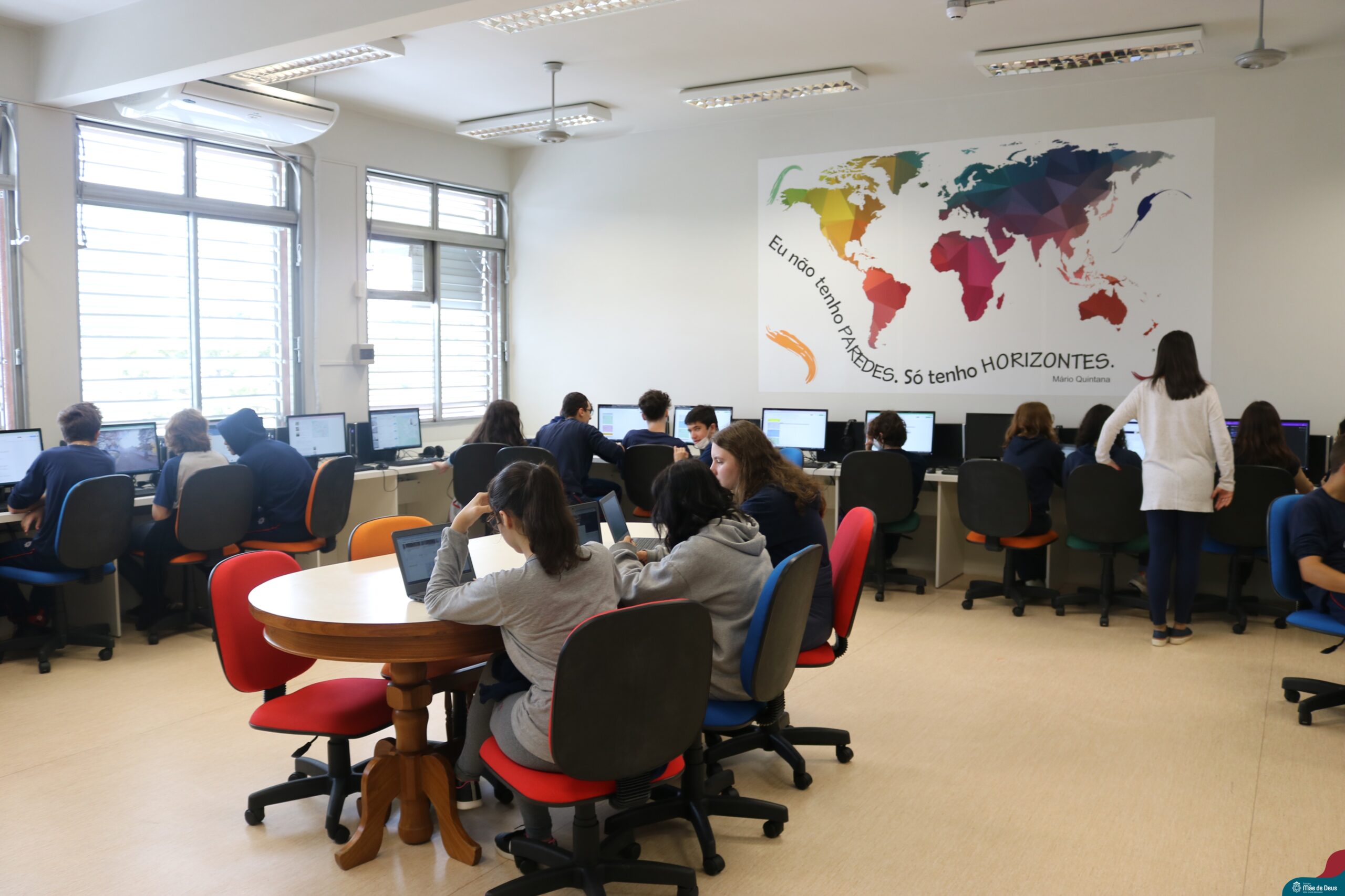 Os alunos do 9° ano do Ensino Fundamental realizaram o projeto interdisciplinar “Viajando pelo mundo”. O projeto integra os componentes curriculares de Matemática, Língua Portuguesa e Geografia, e teve como objetivo incentivar os estudantes do 9º ano a elaborar um roteiro de viagem que organizasse toda a logística para um período de férias (15 dias) em um país estrangeiro.