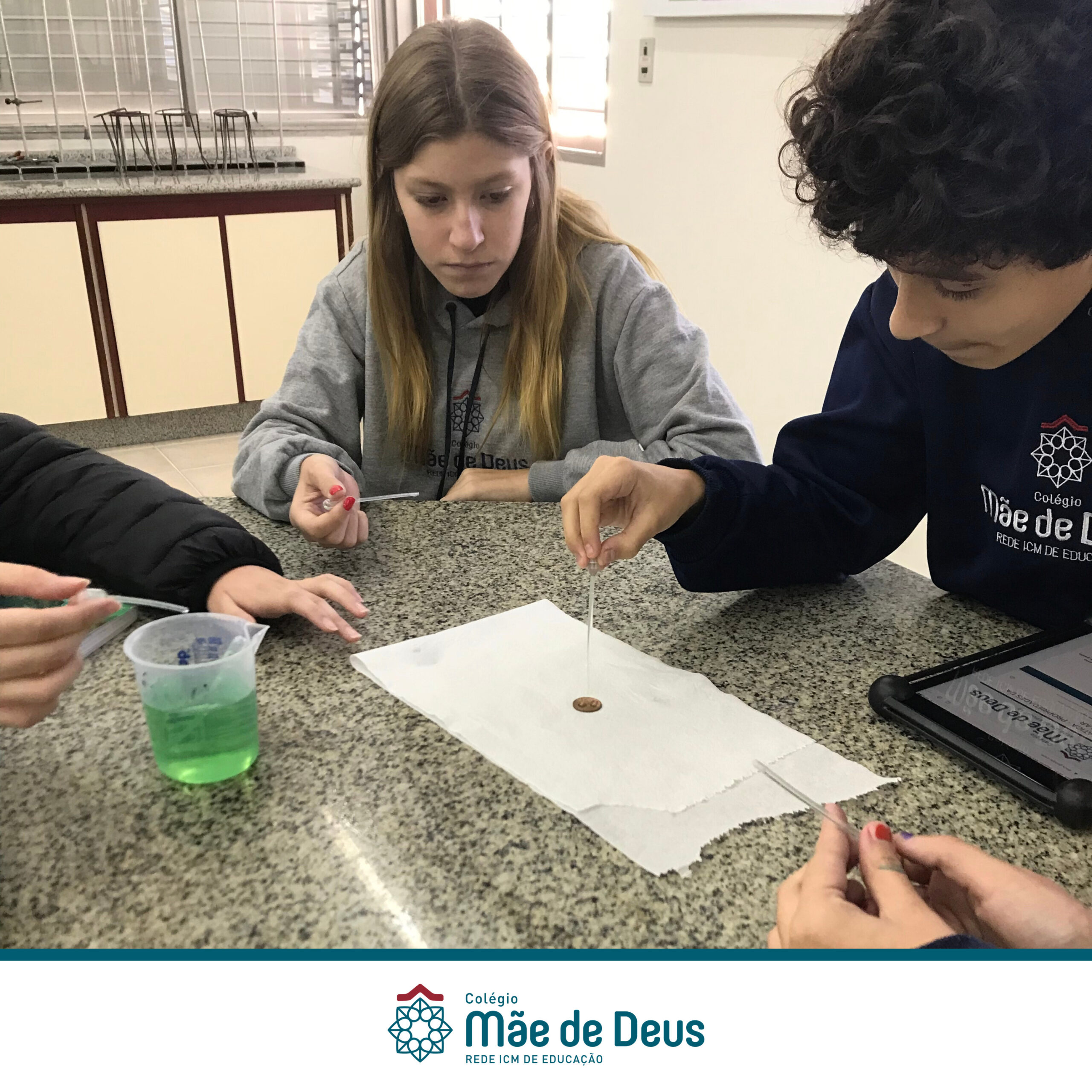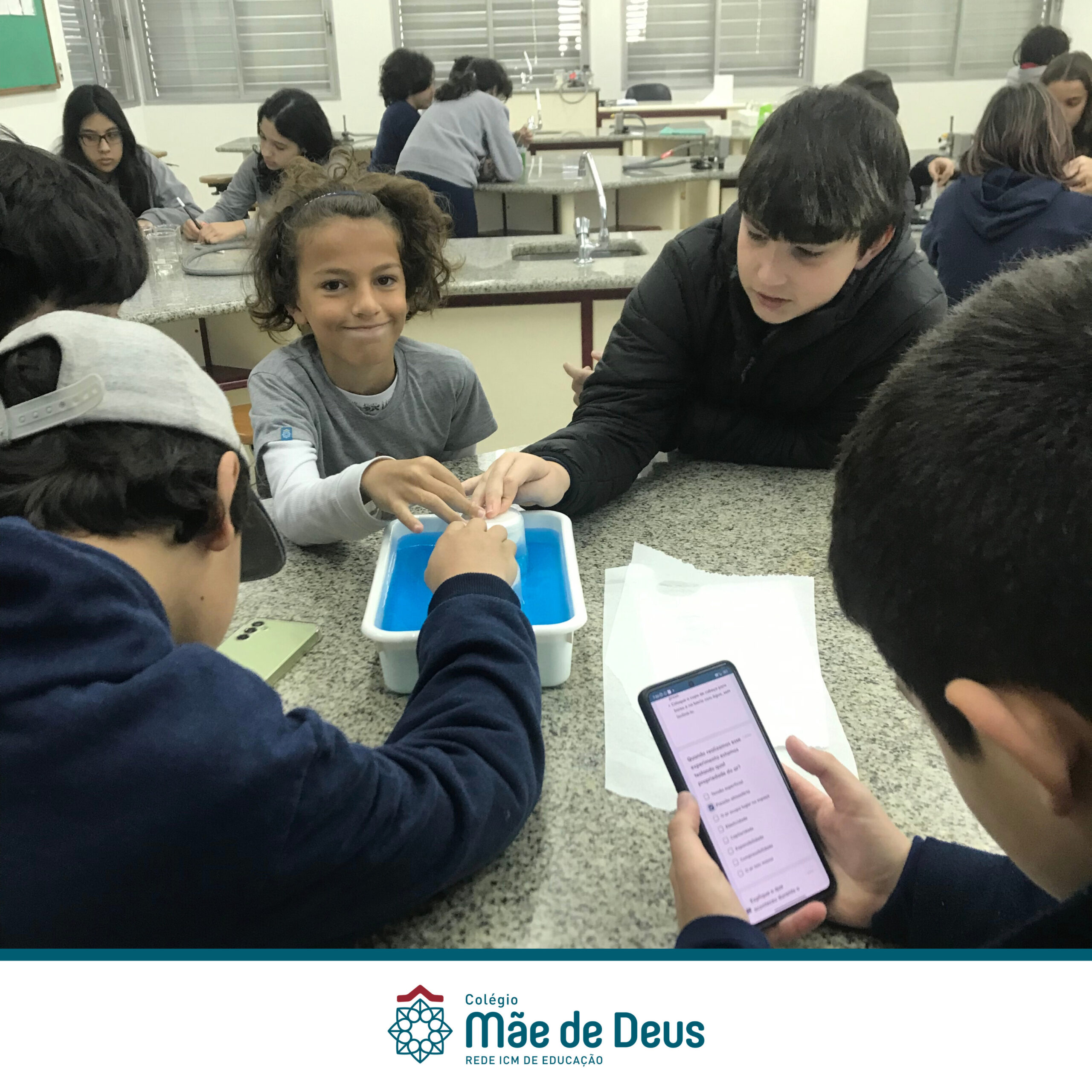Os alunos do 6º Ano foram ao laboratório para estudarem de forma prática sobre as propriedades da água e do ar.