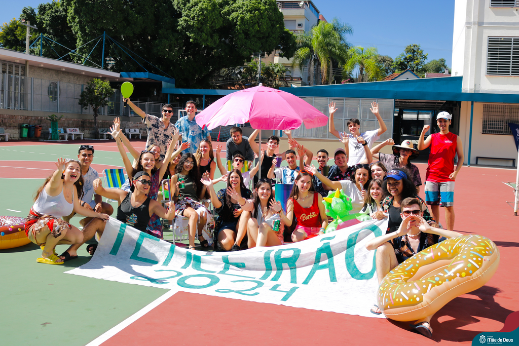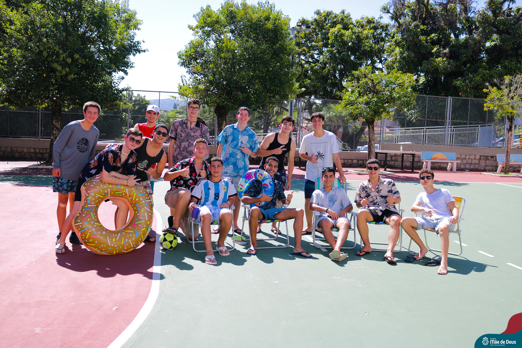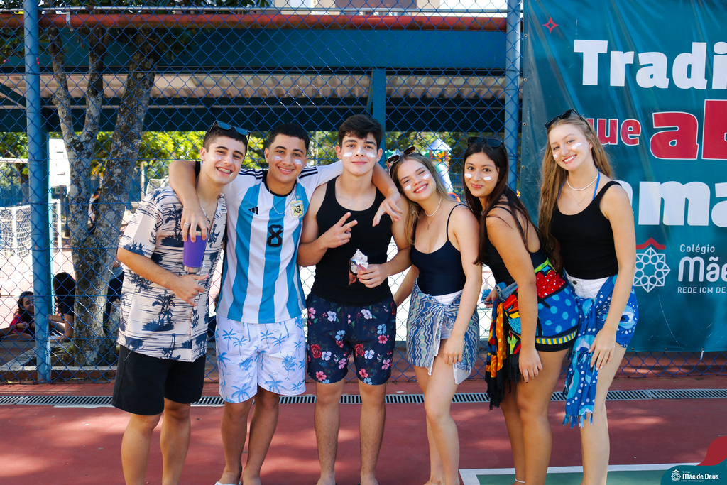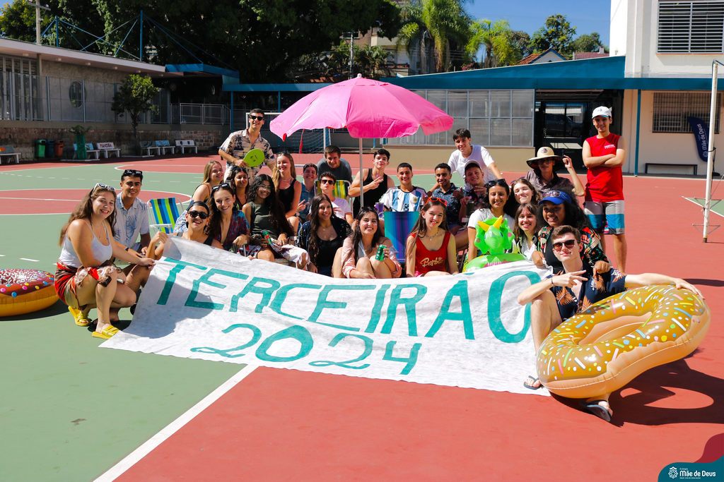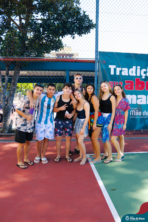 Os nossos alunos do Terceirão arrasaram no recreio temático com o tema de praia. Vestidos com trajes típicos e coloridos, eles trouxeram a vibe ensolarada das praias para dentro do colégio. Todos estavam no clima!