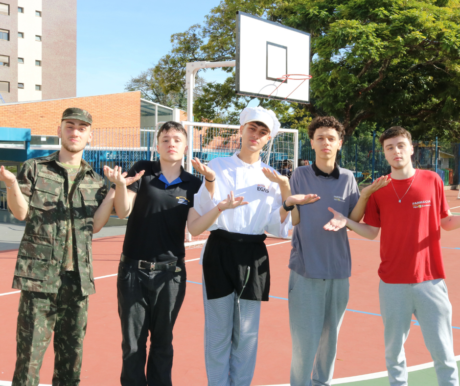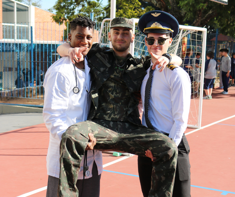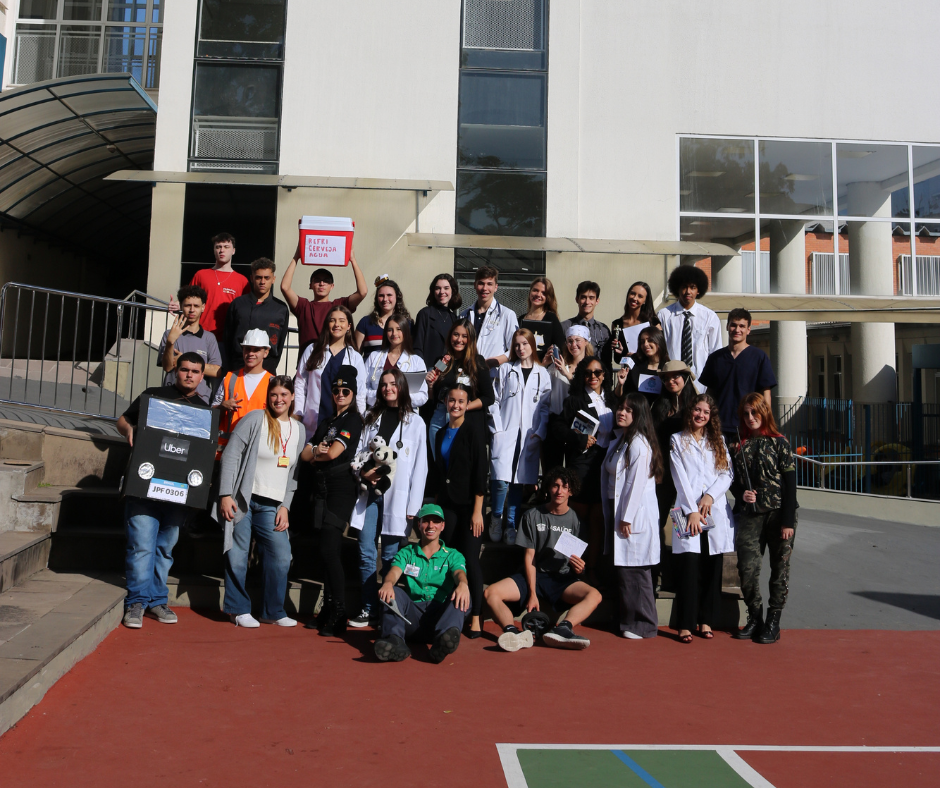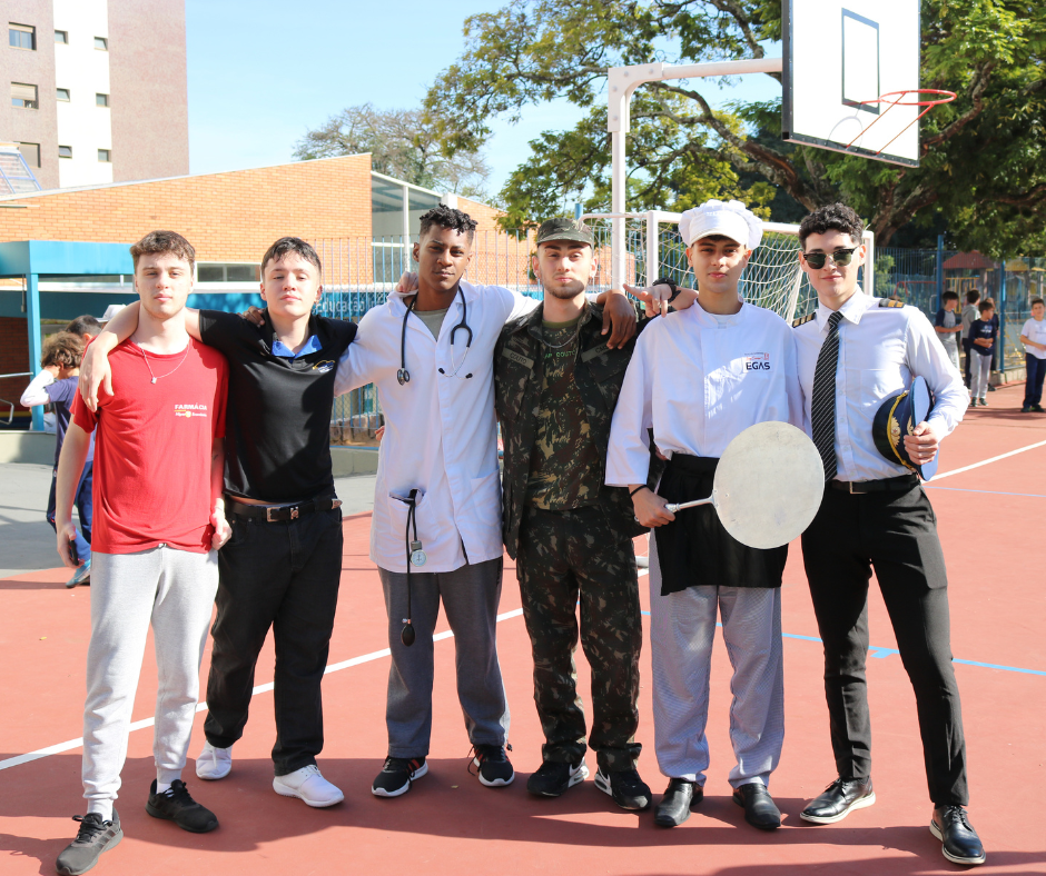 No recreio de hoje (24/05), as turmas 301 e 302, da 3ª Série do Ensino Médio, realizaram o quarto Recreio Temático deste ano, com o tema “Profissões”.
