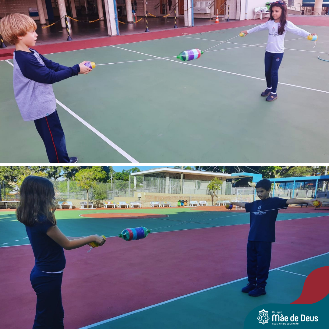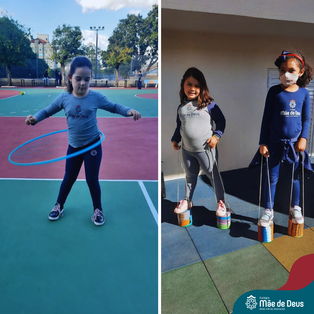 Foram proporcionadas aos alunos do TUIMD, diversas brincadeiras que eram praticadas no passado. As crianças ajudaram a montar os brinquedos e posteriormente usufruíram de cada um deles com muita alegria!