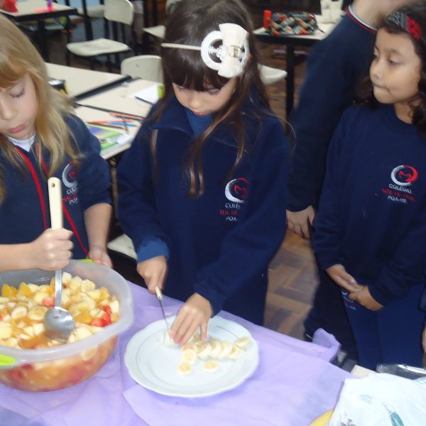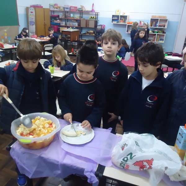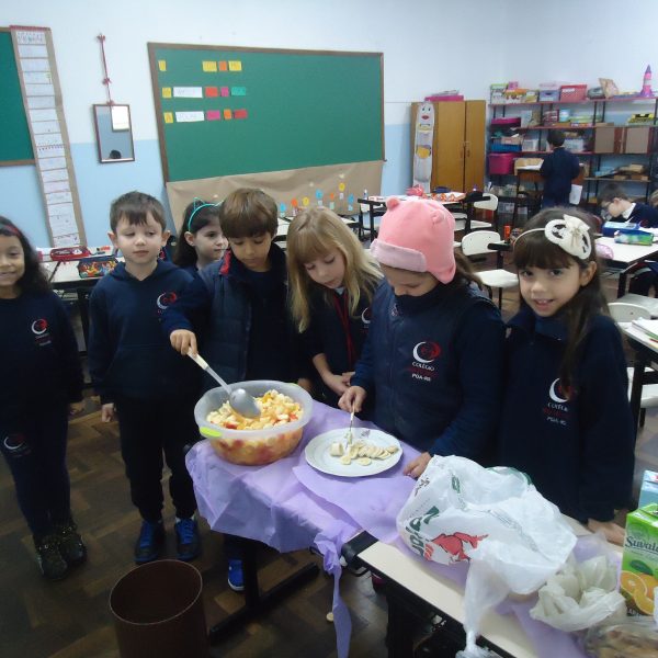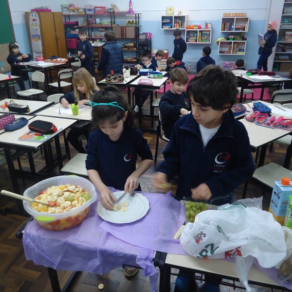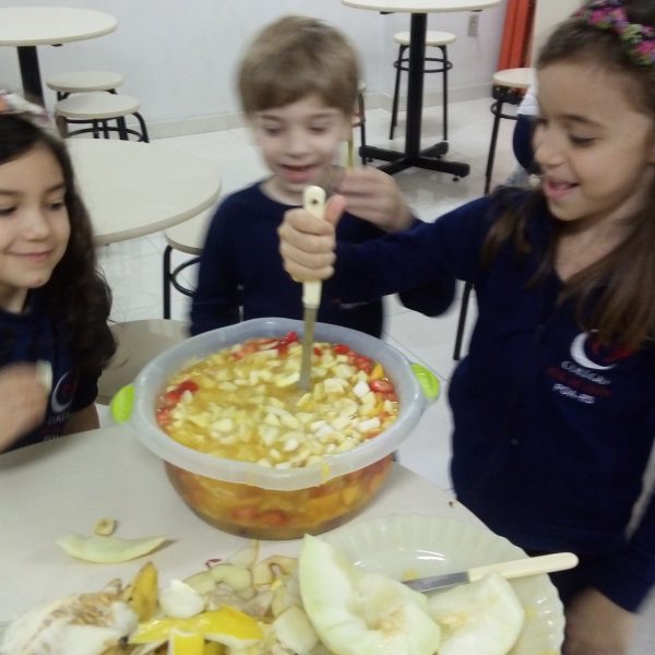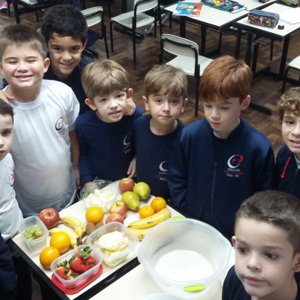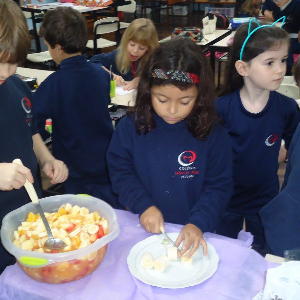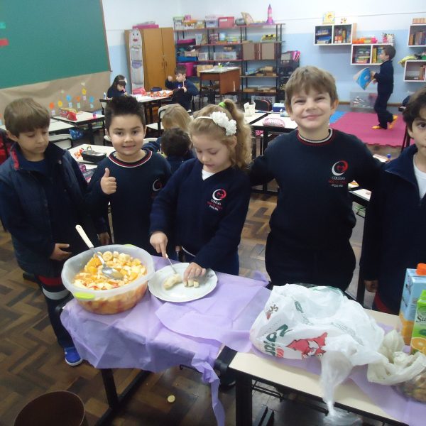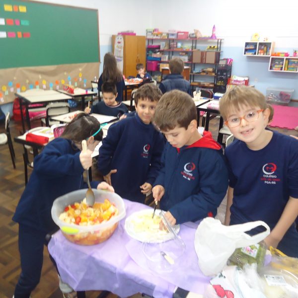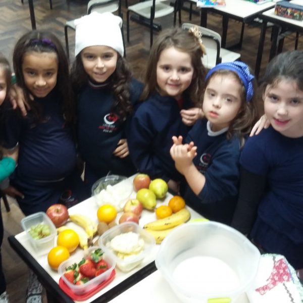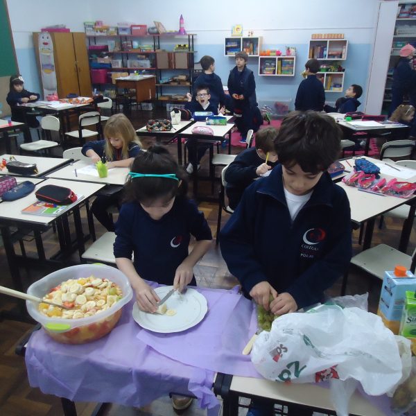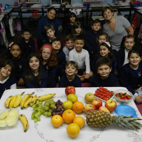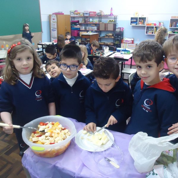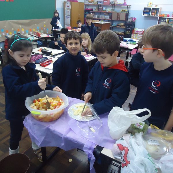 As turmas do Primeiro Ano prepararam e degustaram uma saborosa e colorida salada de frutas!