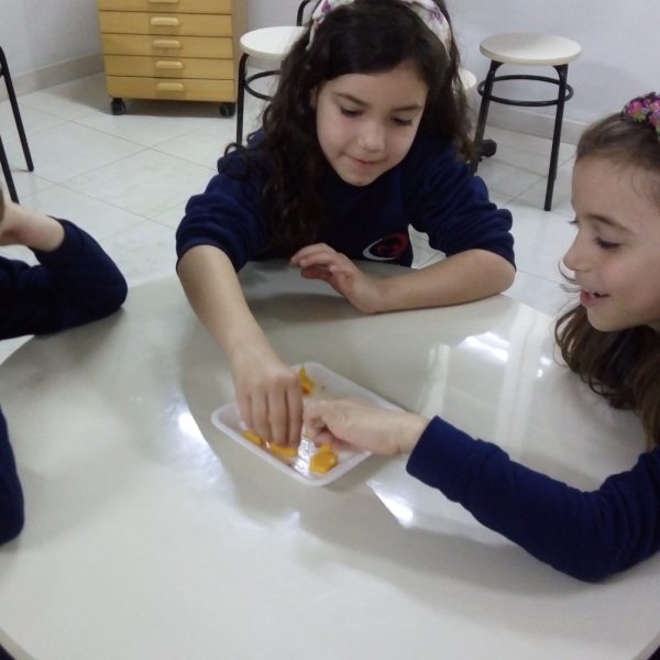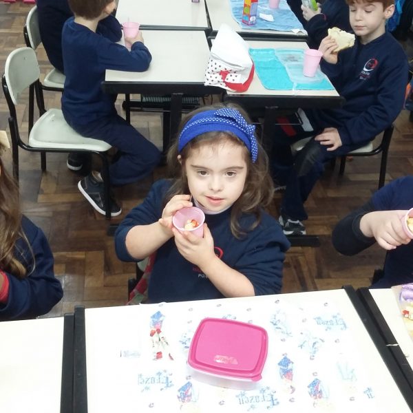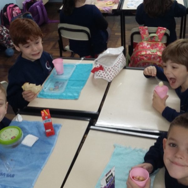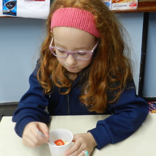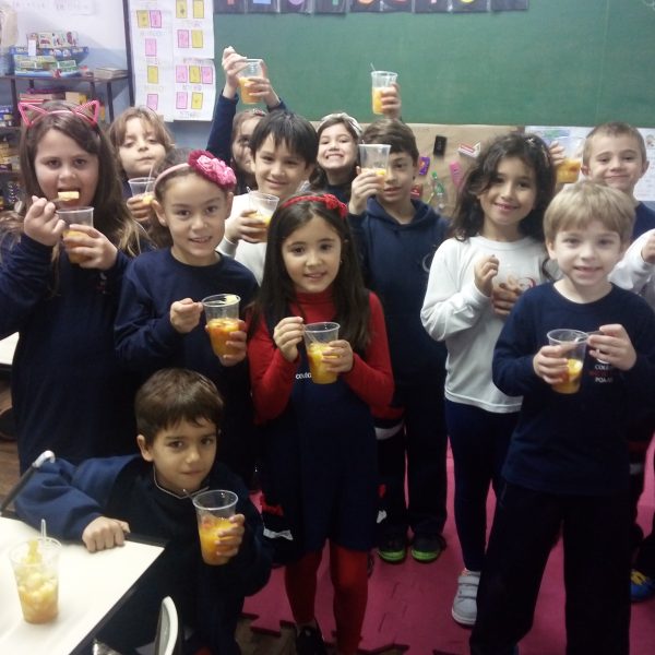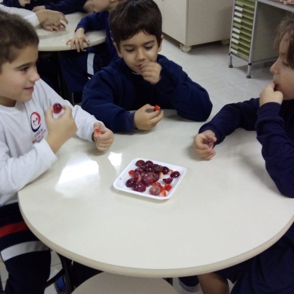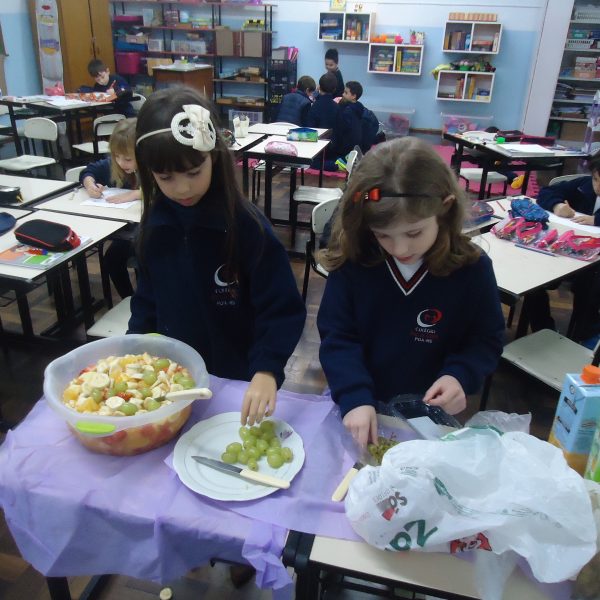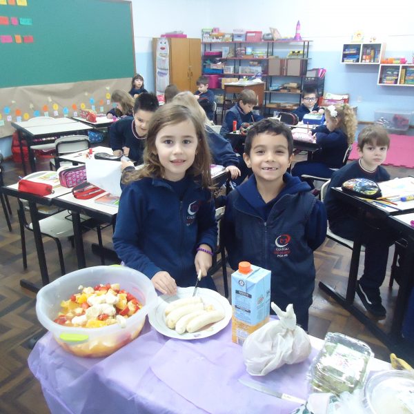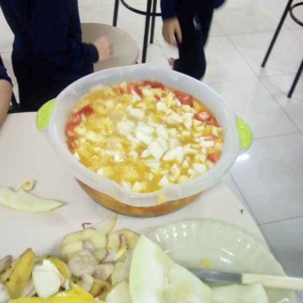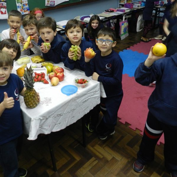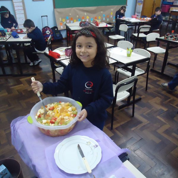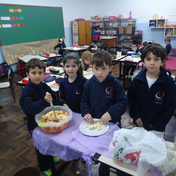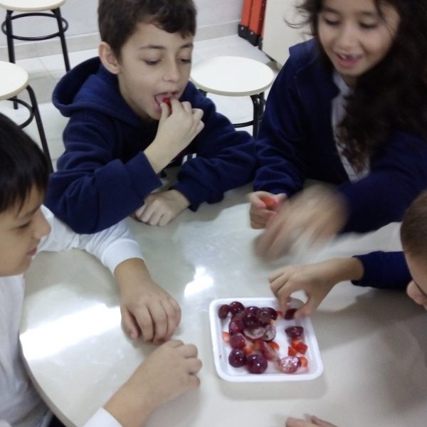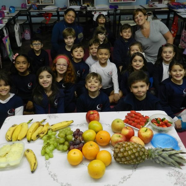 As turmas do Primeiro Ano prepararam e degustaram uma saborosa e colorida salada de frutas!