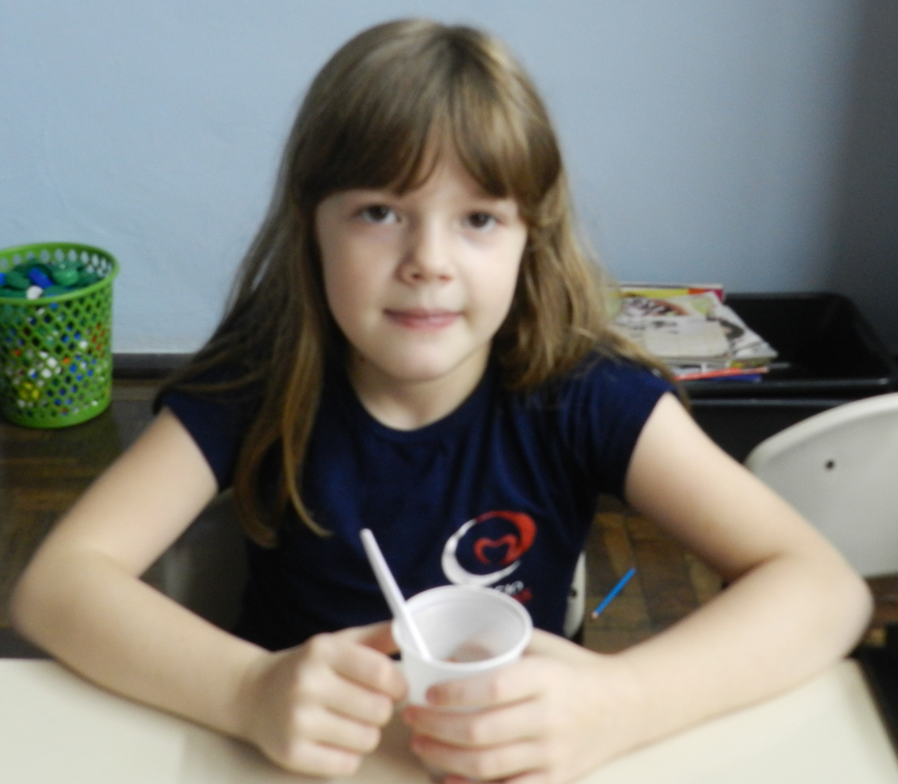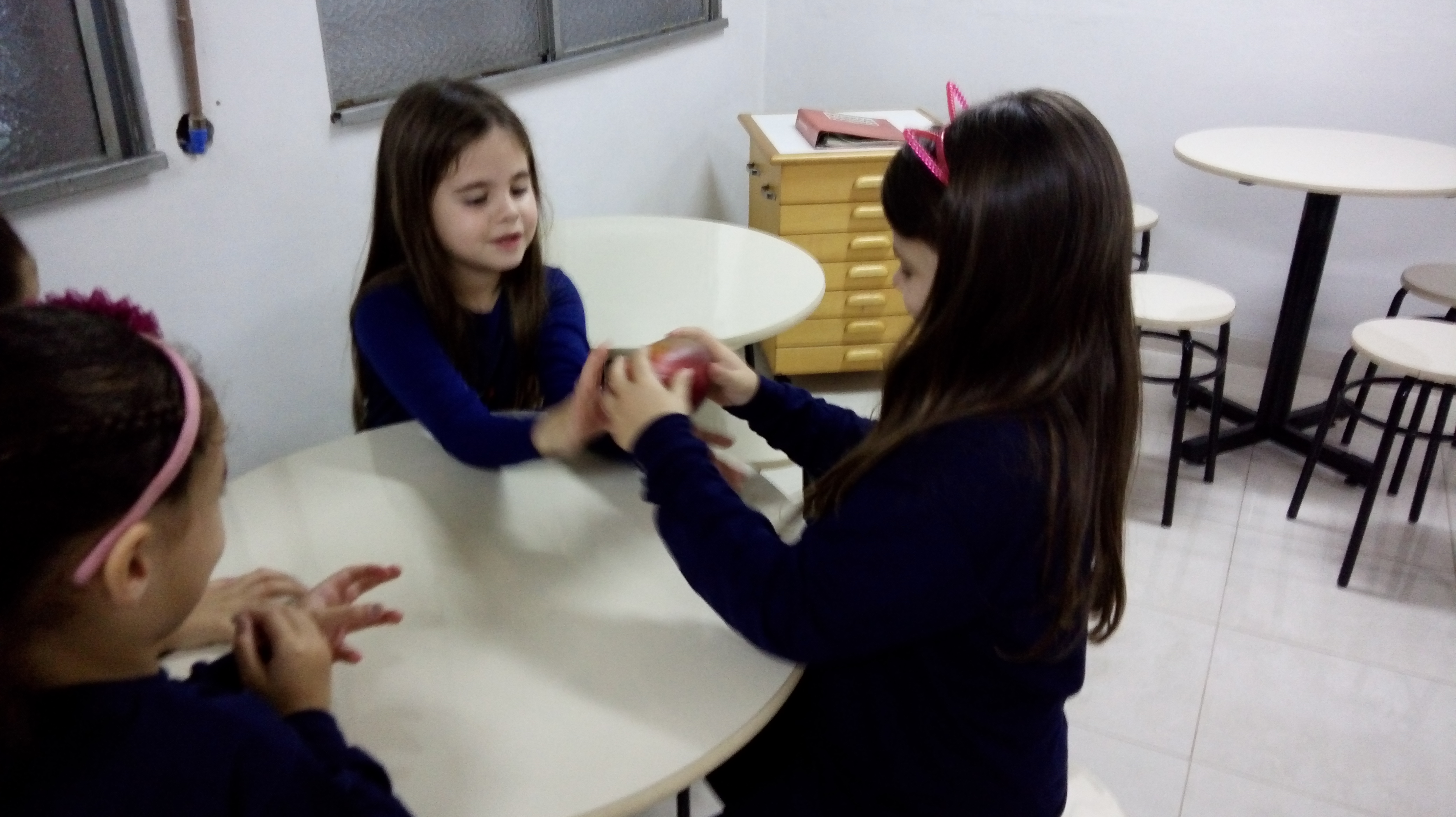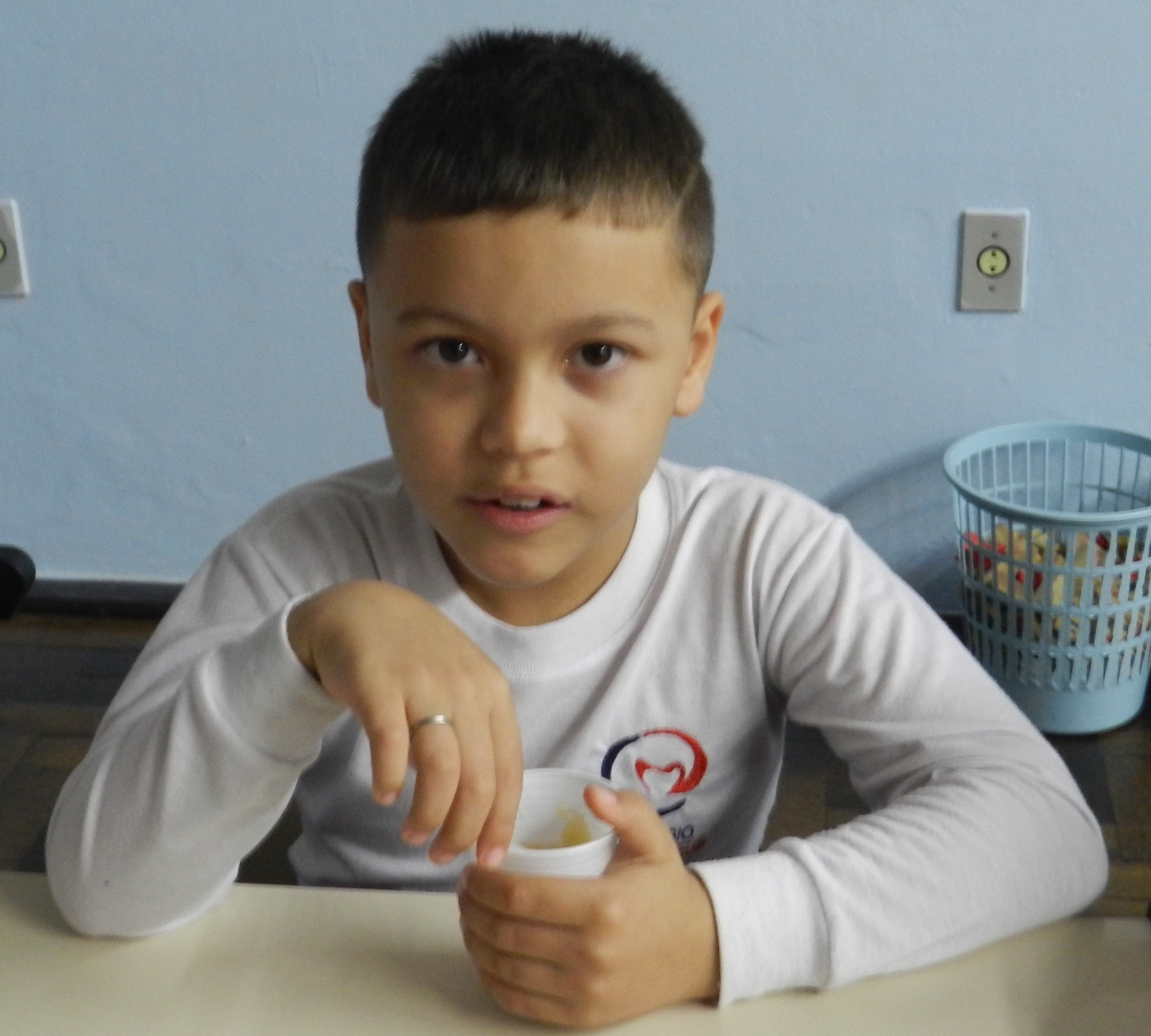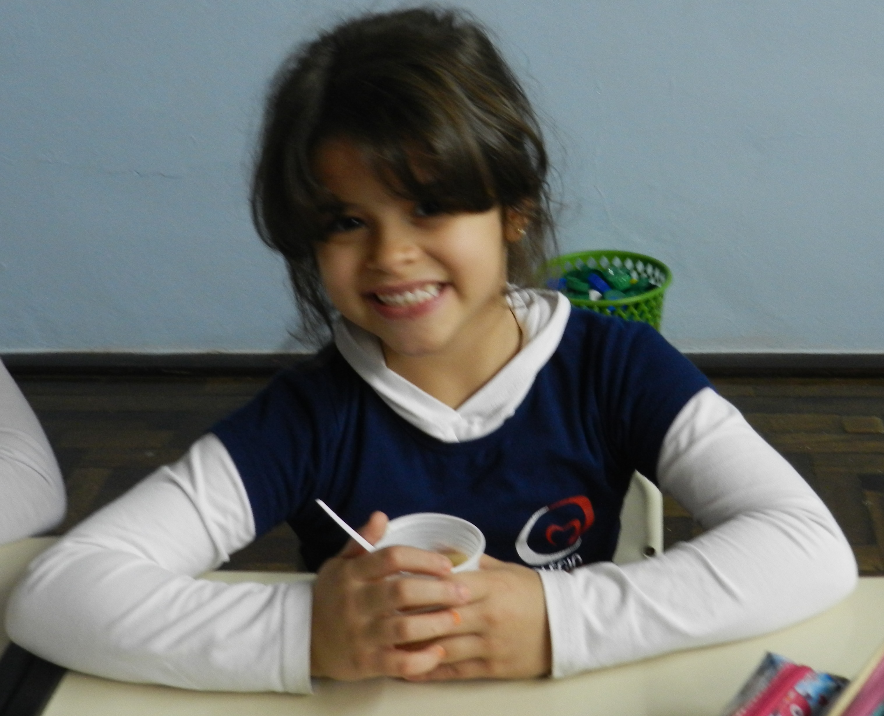 As crianças trouxeram para a aula as frutas que foram higienizadas e preparadas para, em pequenos pedaços, misturar com o suco de laranja. Exploraram as cores, formas, sabores e as texturas das diferentes frutas. Após, realizaram com desenhos e escrita atividades sobre essa divertida experiência culinária.