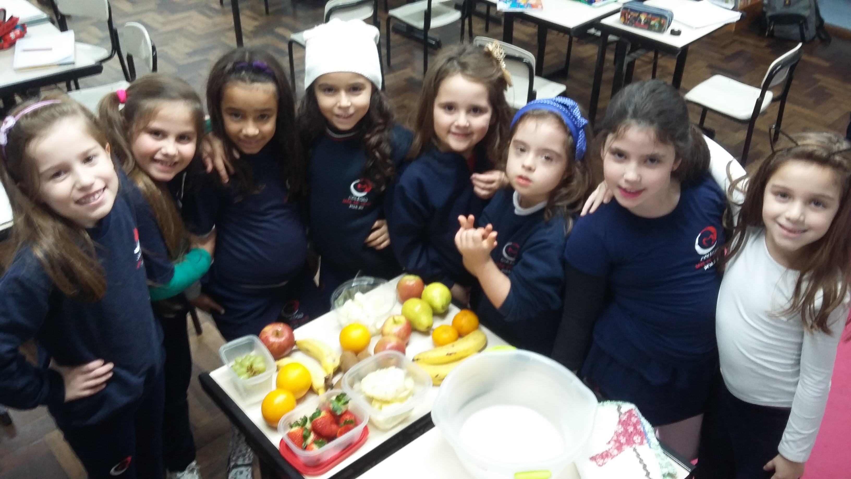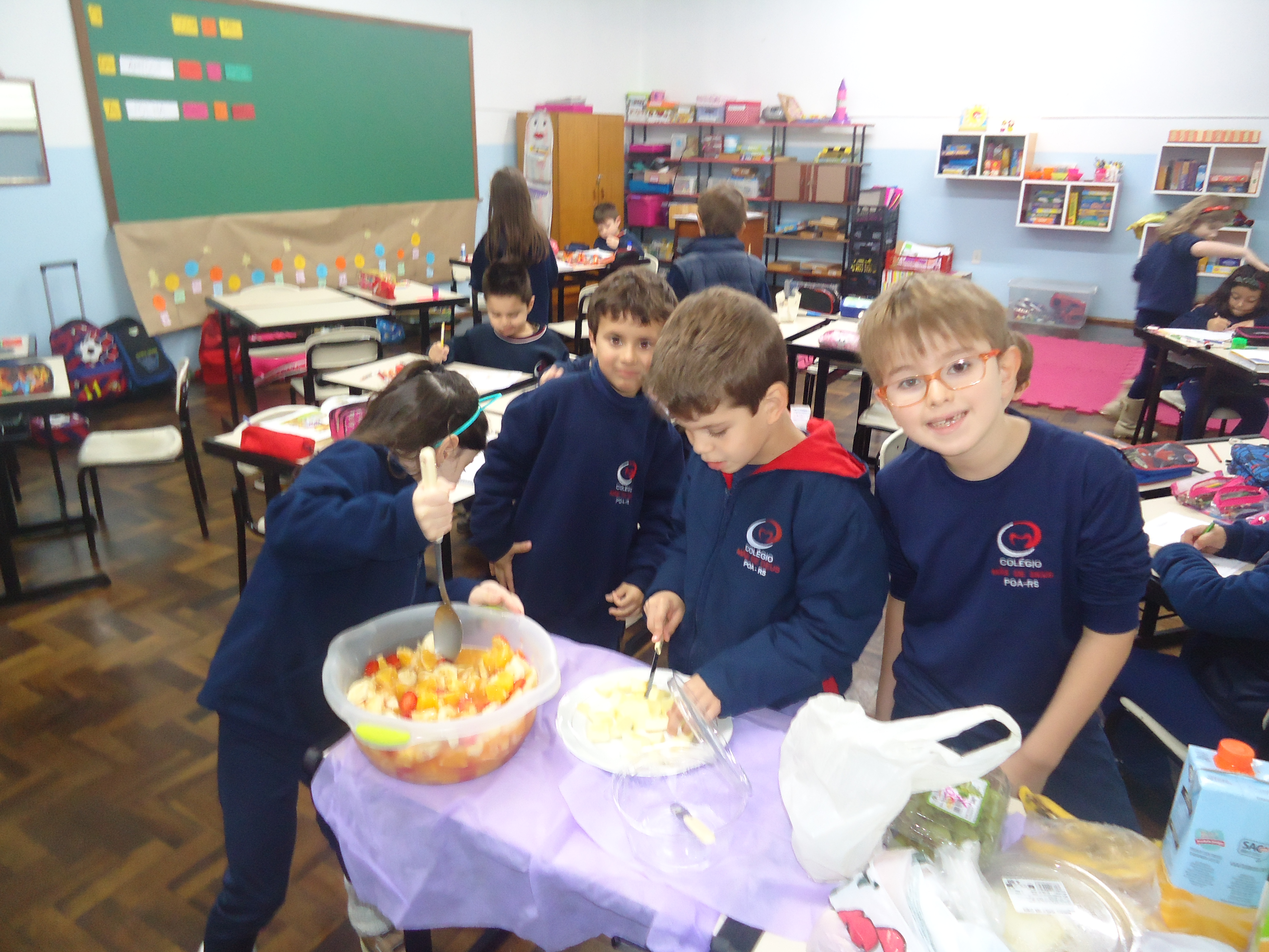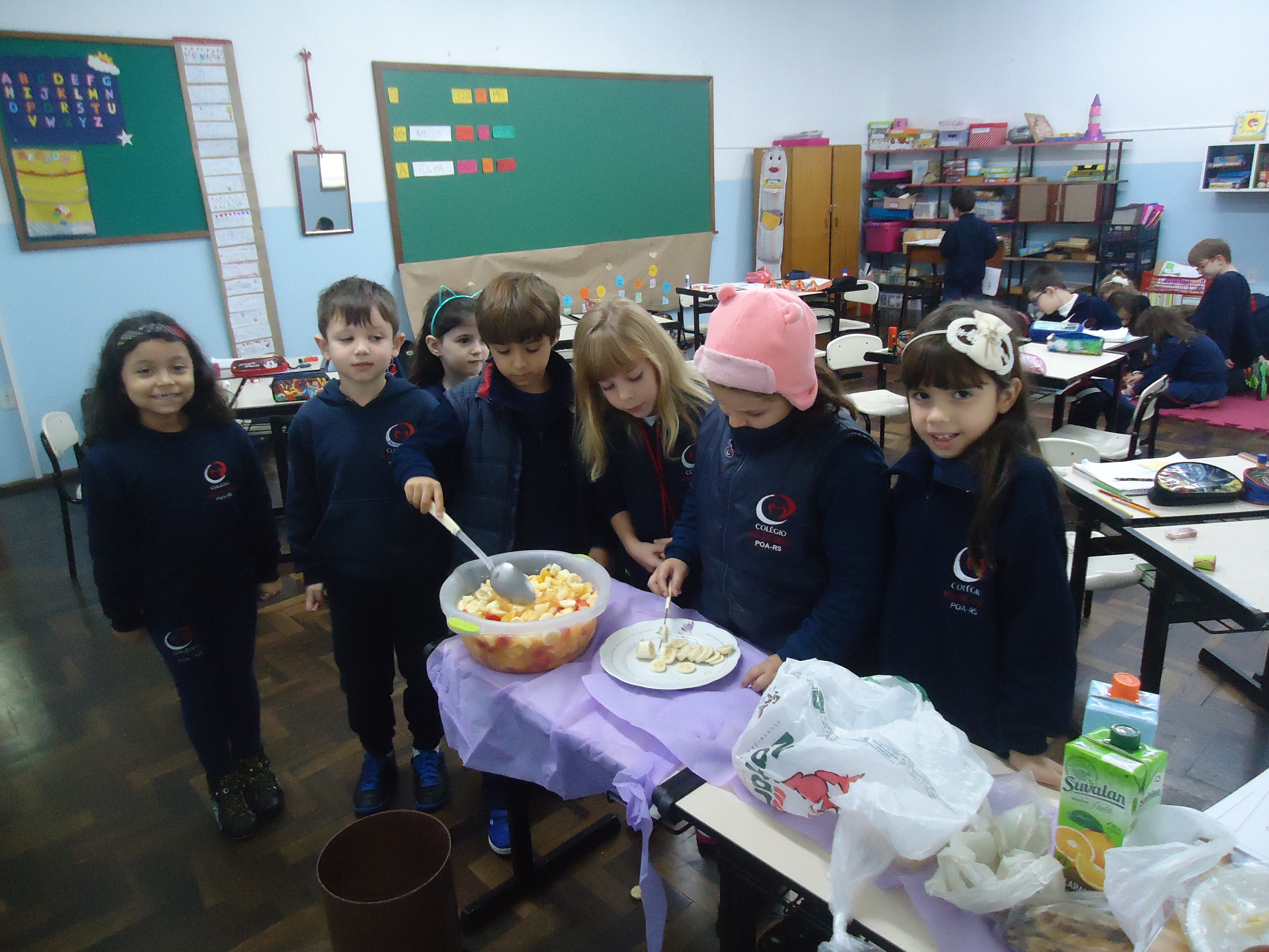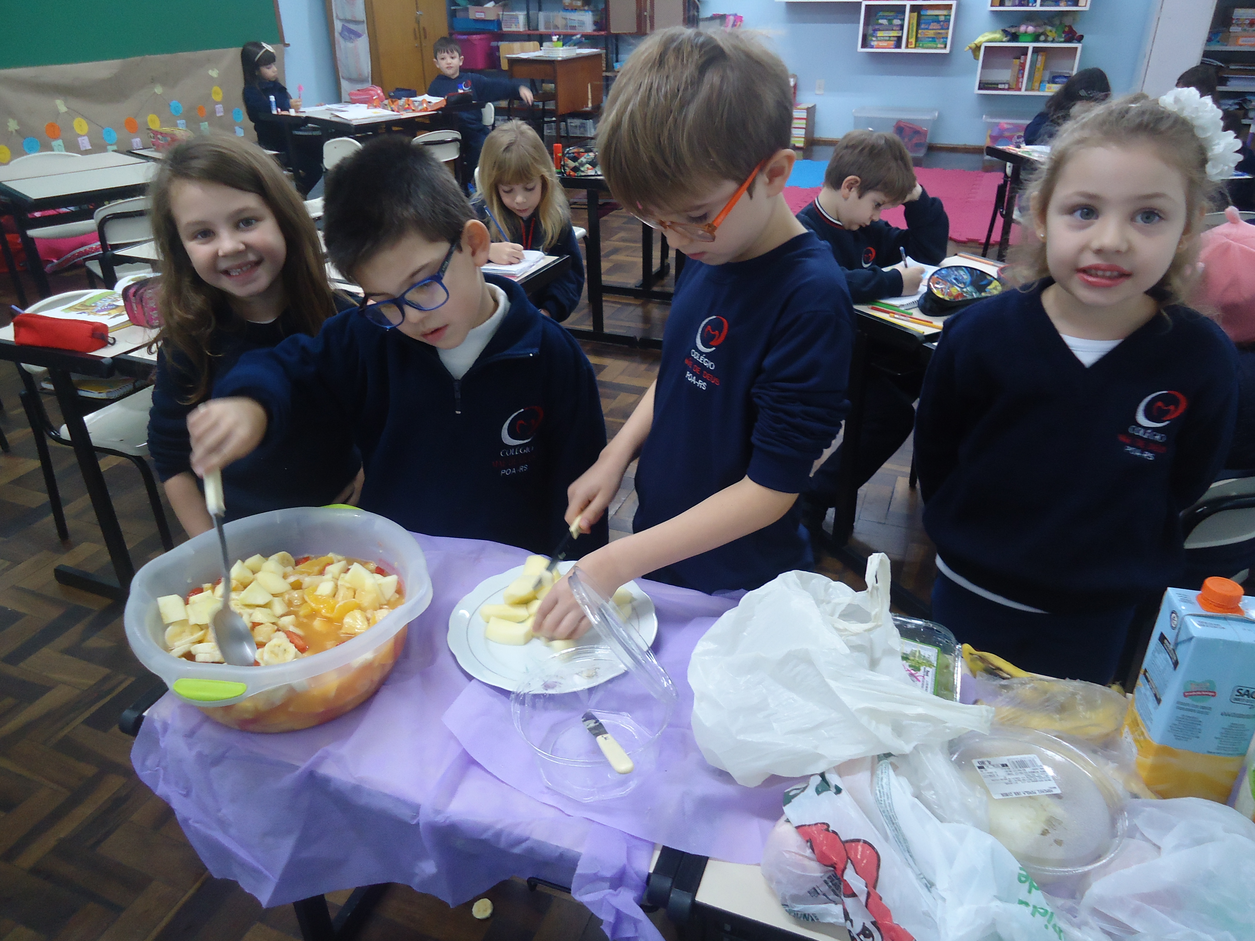 As turmas do Primeiro Ano prepararam e degustaram uma saborosa e colorida salada de frutas!