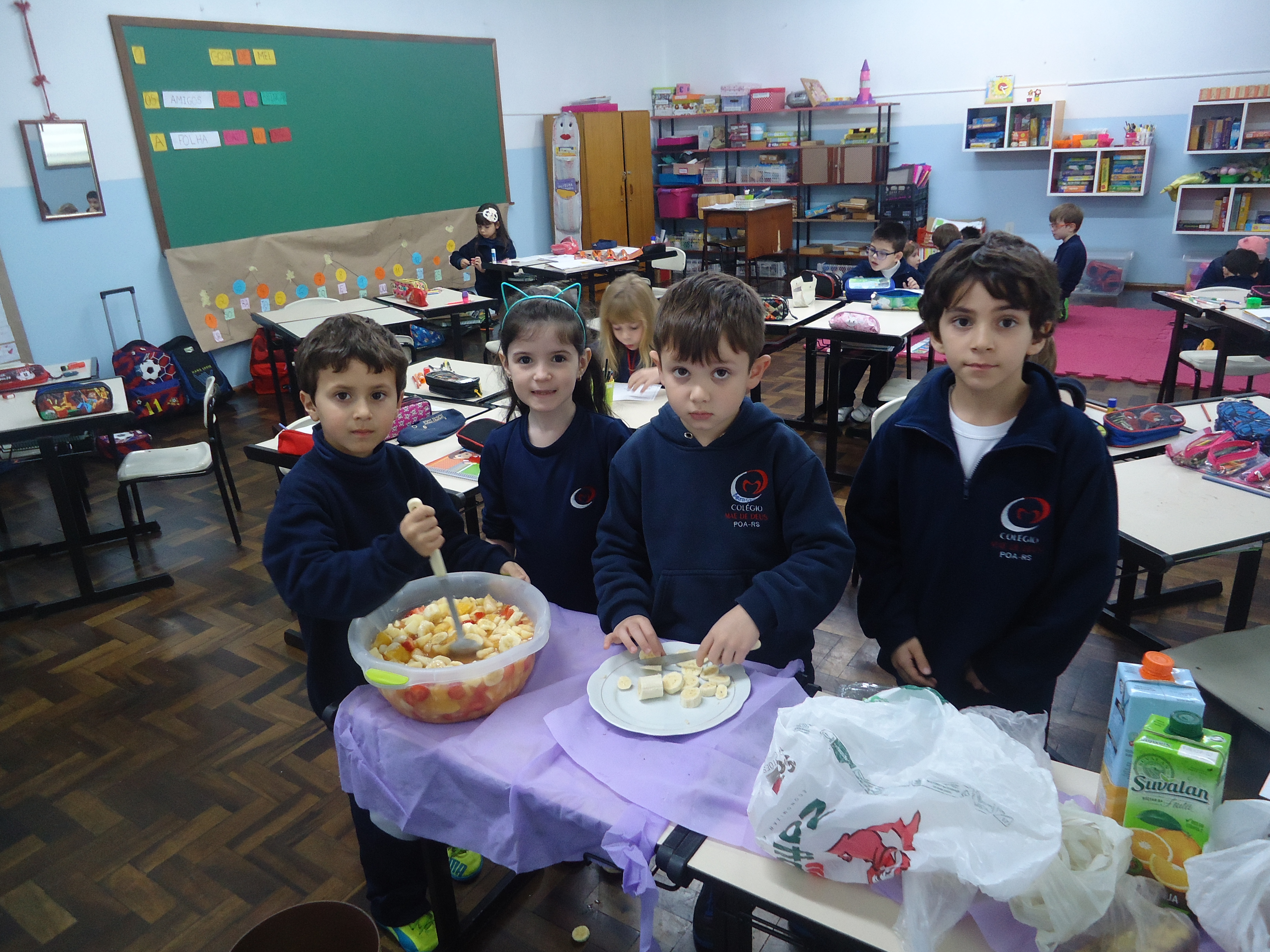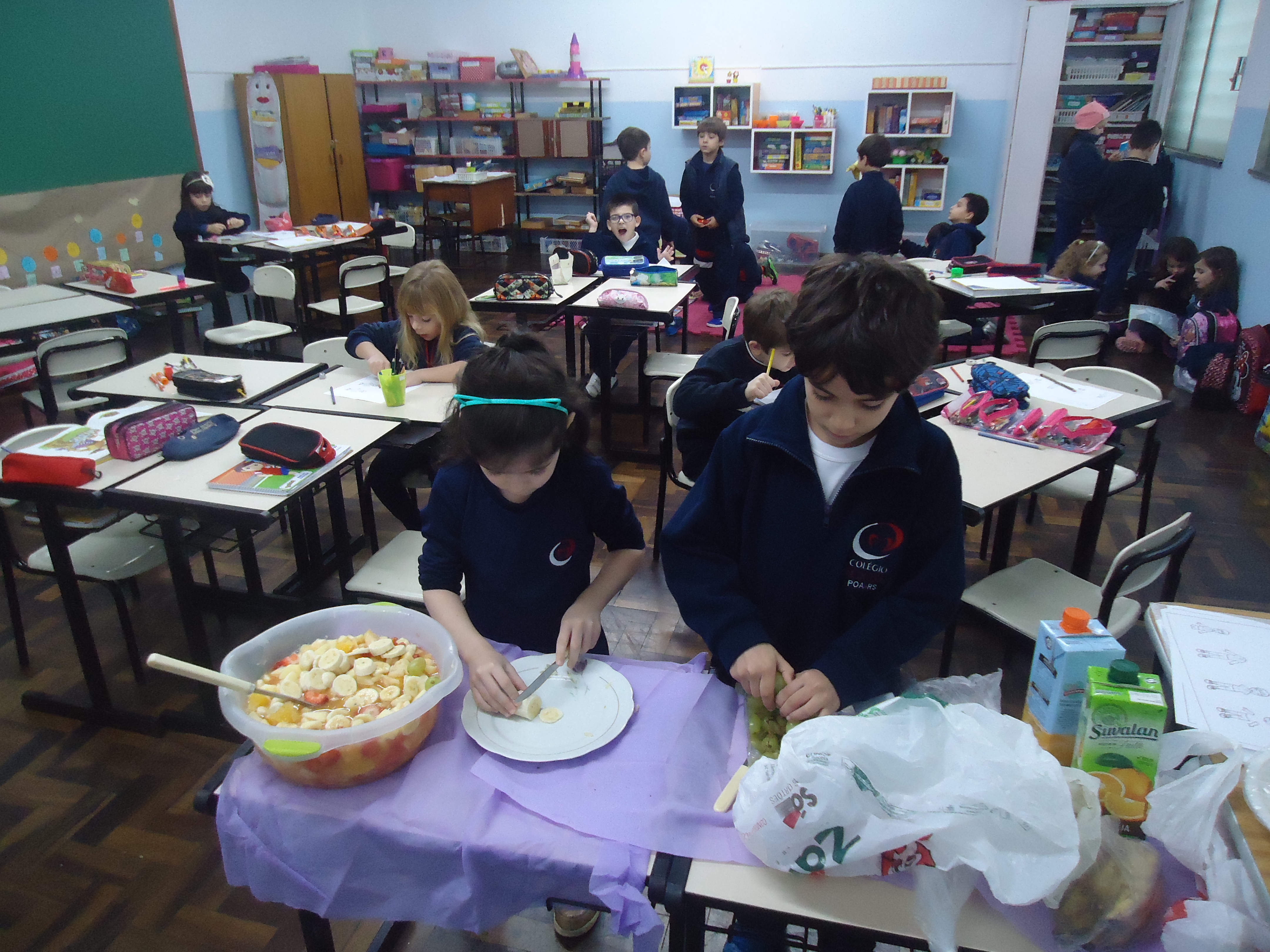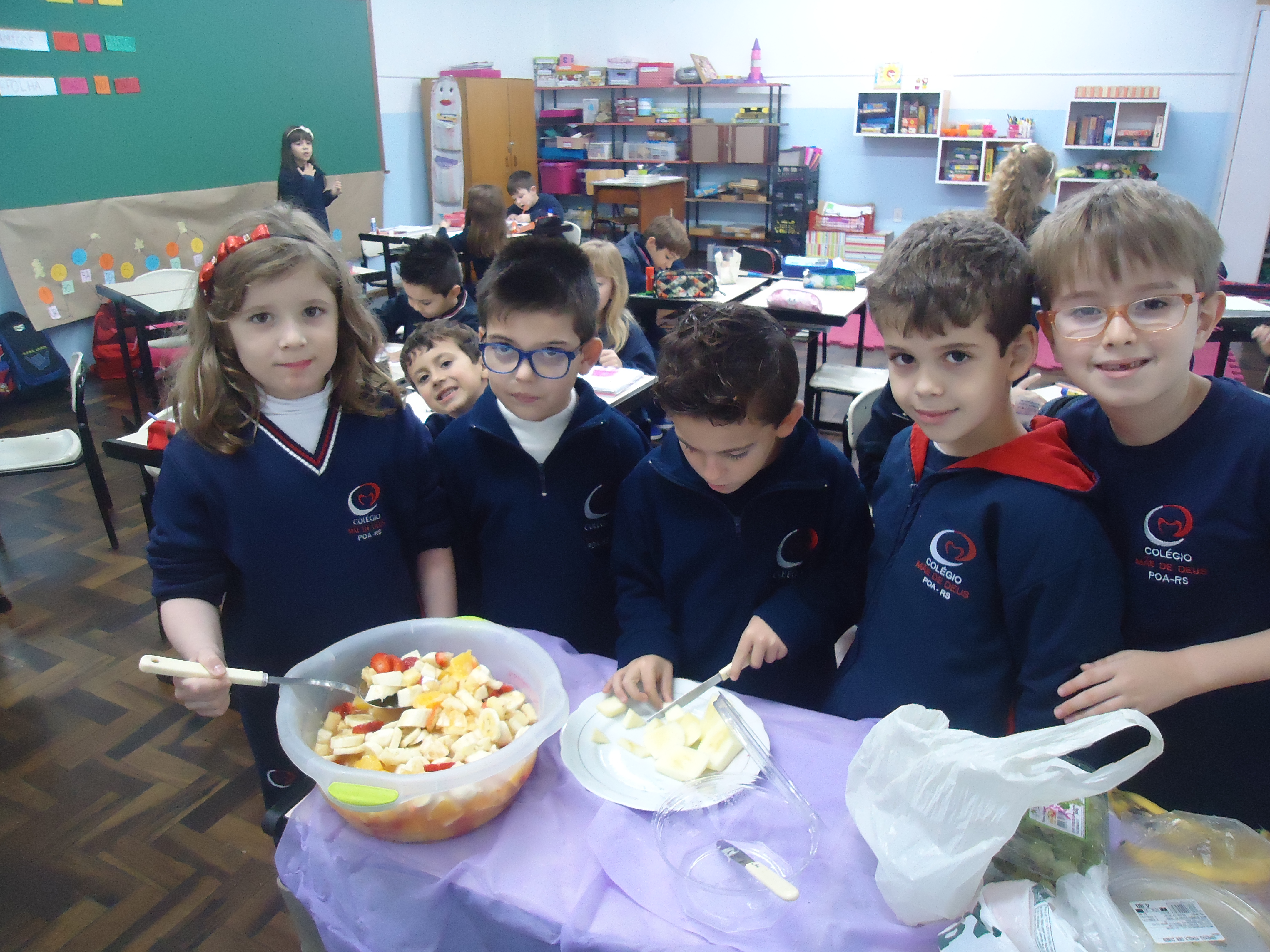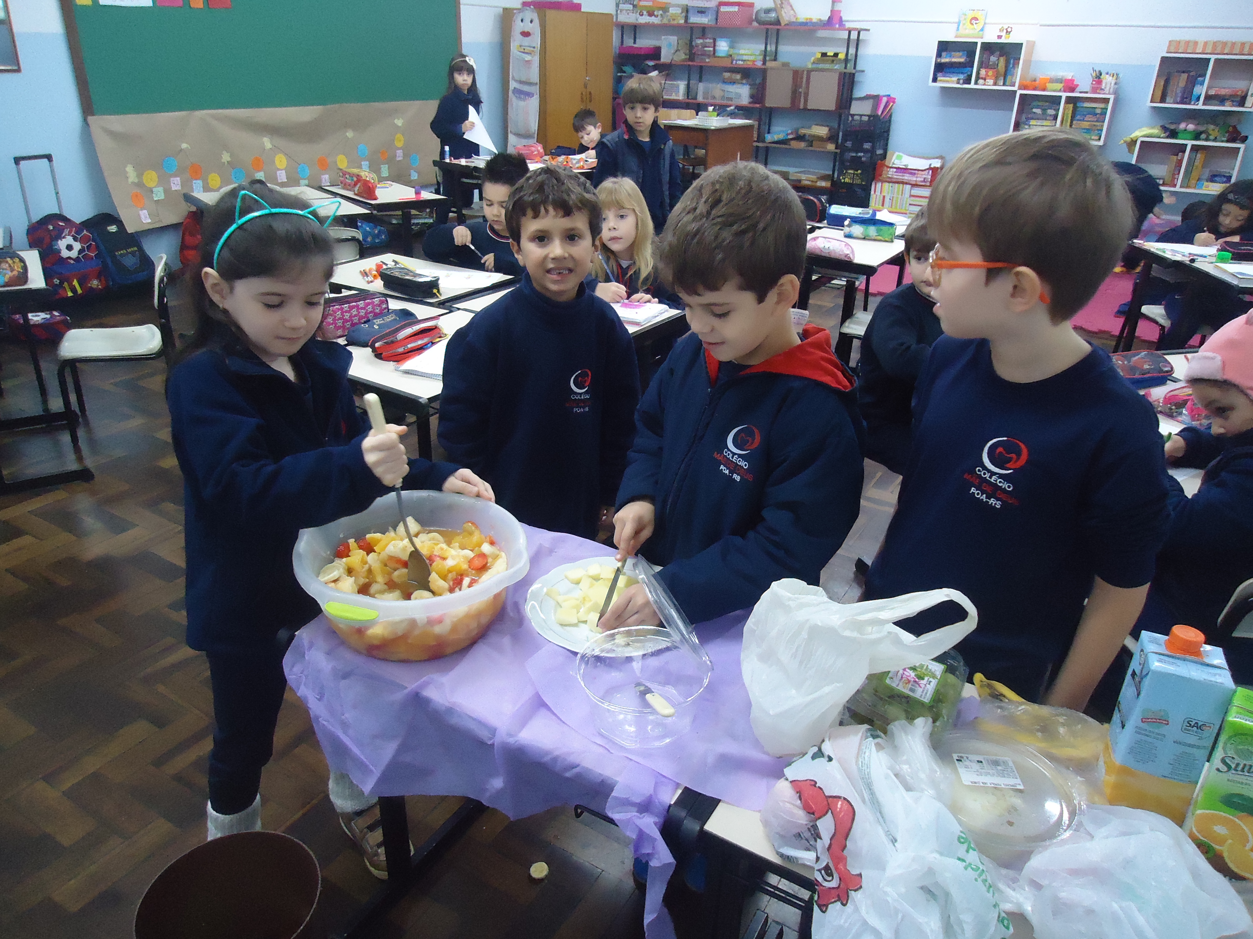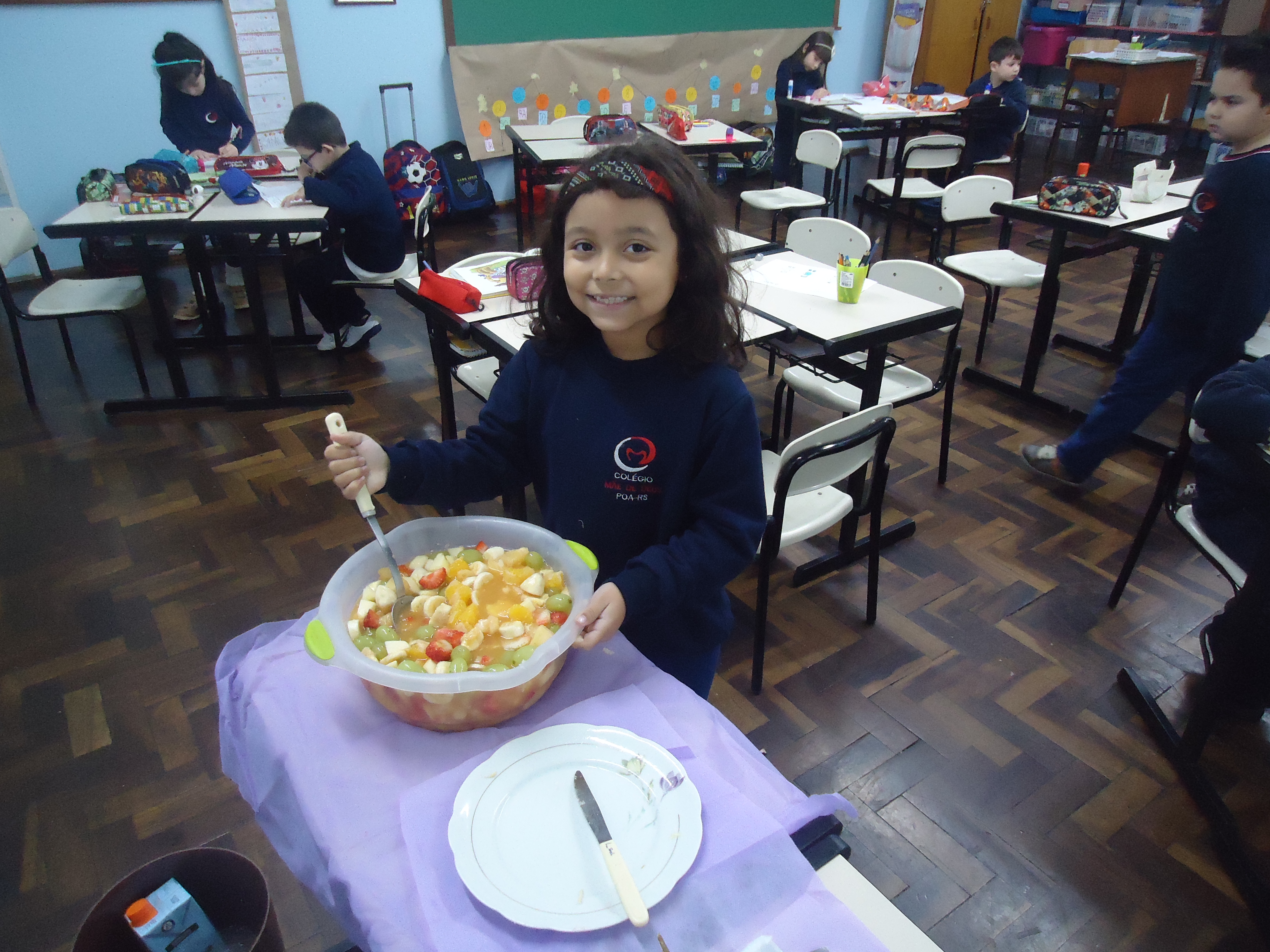 As turmas do Primeiro Ano prepararam e degustaram uma saborosa e colorida salada de frutas!