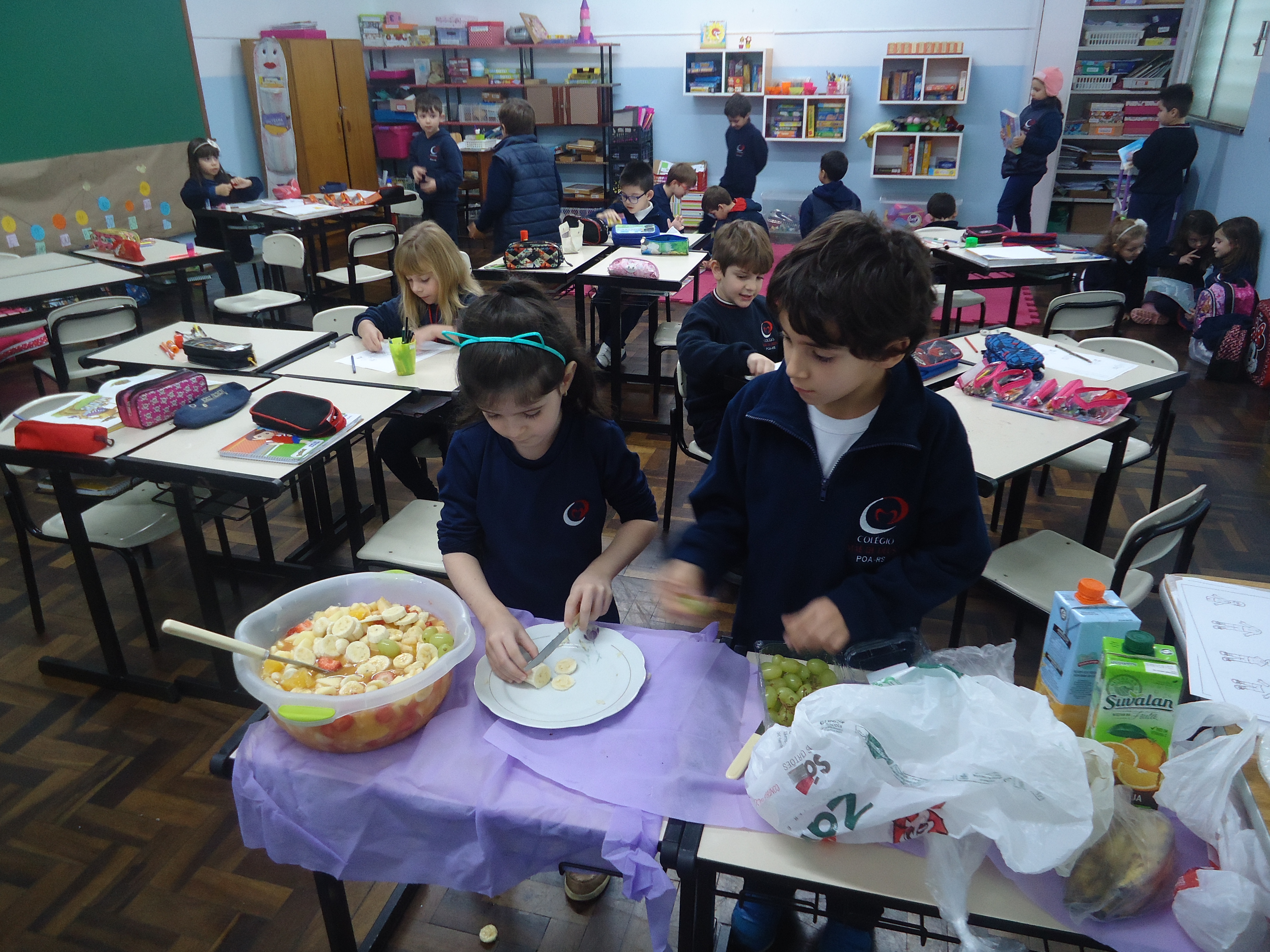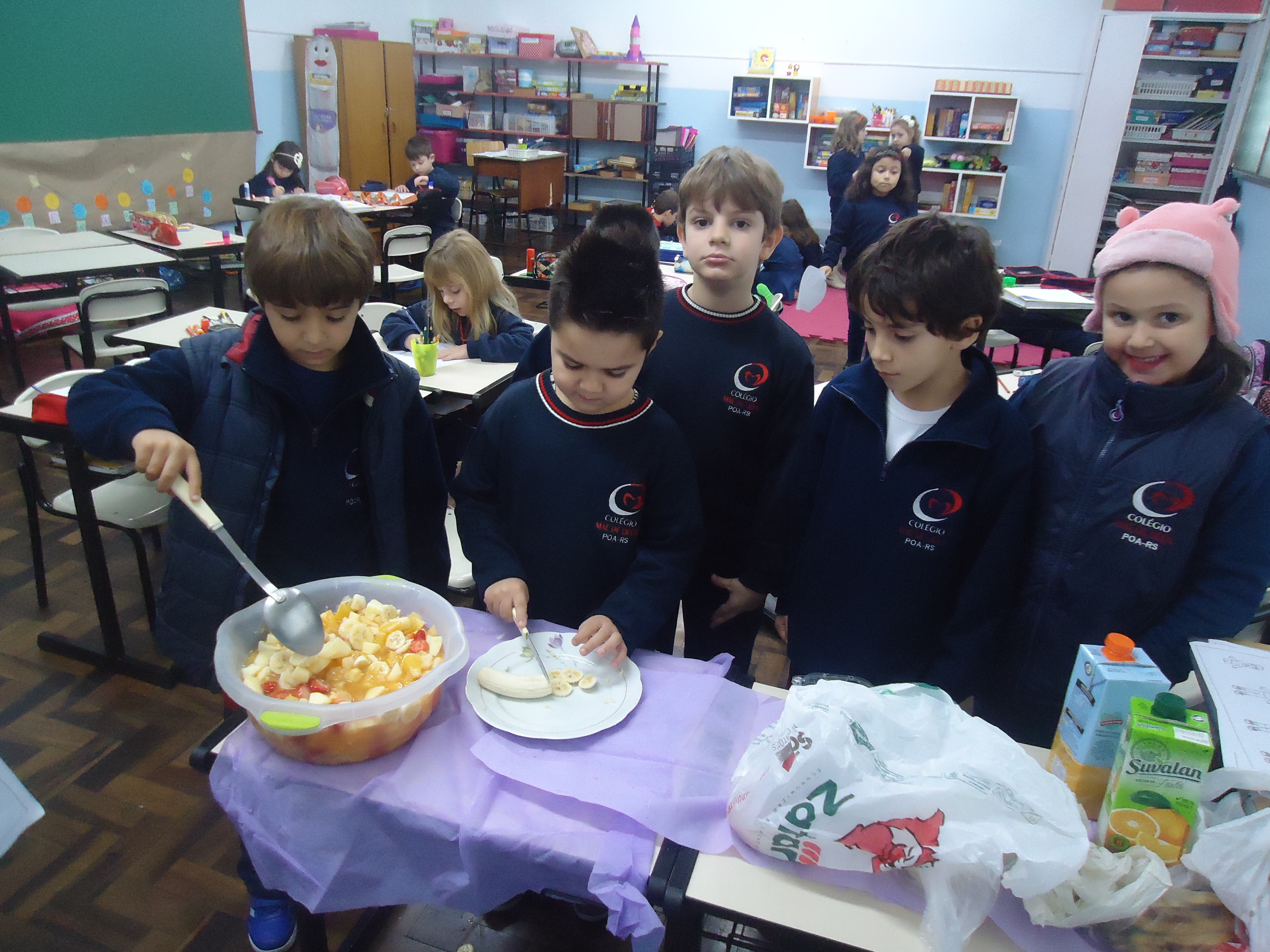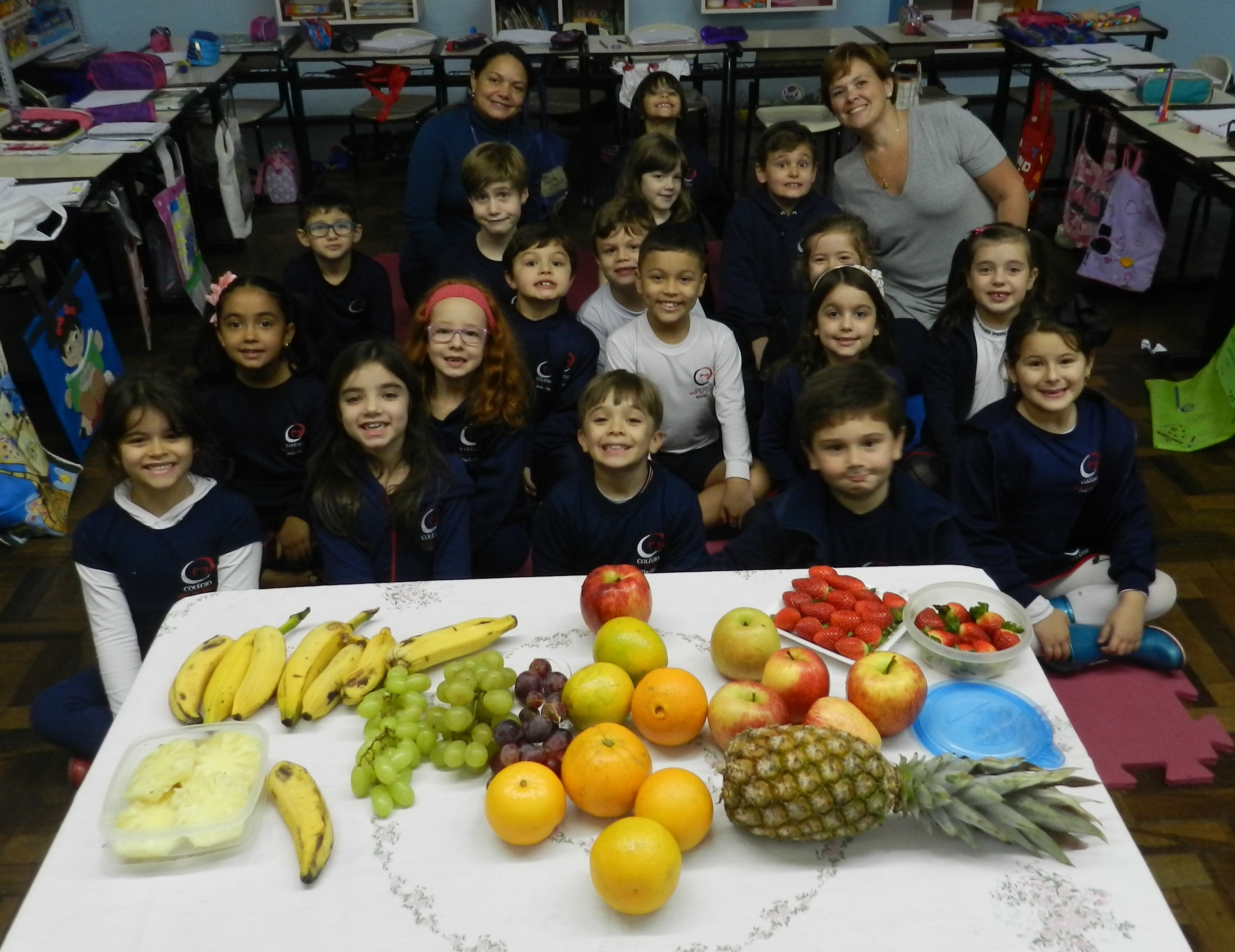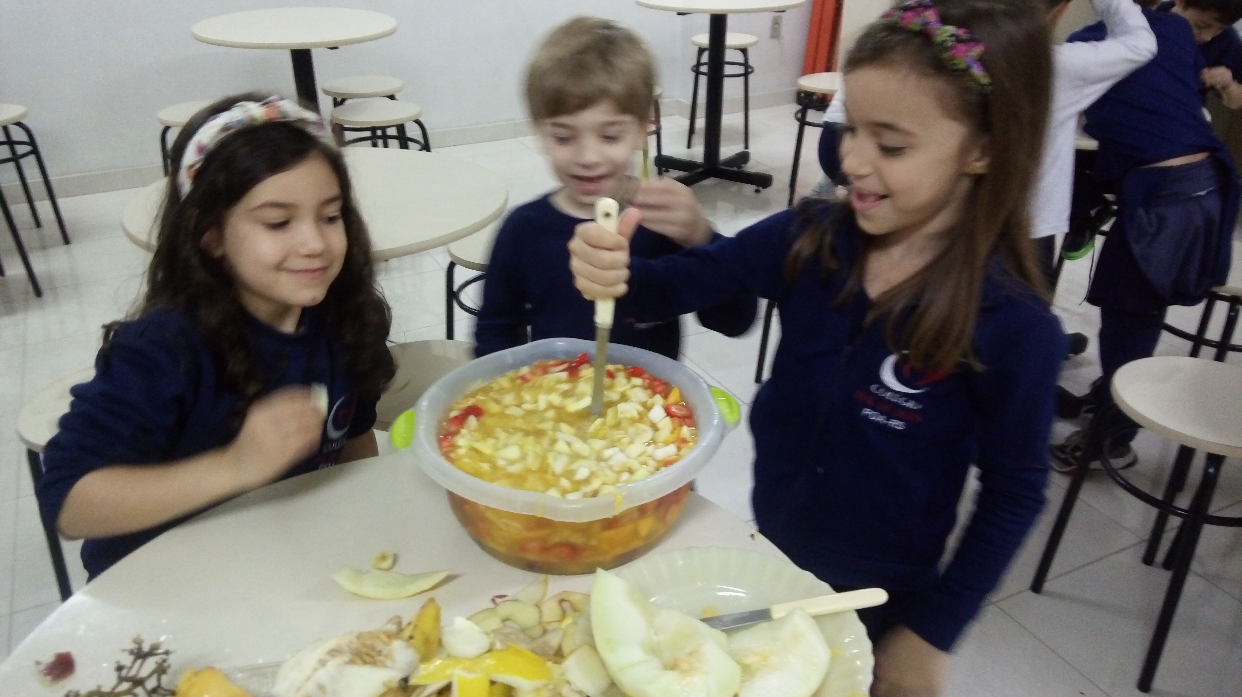 As turmas do Primeiro Ano prepararam e degustaram uma saborosa e colorida salada de frutas!