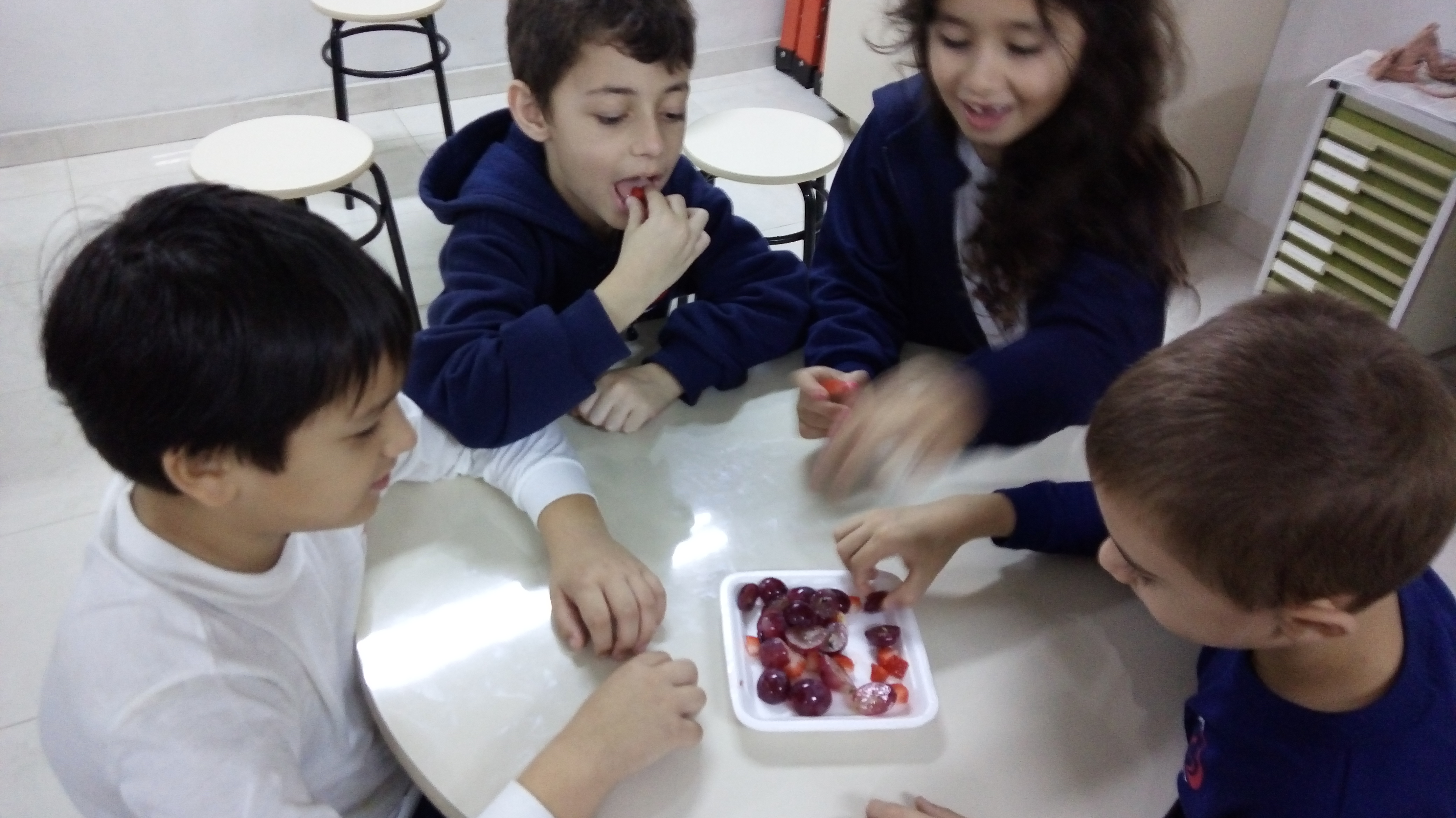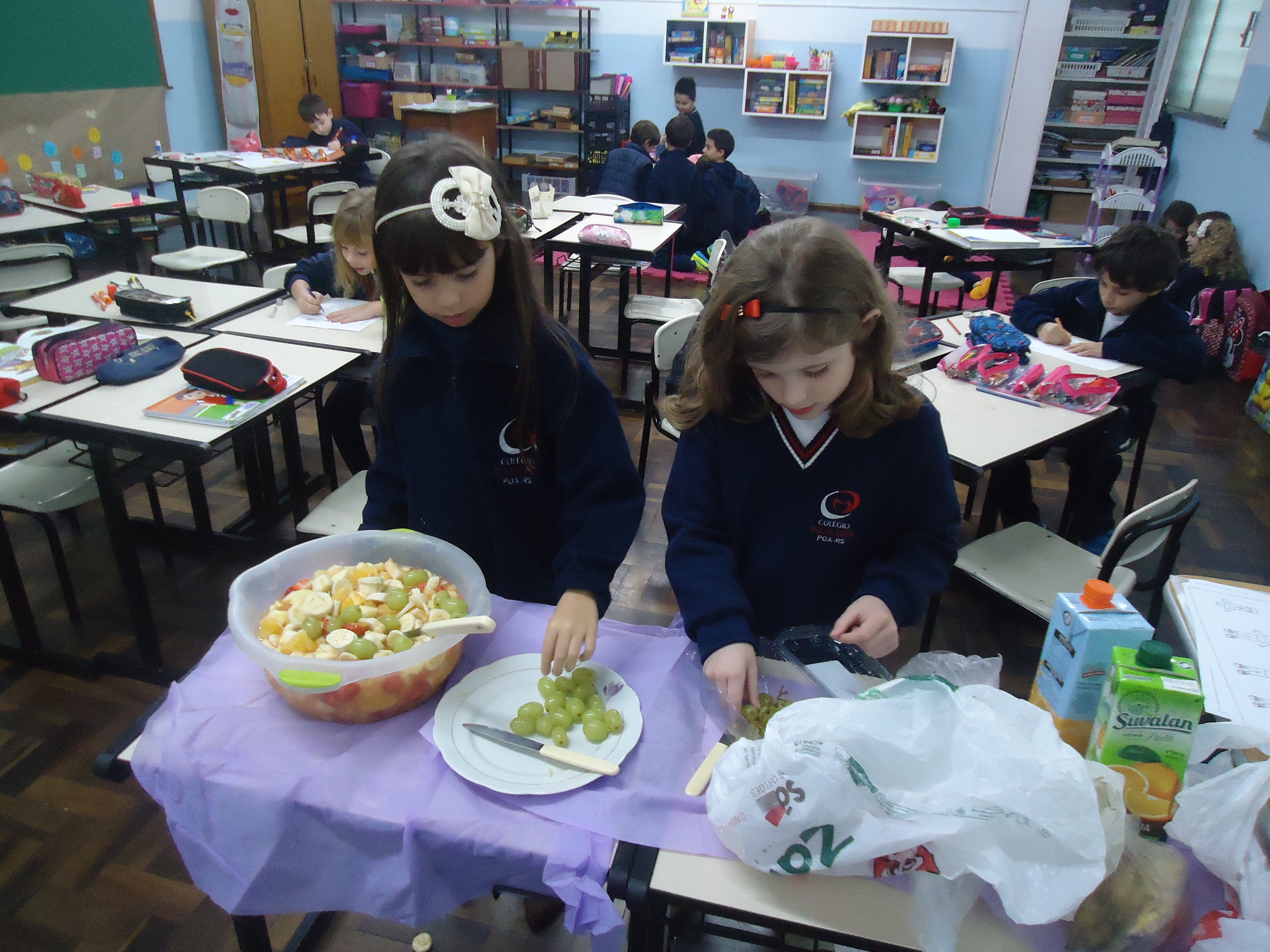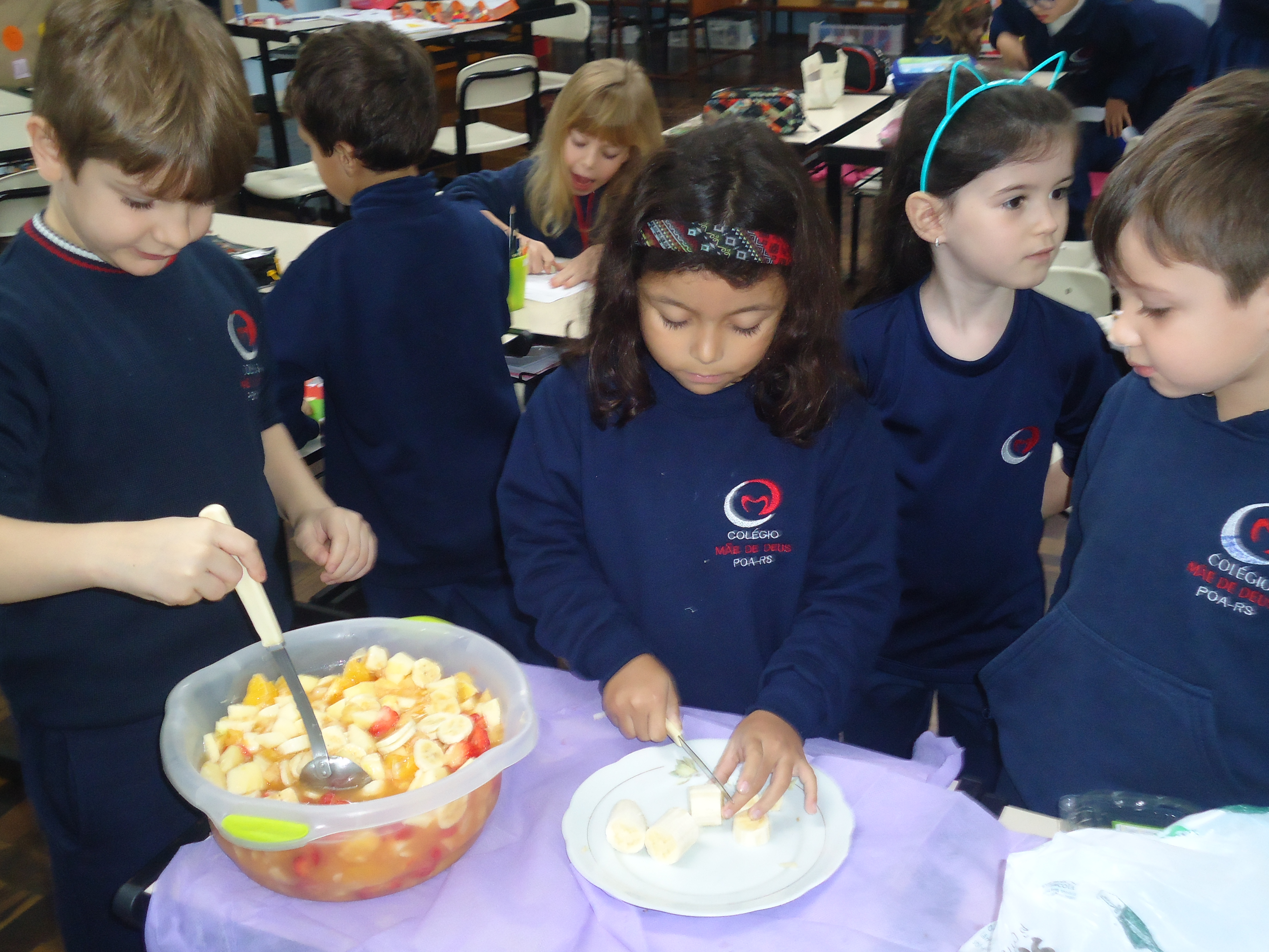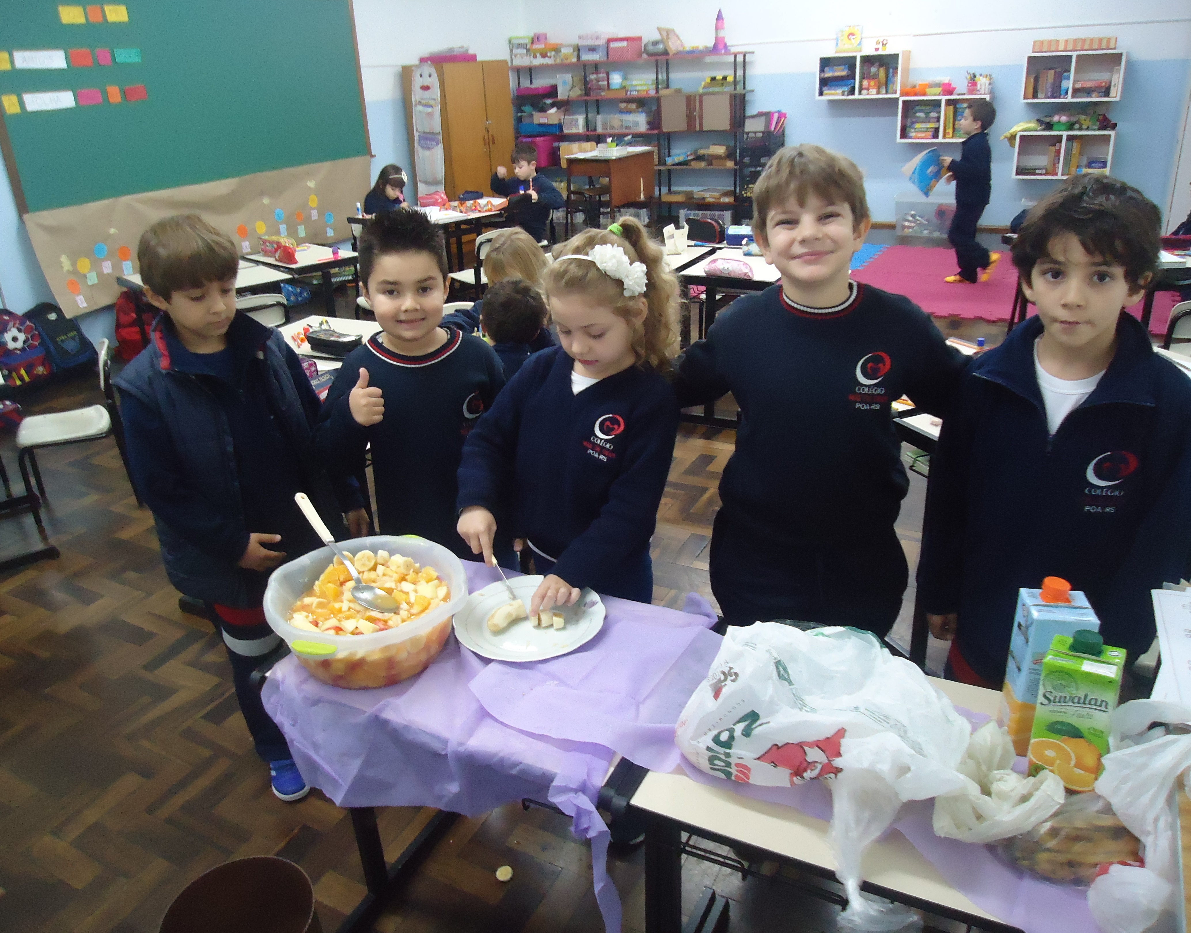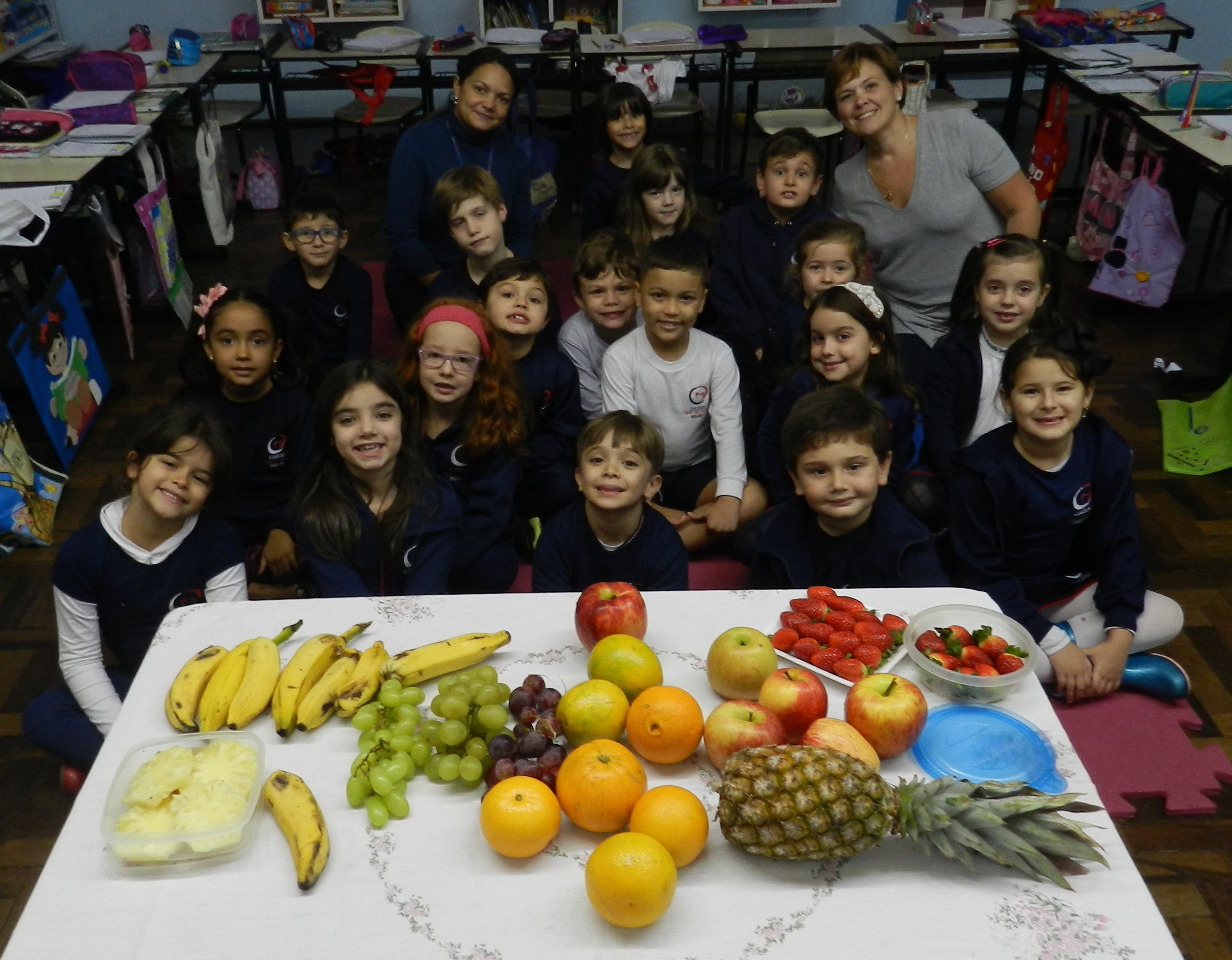 As turmas do Primeiro Ano prepararam e degustaram uma saborosa e colorida salada de frutas!