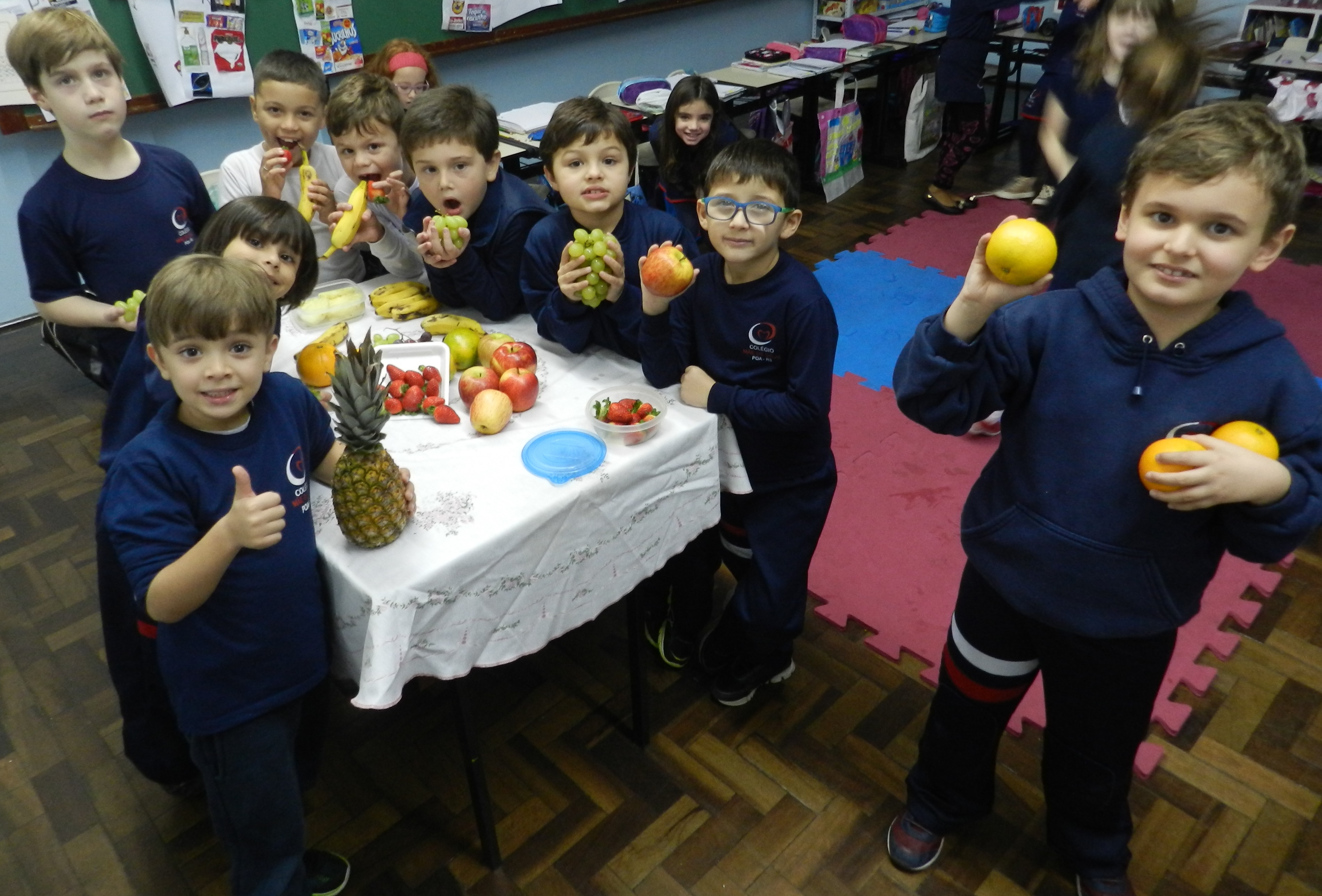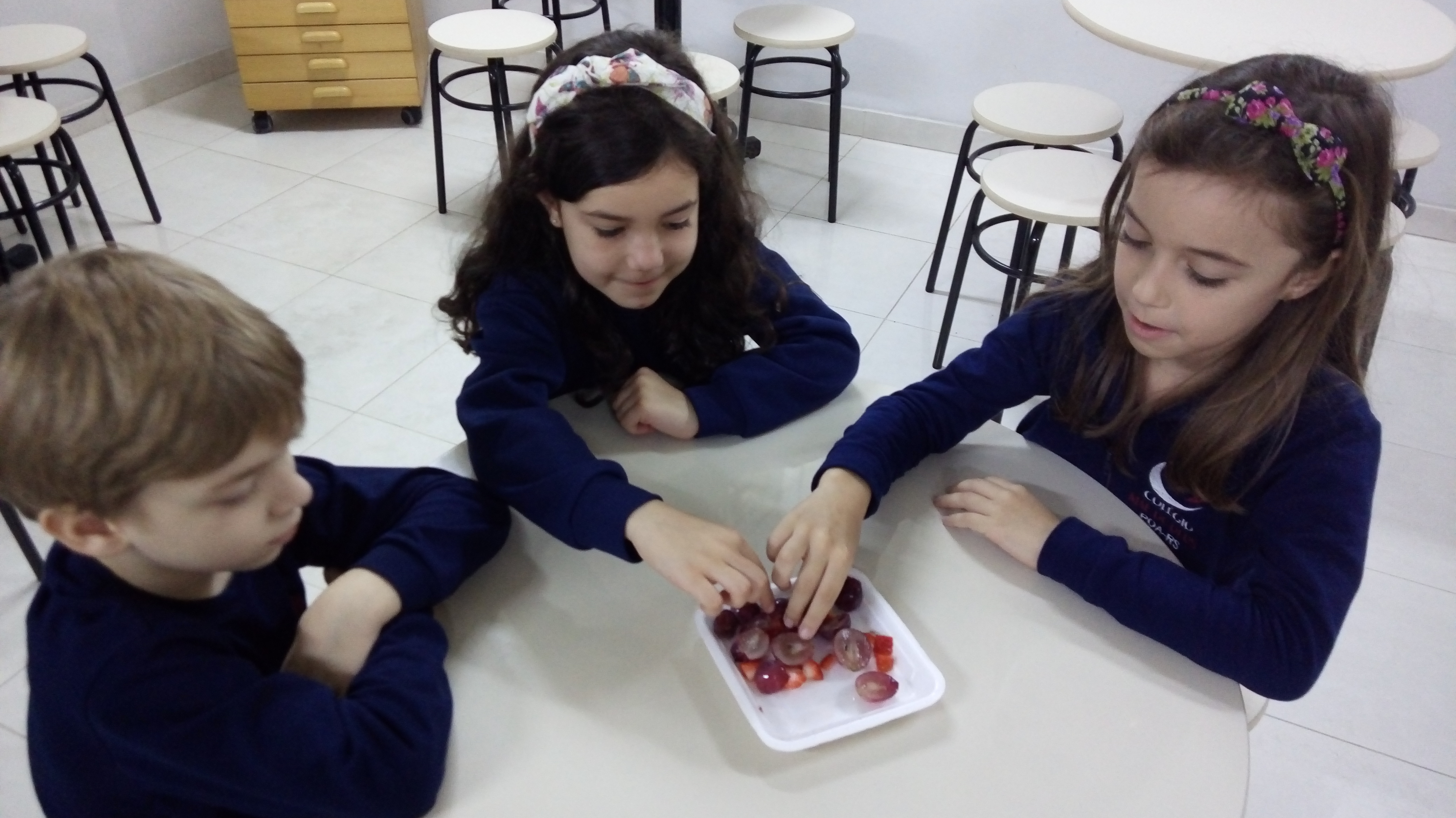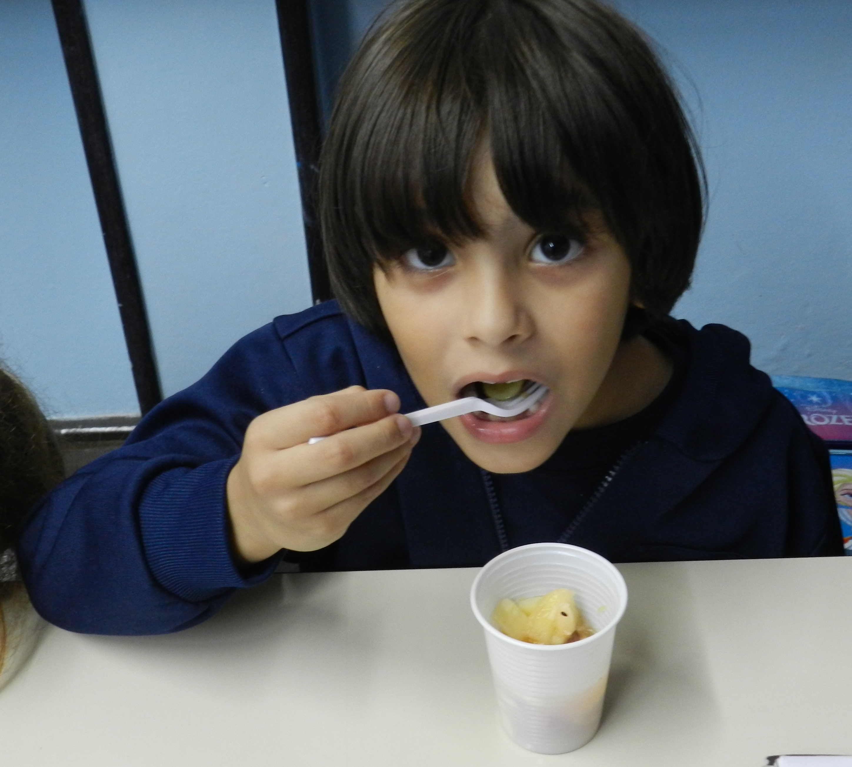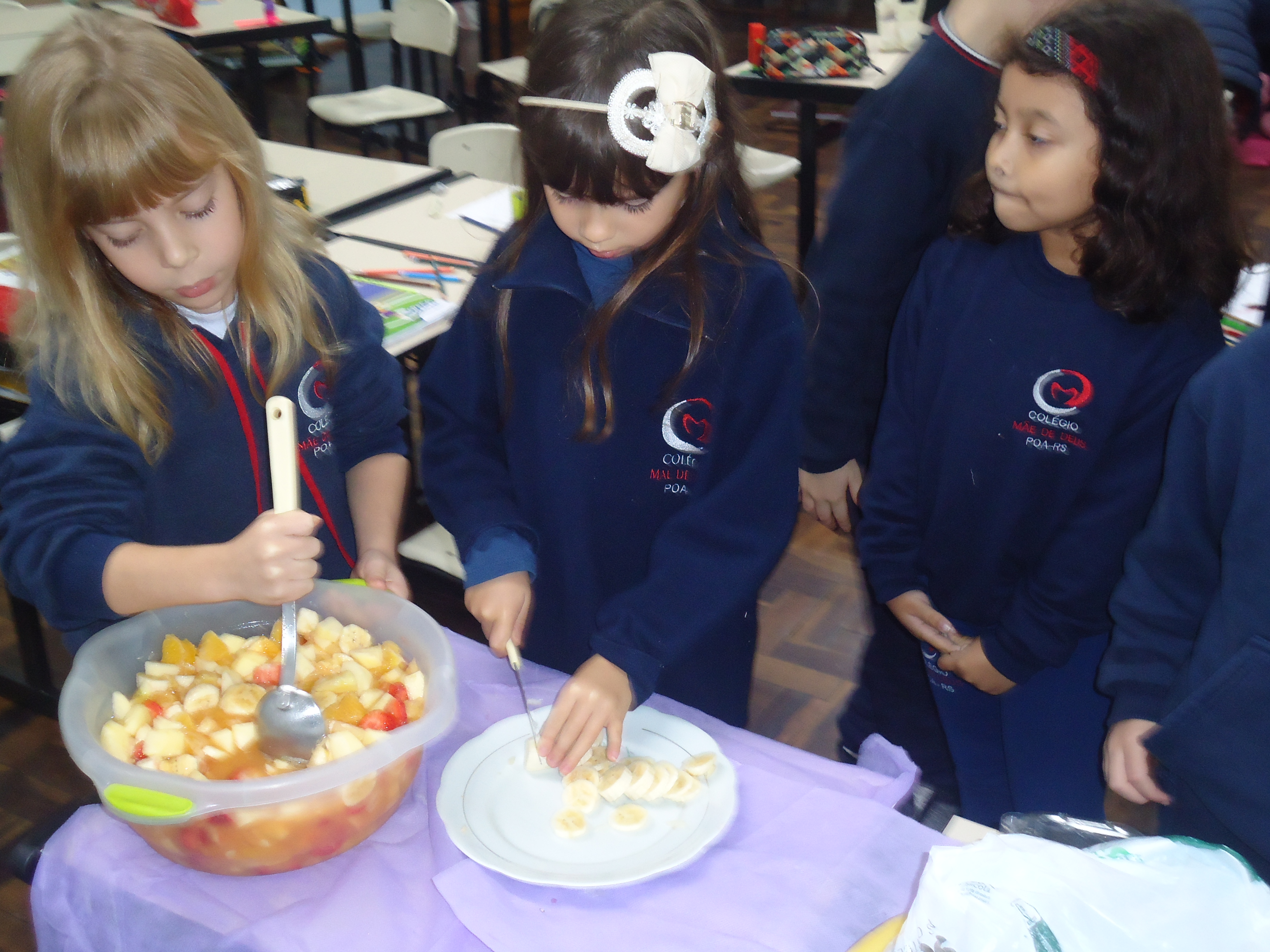 As turmas do Primeiro Ano prepararam e degustaram uma saborosa e colorida salada de frutas!