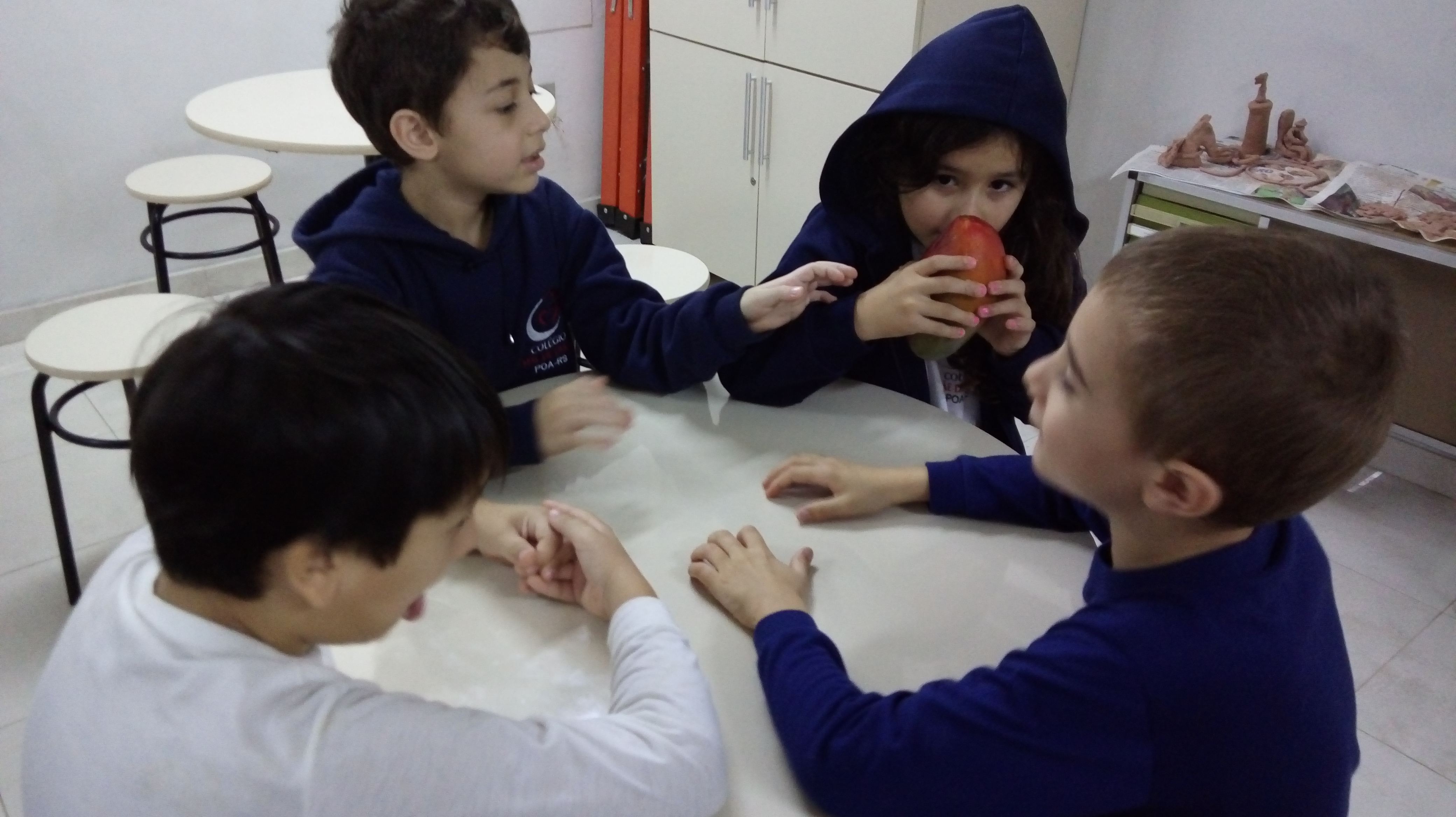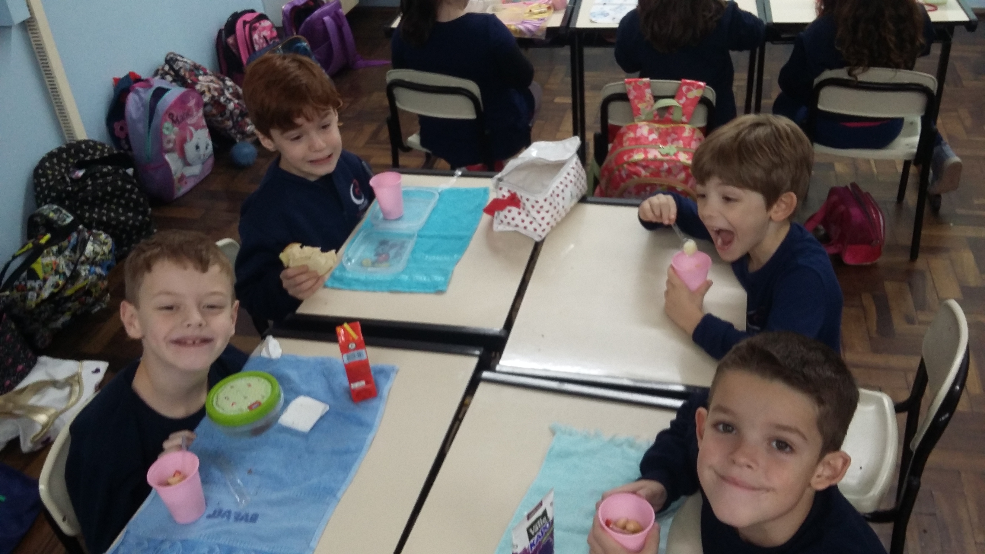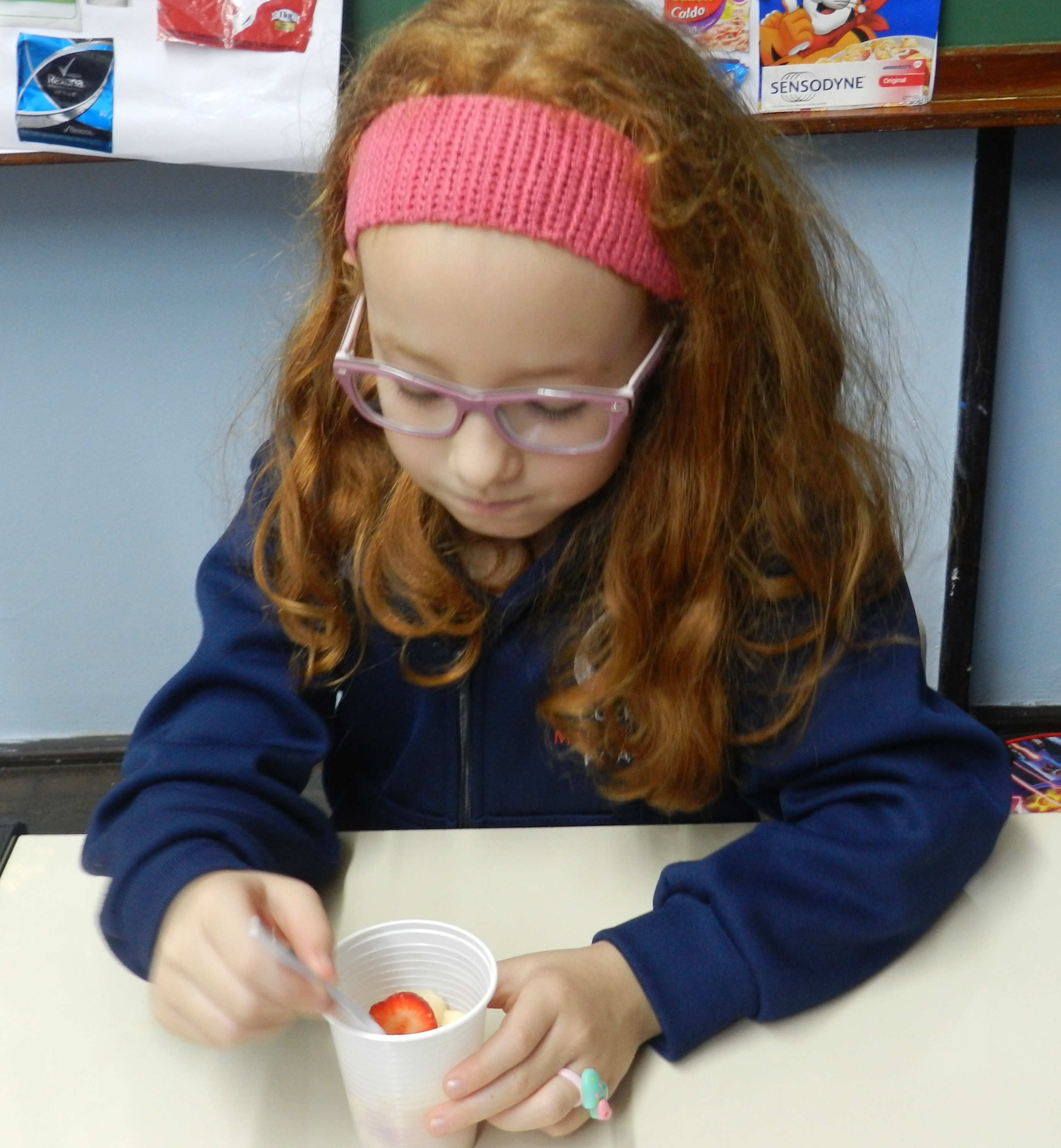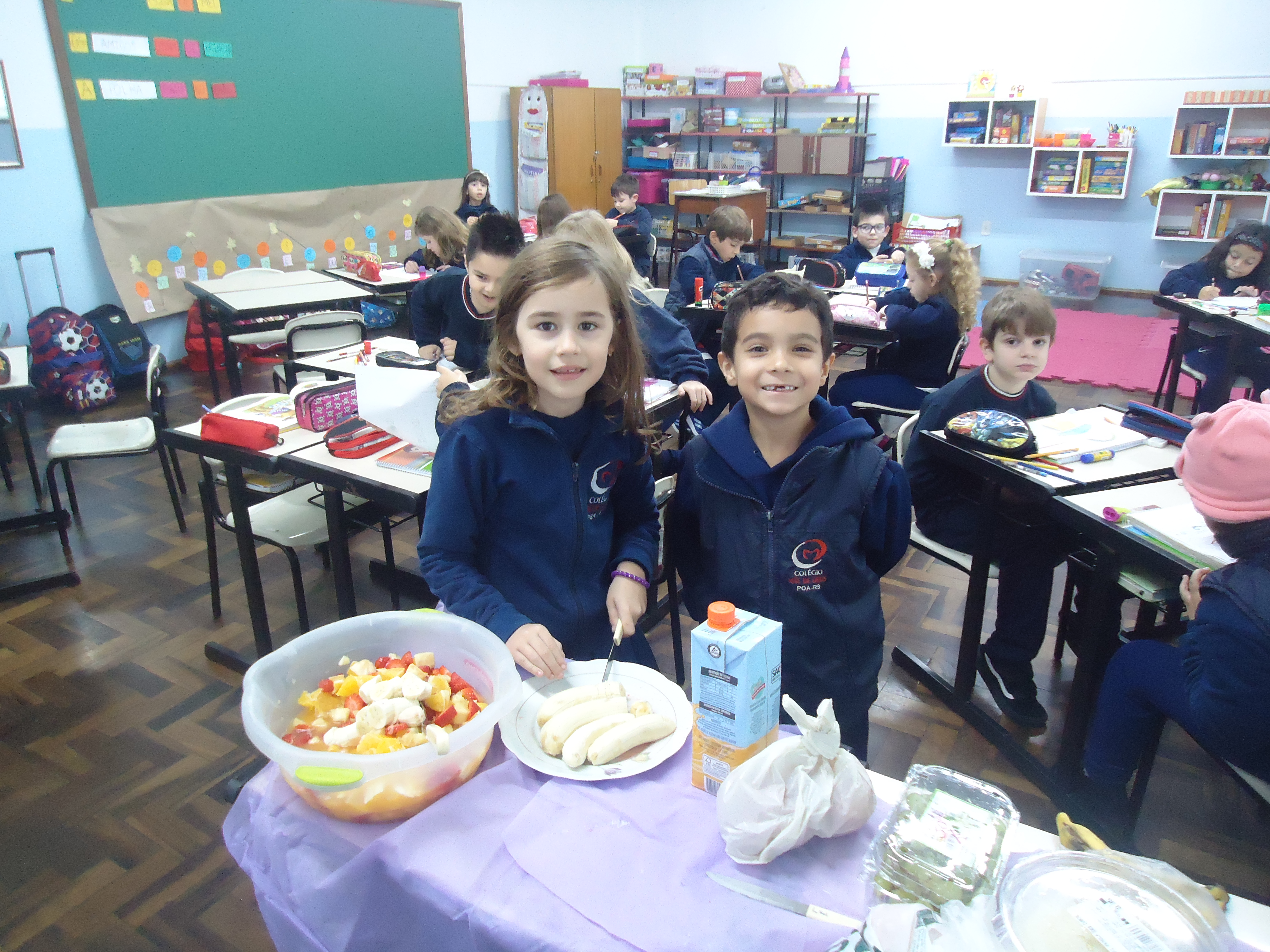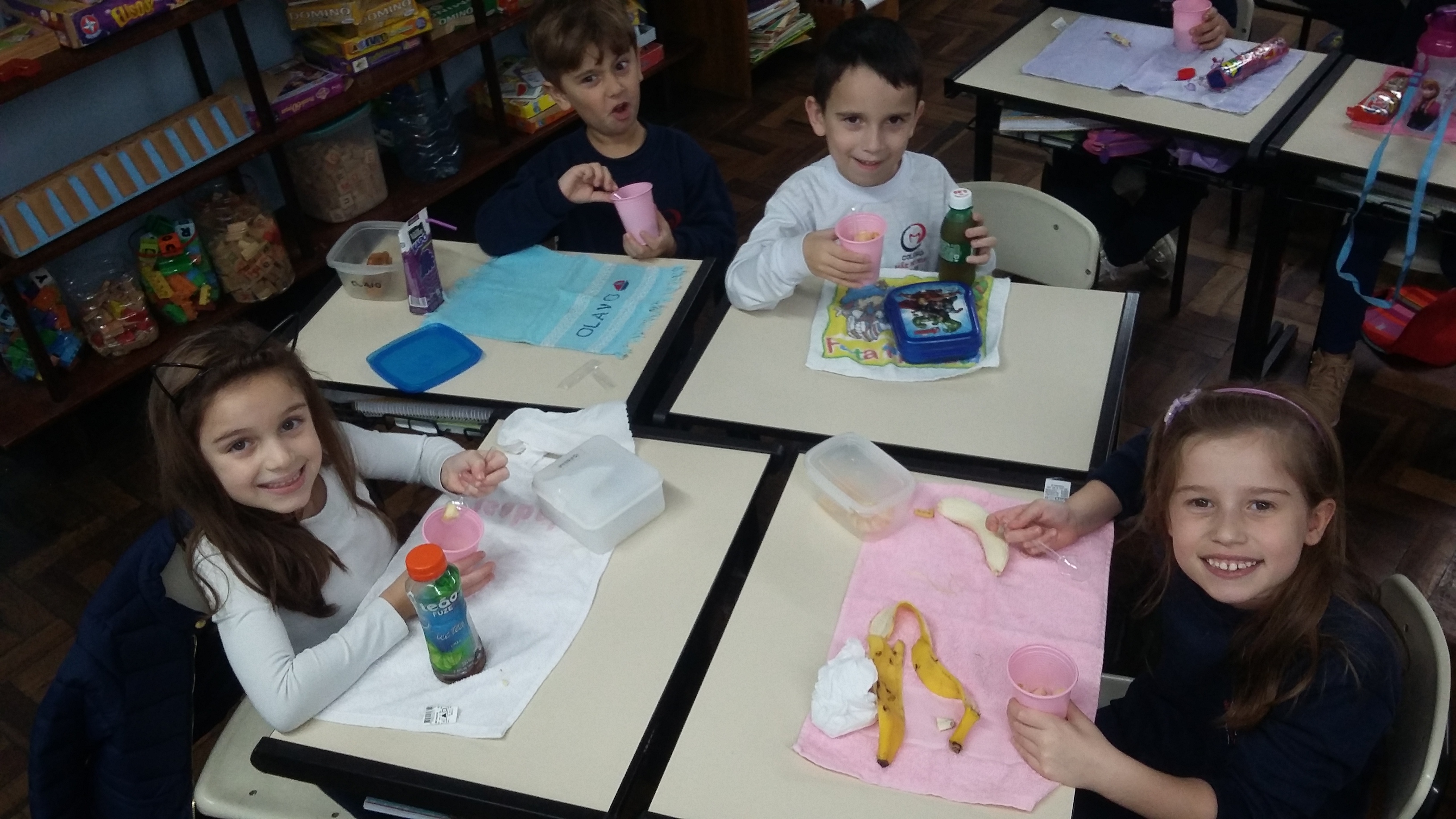 As turmas do Primeiro Ano prepararam e degustaram uma saborosa e colorida salada de frutas!