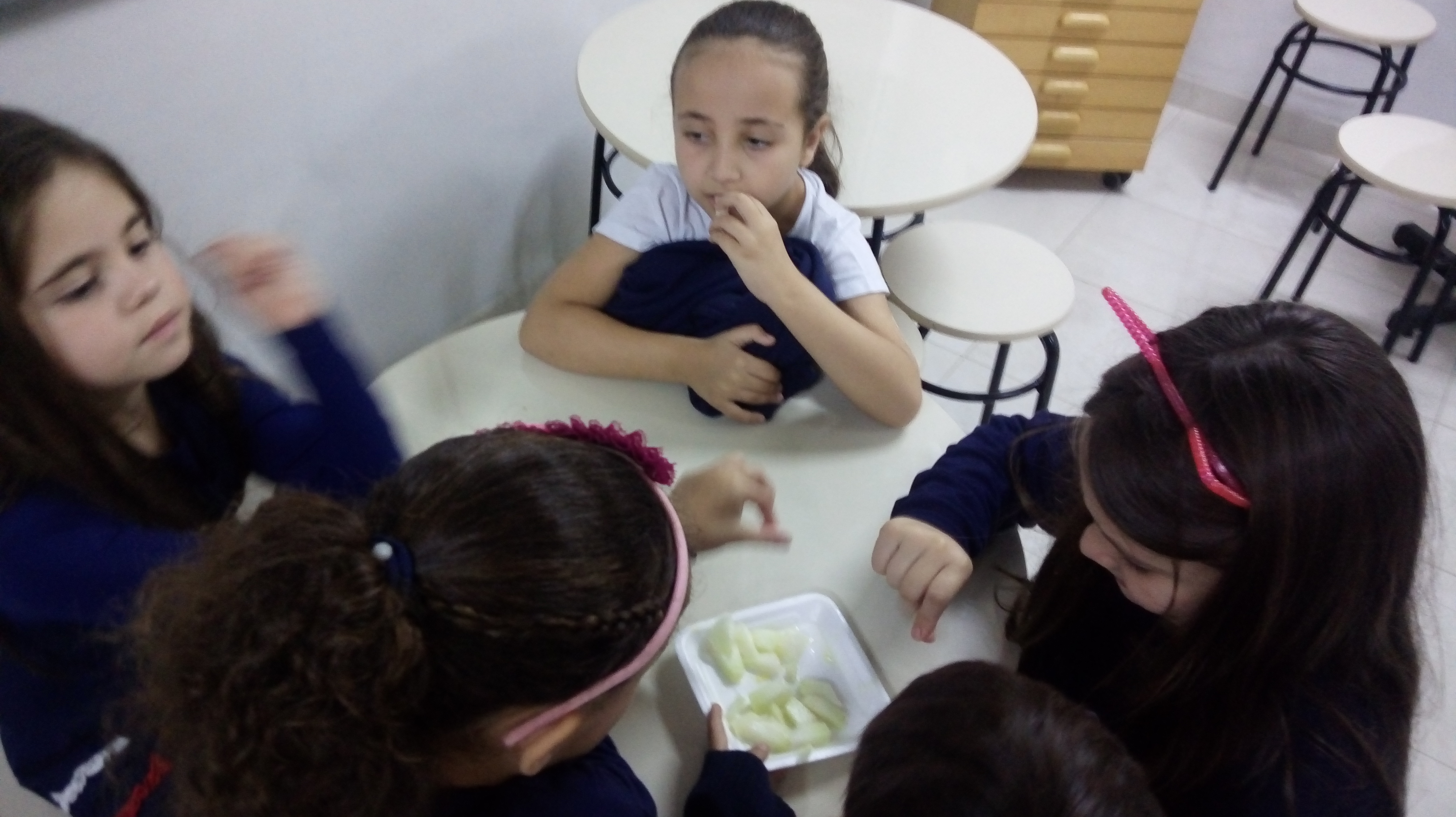 Com o objetivo de despertar hábitos de alimentação saudável e considerando a importância de ingerir os nutrientes existentes nos diferentes alimentos para a promoção da saúde, alunos e professoras prepararam e degustaram uma salada deliciosa.