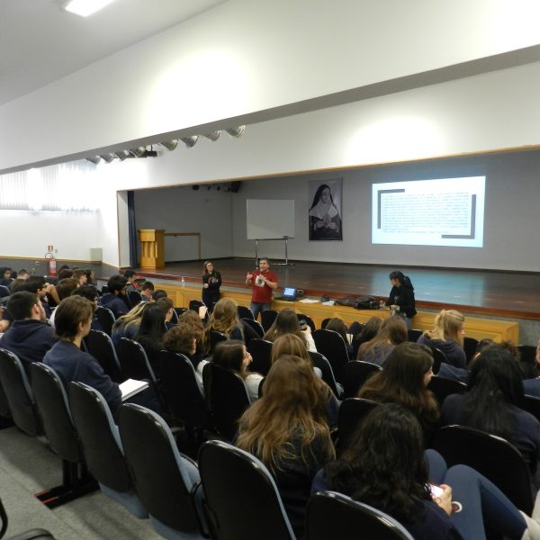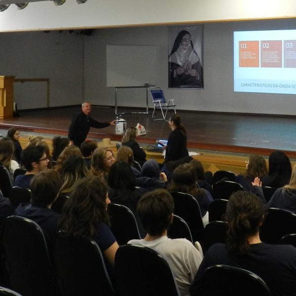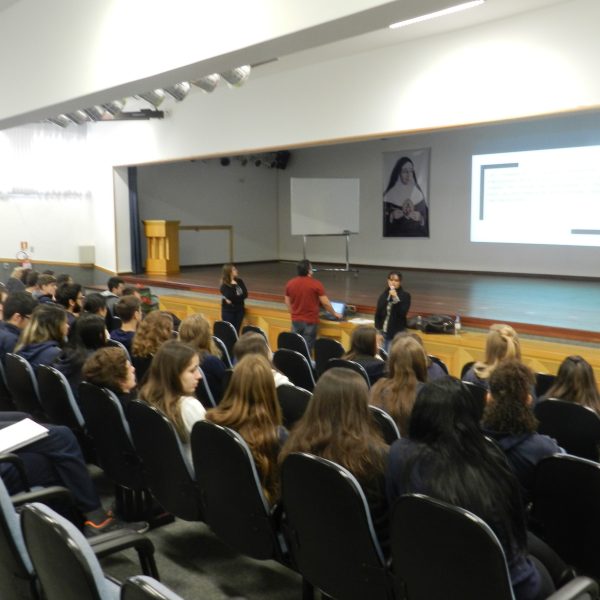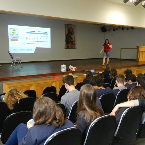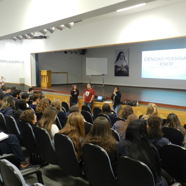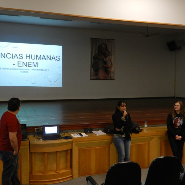 O outro encontro, também na quarta-feira, dia 25/10 enfatizou a Língua Estrangeira, a Química e a Física na prova do Enem, e foi organizado pelos professores Tais Nicolao, de Inglês; Renato Loureiro, de química e Patrícia Pino de Física.