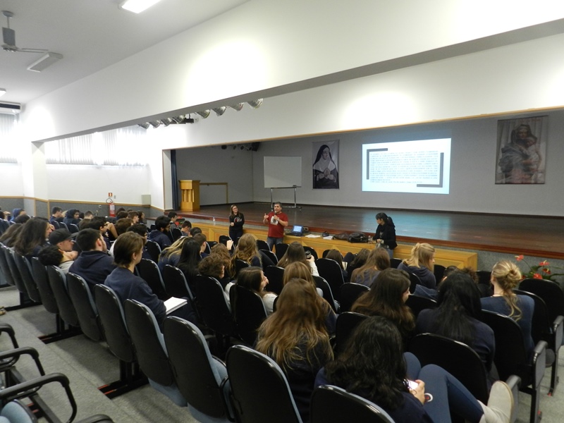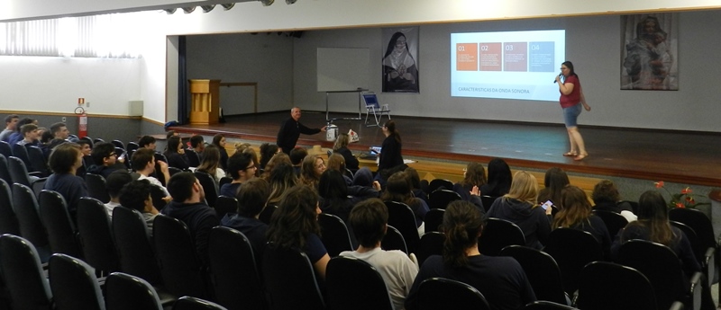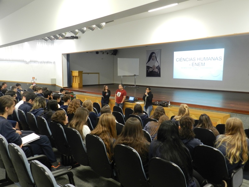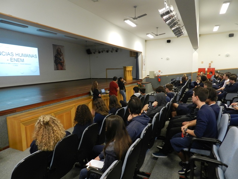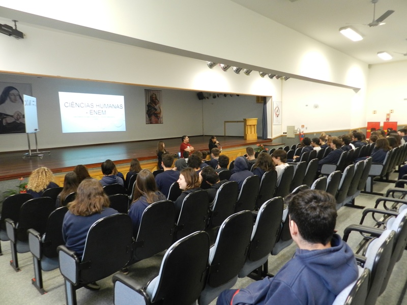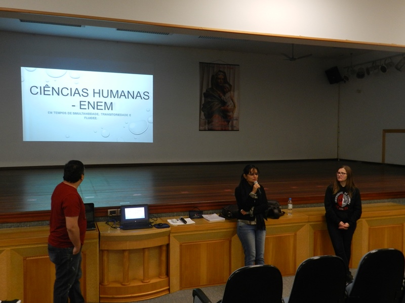 O outro encontro, também na quarta-feira, dia 25/10 enfatizou a Língua Estrangeira, a Química e a Física na prova do Enem, e foi organizado pelos professores Tais Nicolao, de Inglês; Renato Loureiro, de química e Patrícia Pino de Física.