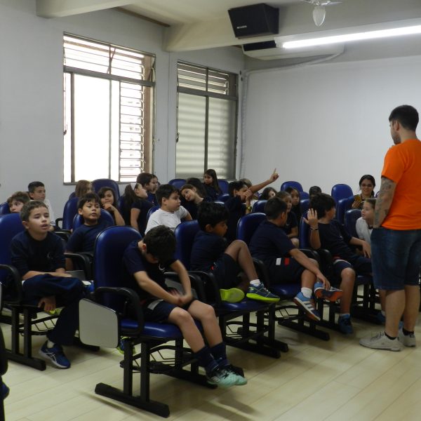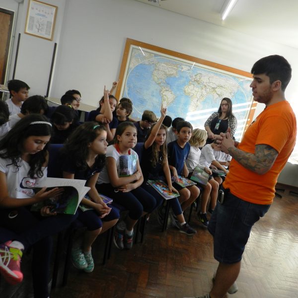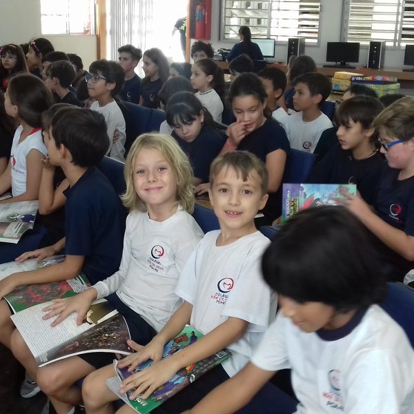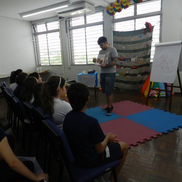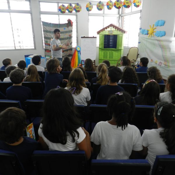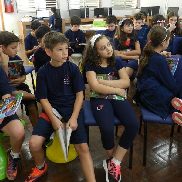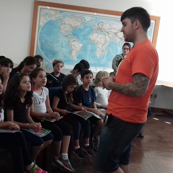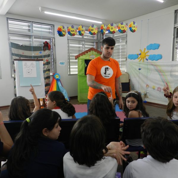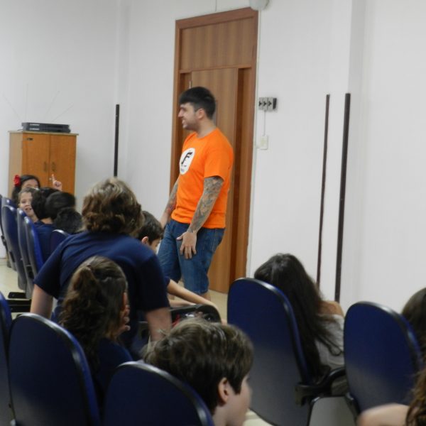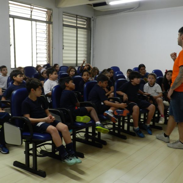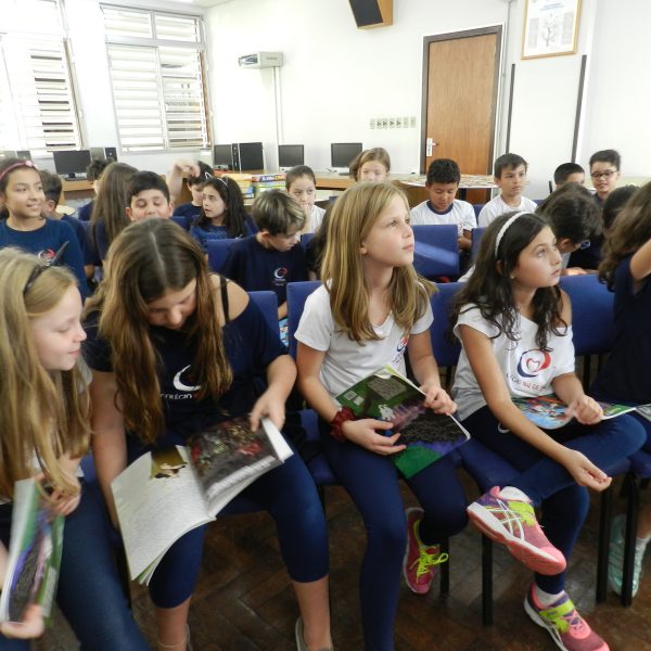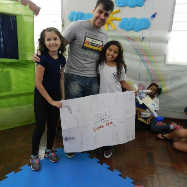 Durante a Semana da Biblioteca, recebemos a presença do escritor Carlos Augusto Pessoa Brum que veio contar um pouco das aventuras do “Cadu com a macaca” e “Cadu procura no Rio Grande do Sul” para os alunos do 3º e 4º ano do Ensino Fundamental.
