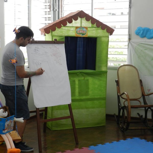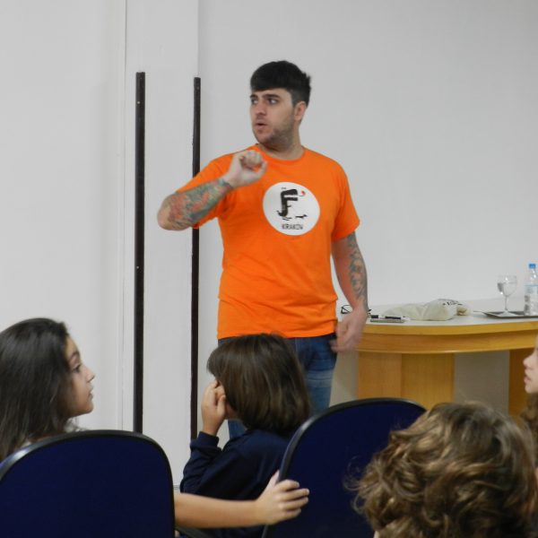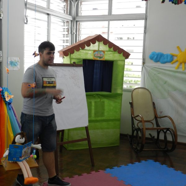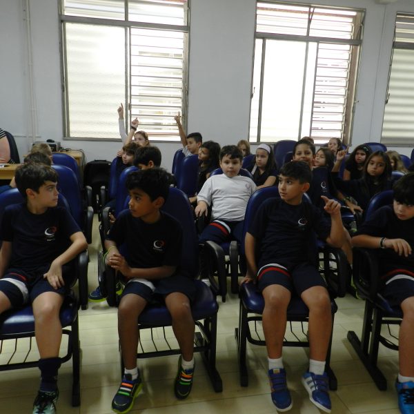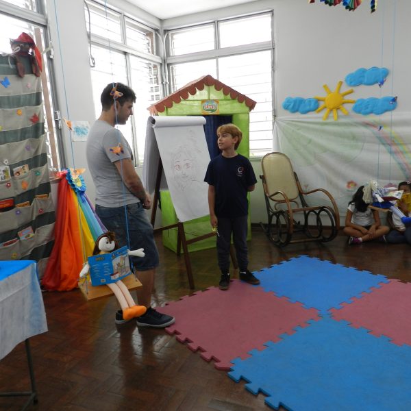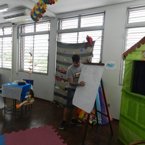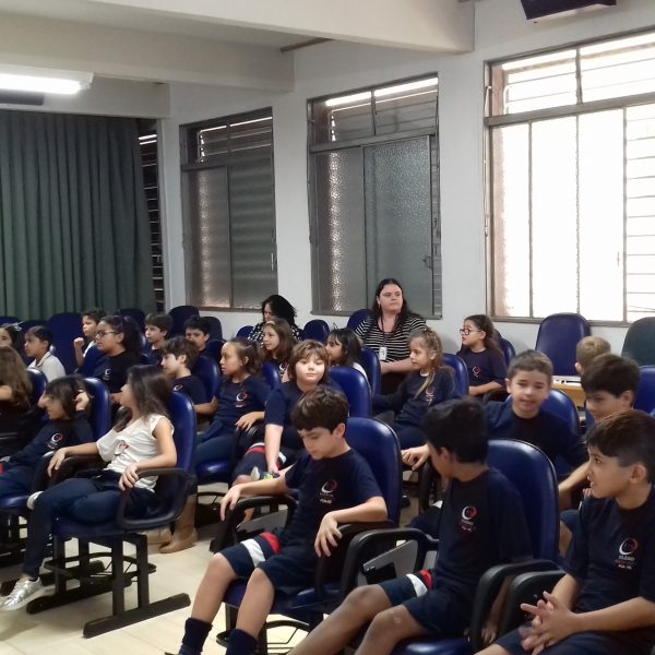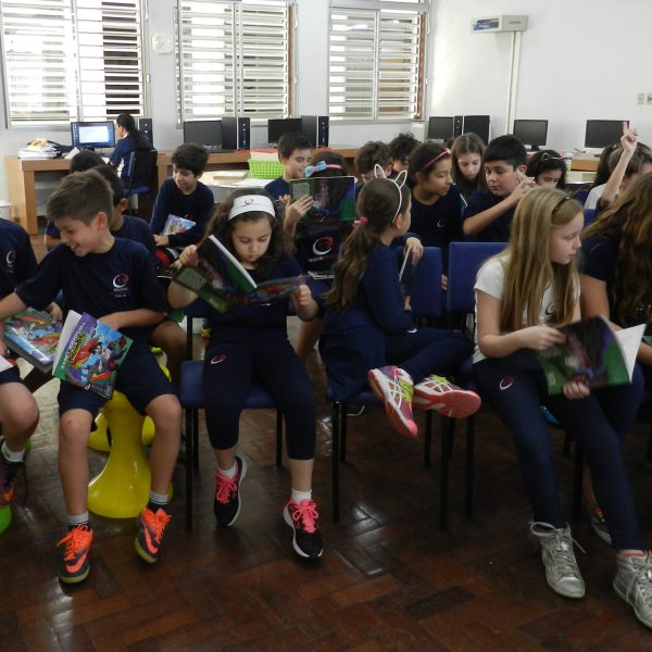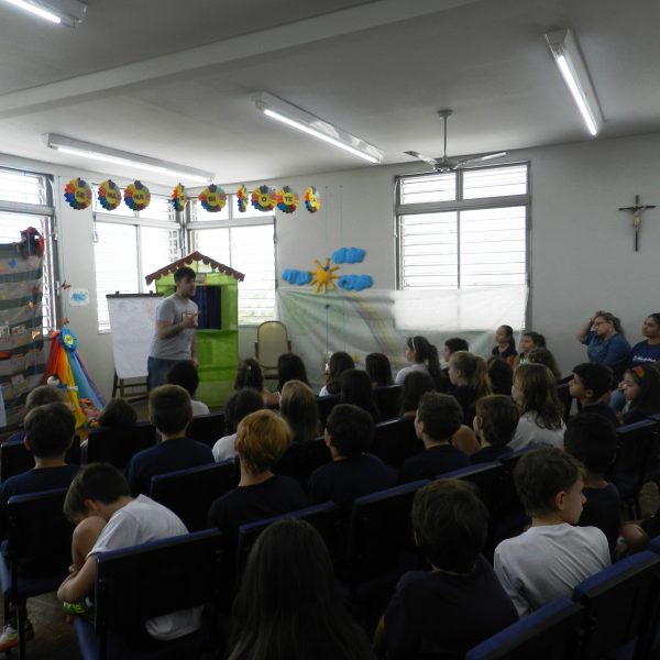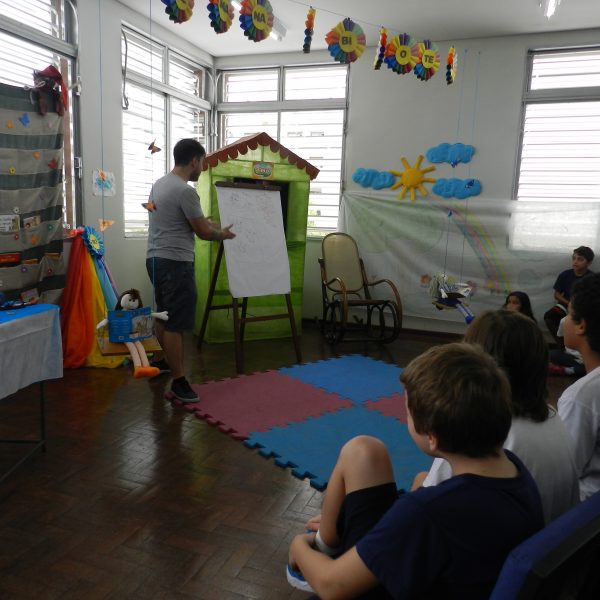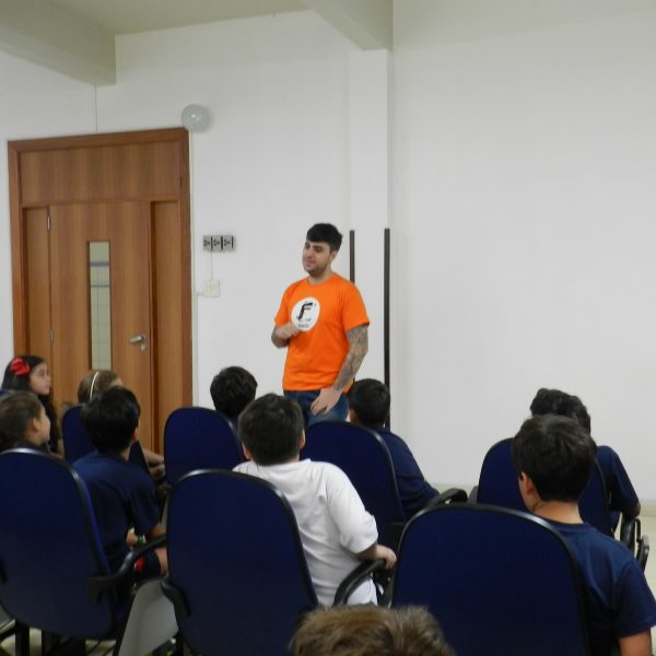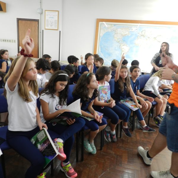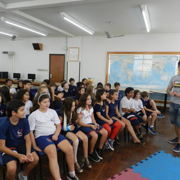 Durante a Semana da Biblioteca, recebemos a presença do escritor Carlos Augusto Pessoa Brum que veio contar um pouco das aventuras do “Cadu com a macaca” e “Cadu procura no Rio Grande do Sul” para os alunos do 3º e 4º ano do Ensino Fundamental.