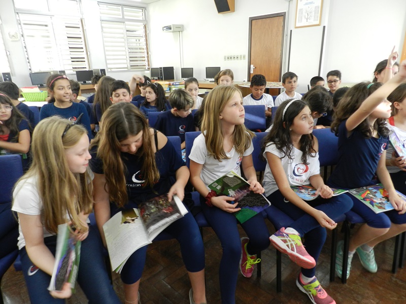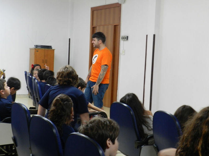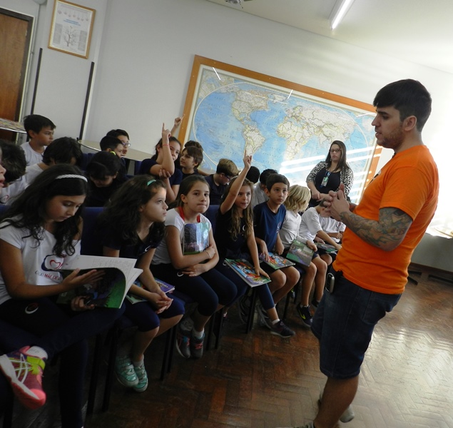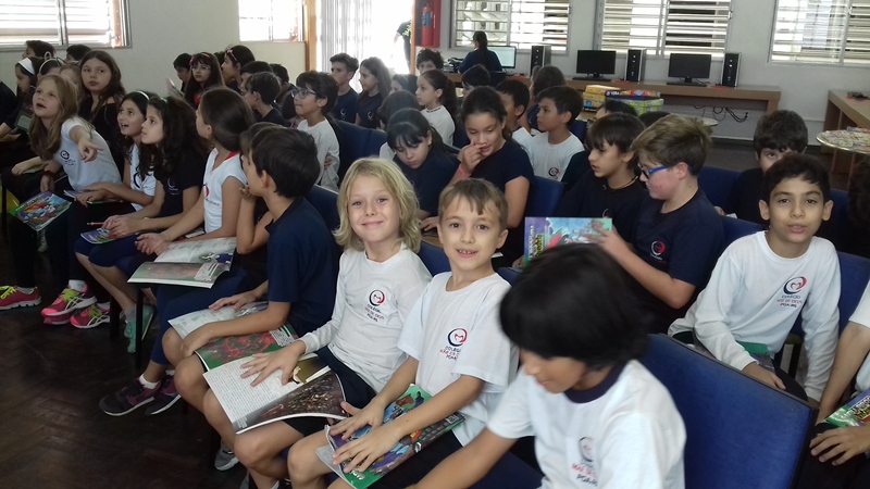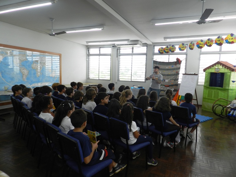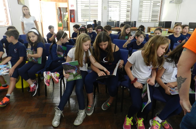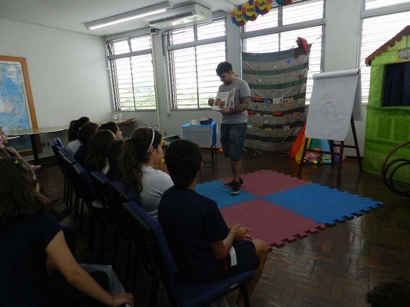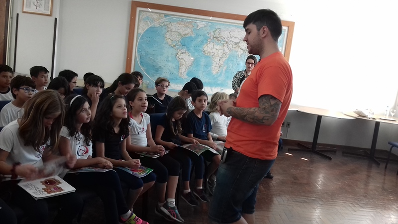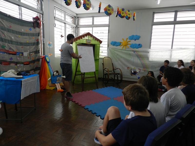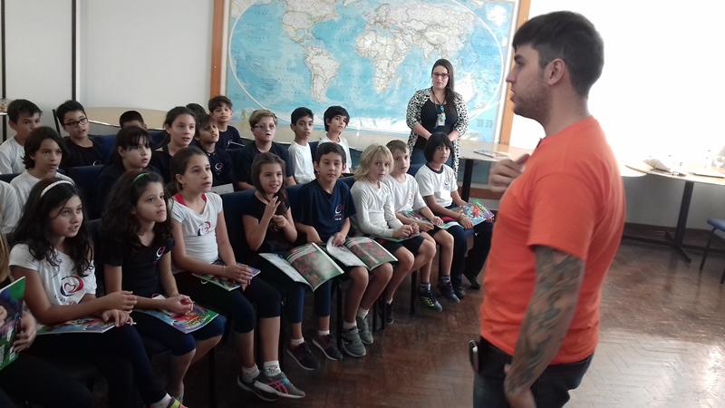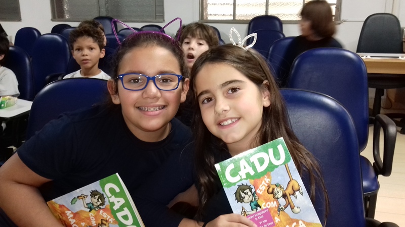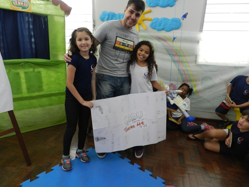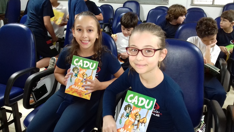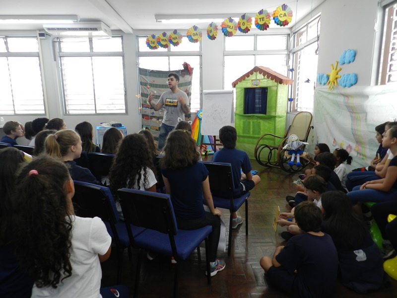 Durante a Semana da Biblioteca, recebemos a presença do escritor Carlos Augusto Pessoa Brum que veio contar um pouco das aventuras do “Cadu com a macaca” e “Cadu procura no Rio Grande do Sul” para os alunos do 3º e 4º ano do Ensino Fundamental.