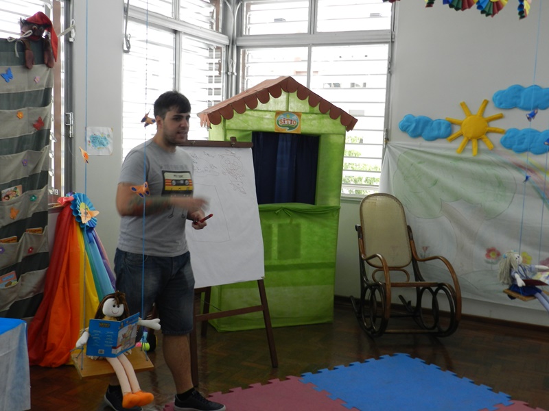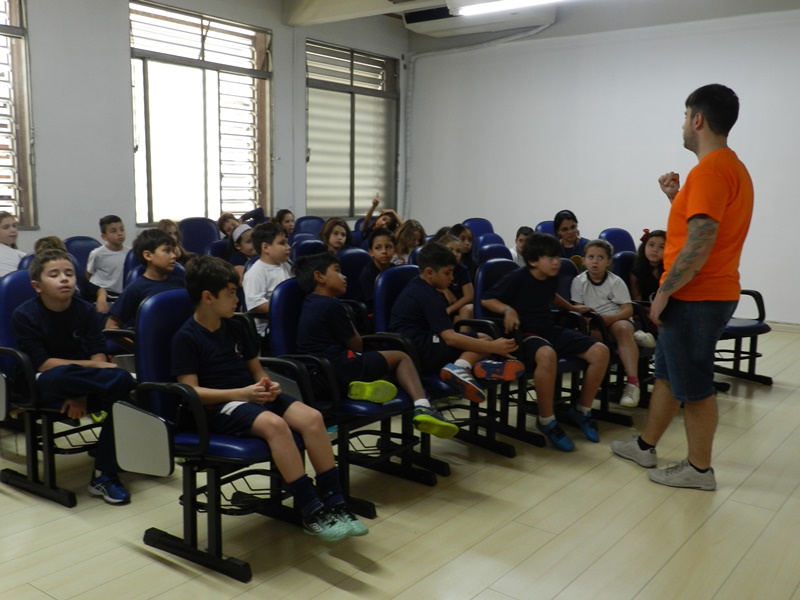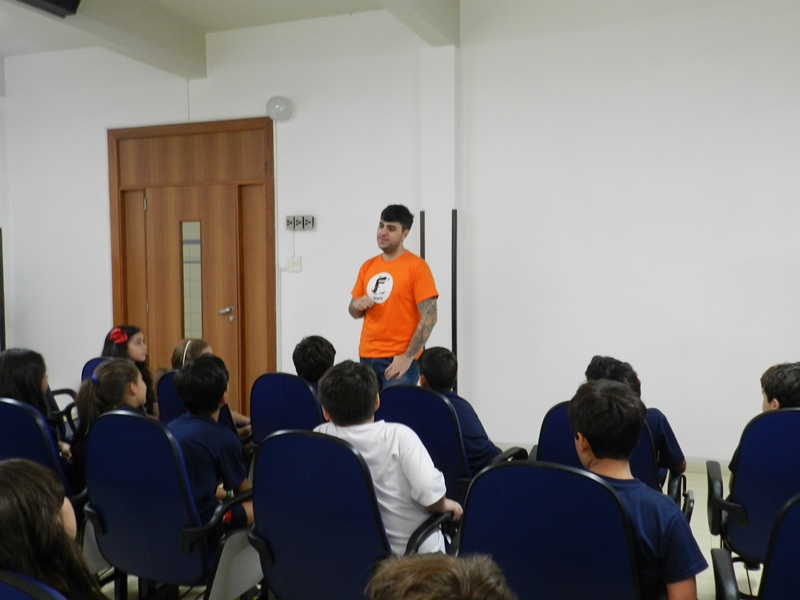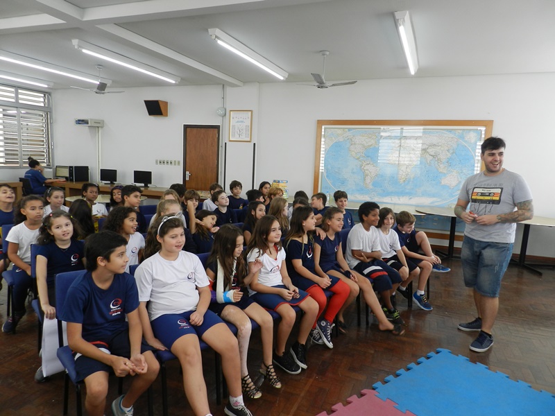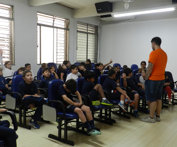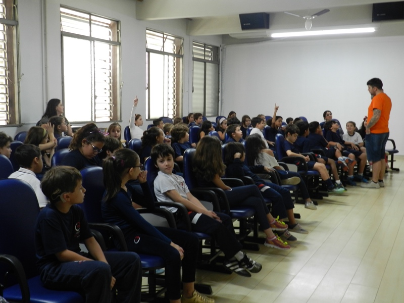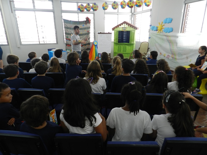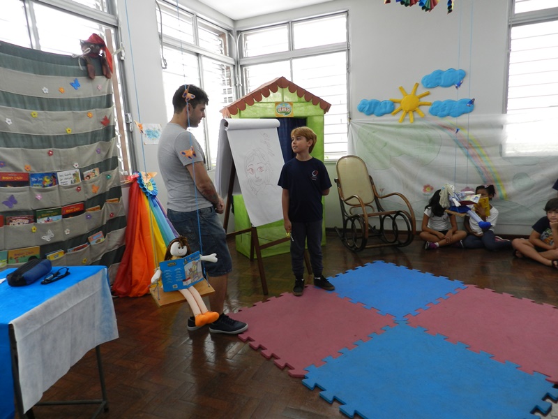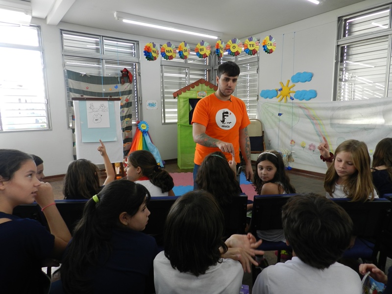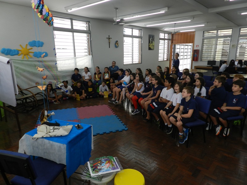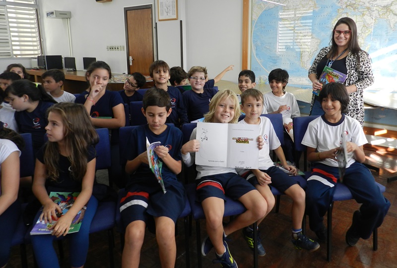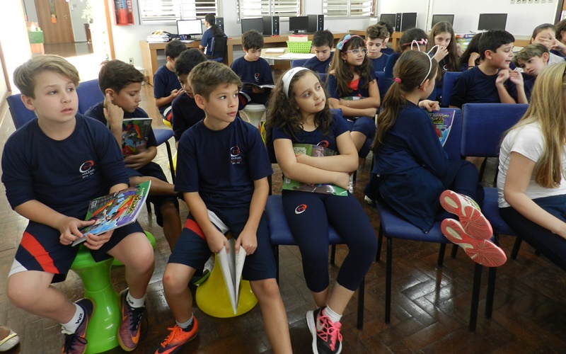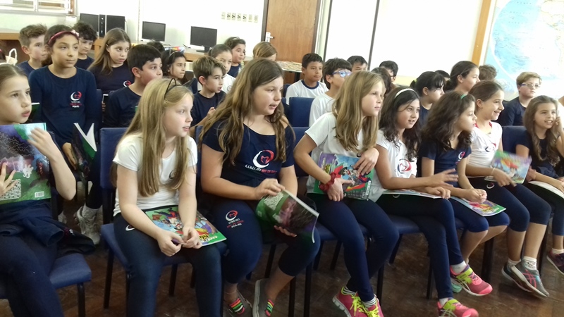 Durante a Semana da Biblioteca, recebemos a presença do escritor Carlos Augusto Pessoa Brum que veio contar um pouco das aventuras do “Cadu com a macaca” e “Cadu procura no Rio Grande do Sul” para os alunos do 3º e 4º ano do Ensino Fundamental.
