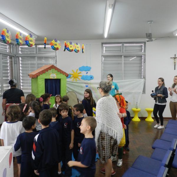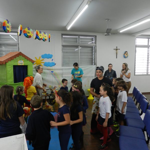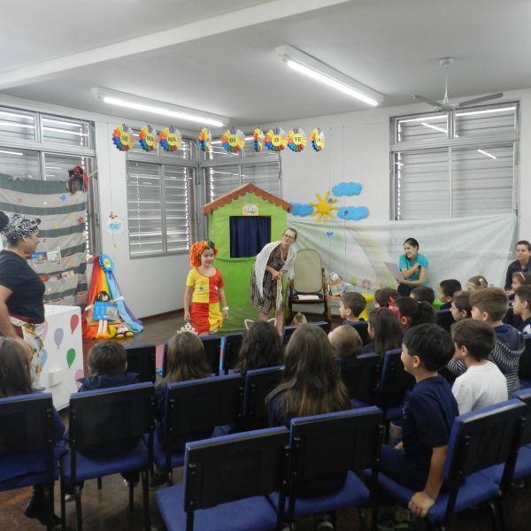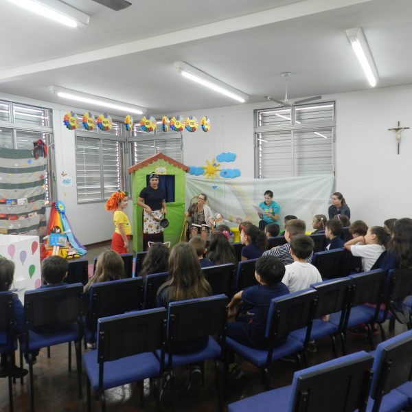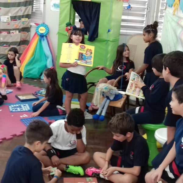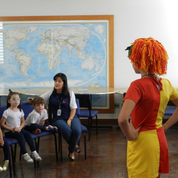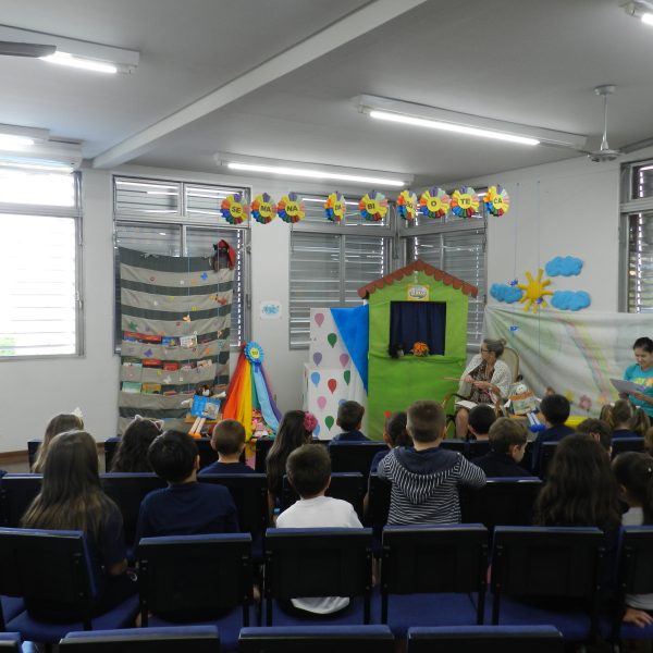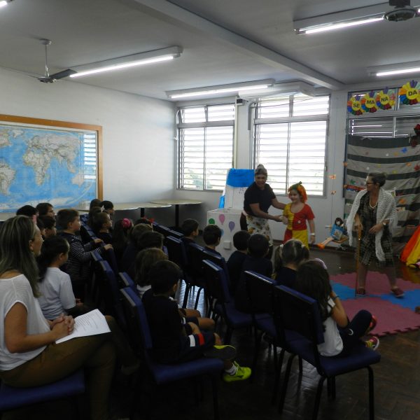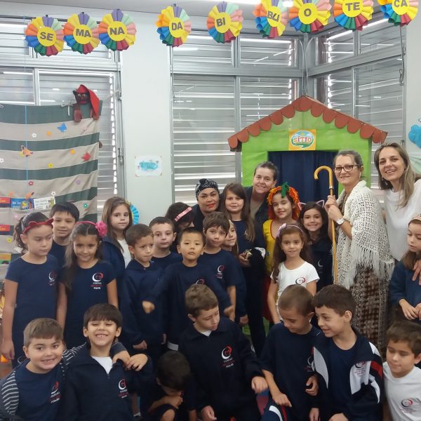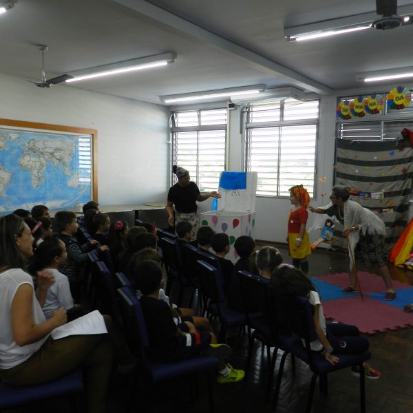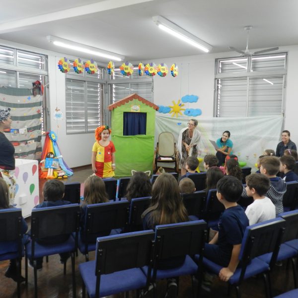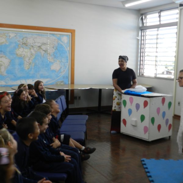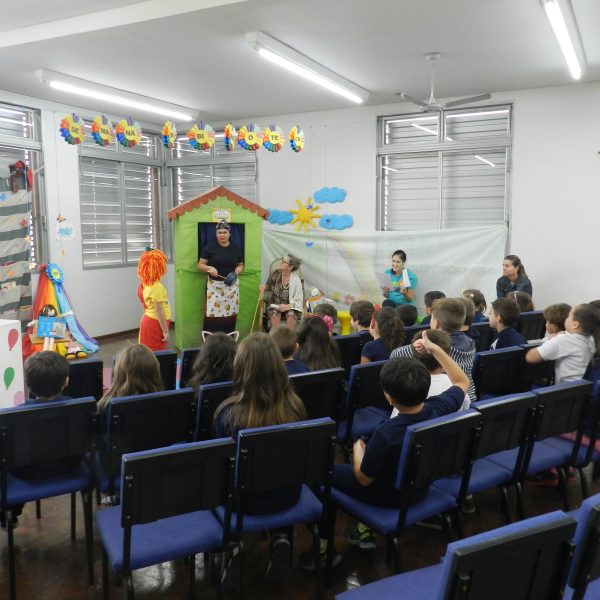 As novidades ficaram por conta do Teatro de Fantoches: “Emília e a Pílula Falante”. A encenação contou carinhosamente com a participação da equipe da Biblioteca que alegrou e divertiu a Educação Infantil e 1º ano.