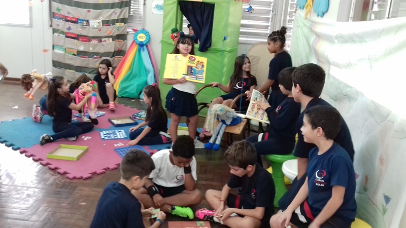 As novidades ficaram por conta do Teatro de Fantoches: “Emília e a Pílula Falante”. A encenação contou carinhosamente com a participação da equipe da Biblioteca que alegrou e divertiu a Educação Infantil e 1º ano.