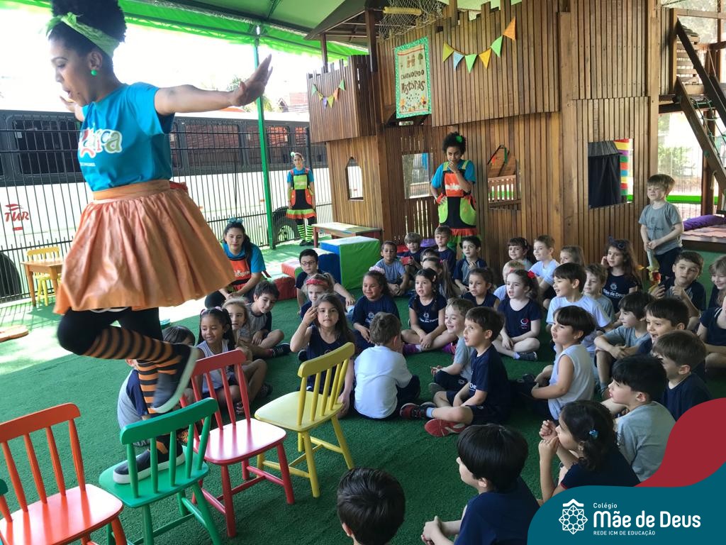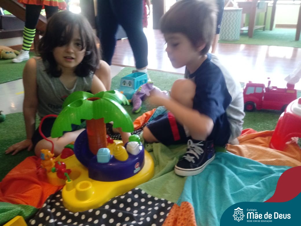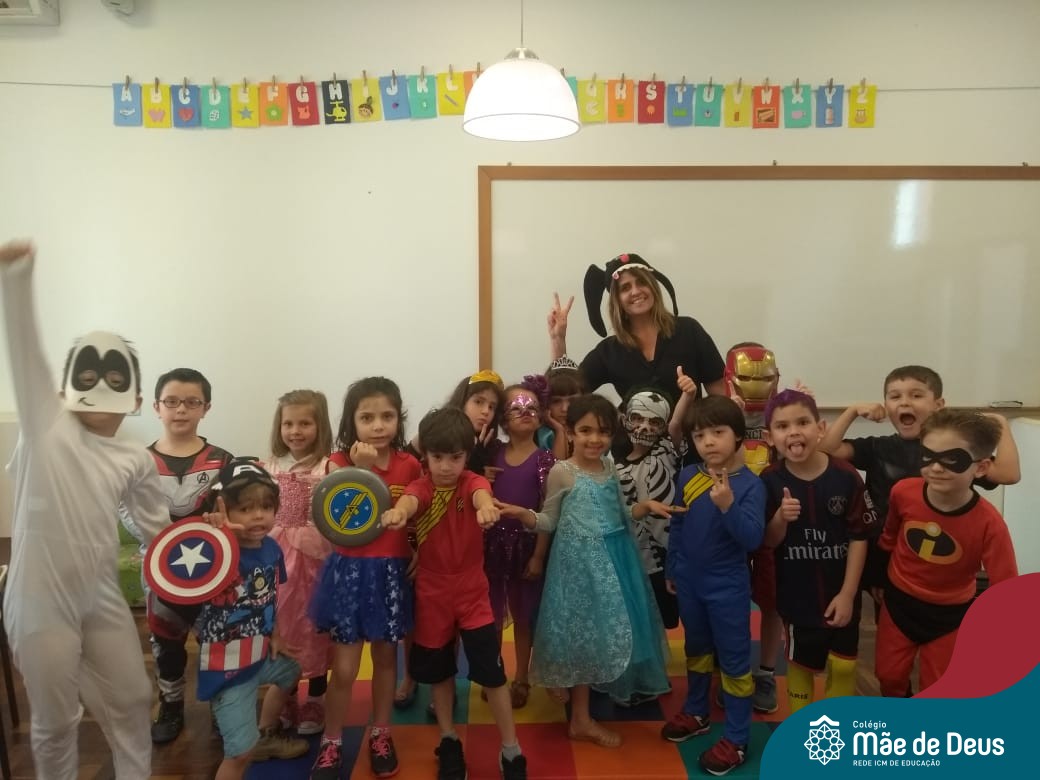 A semana das crianças da Educação Infantil foi recheada de atividades recreativas envolvendo fantasia, cabelo maluco, show de patinação, oficinas com as professoras, cineminha com pipoca, massinha de modelar caseira e também uma ida a Casa Lúdica.