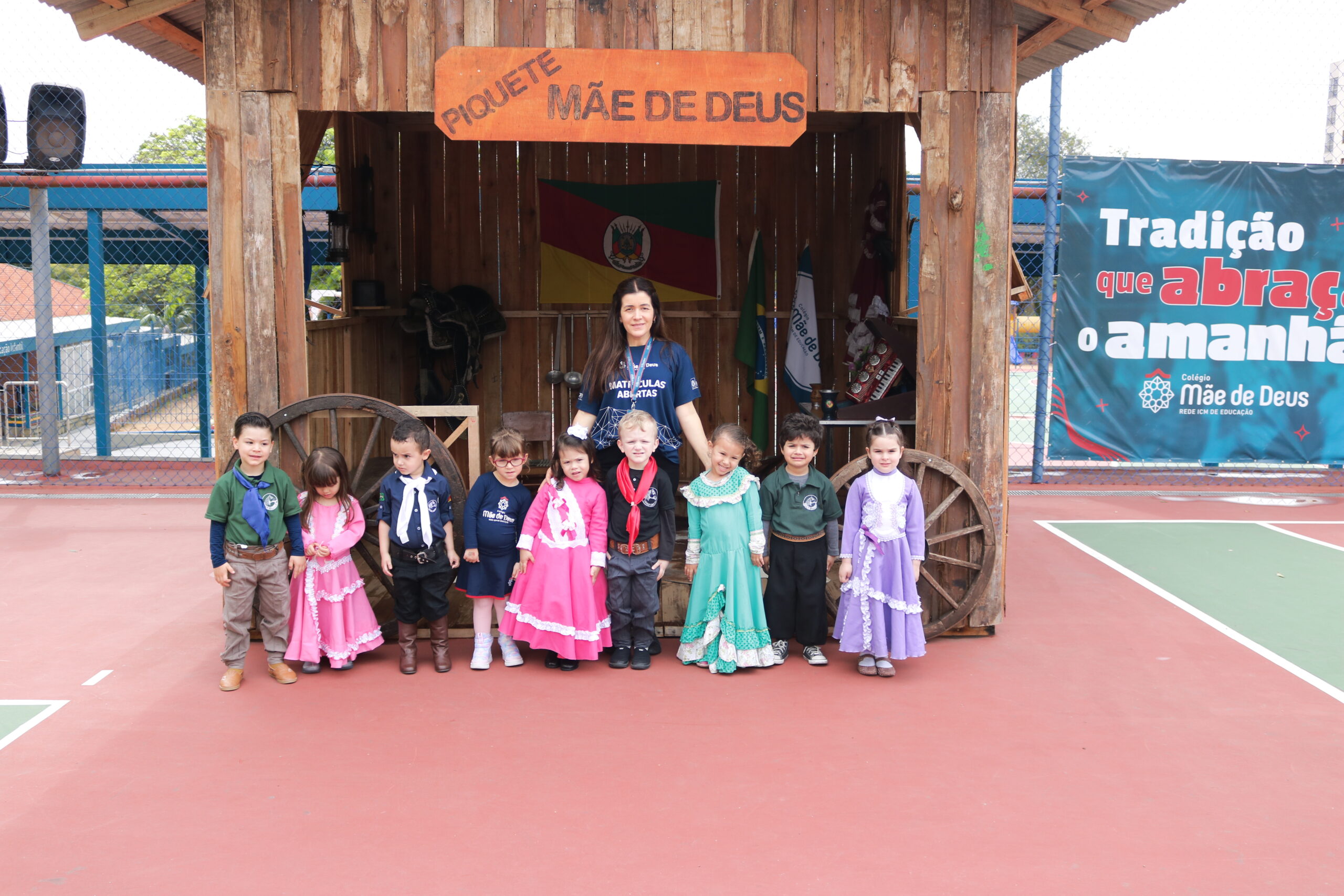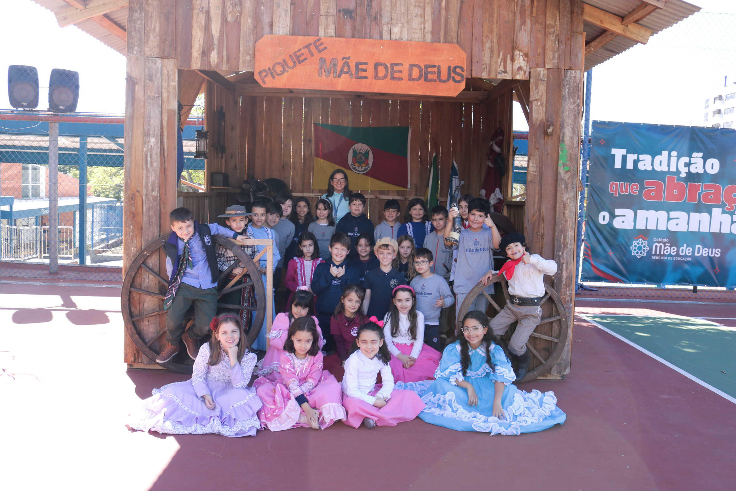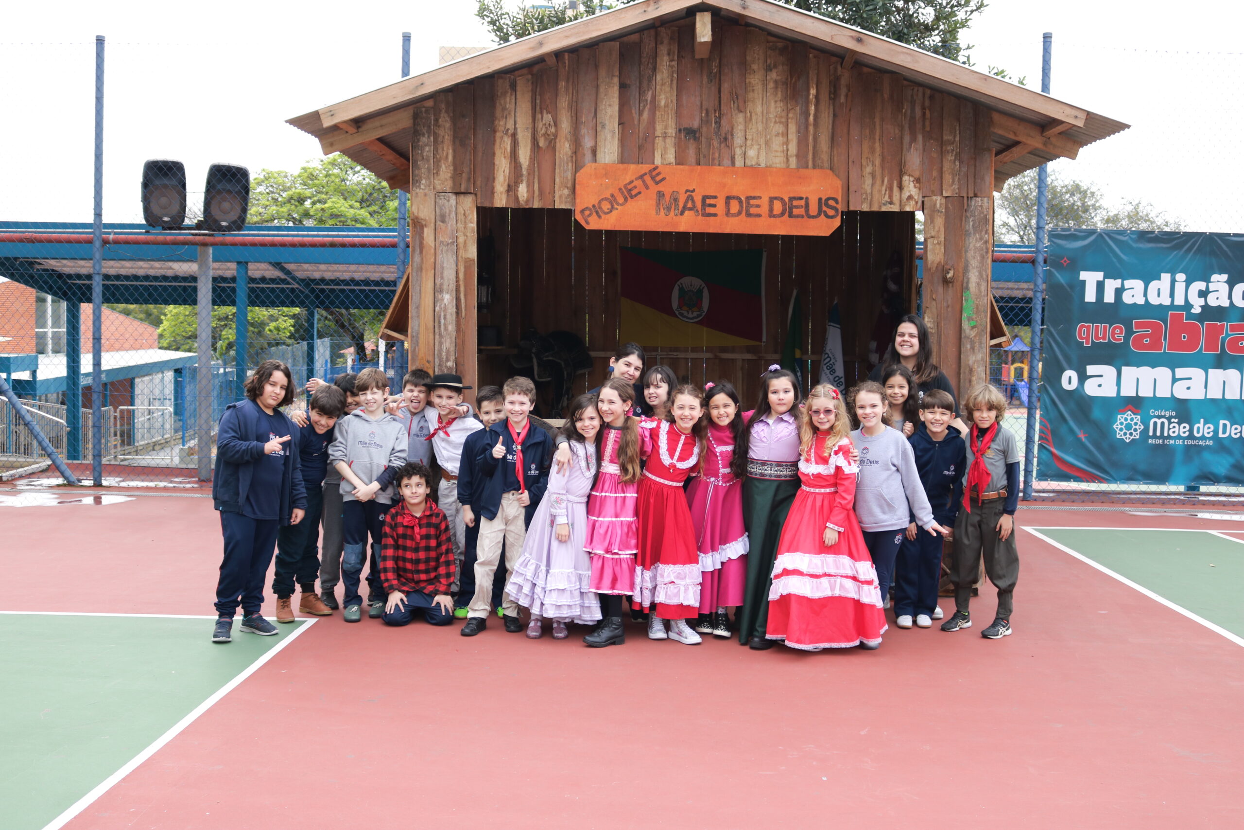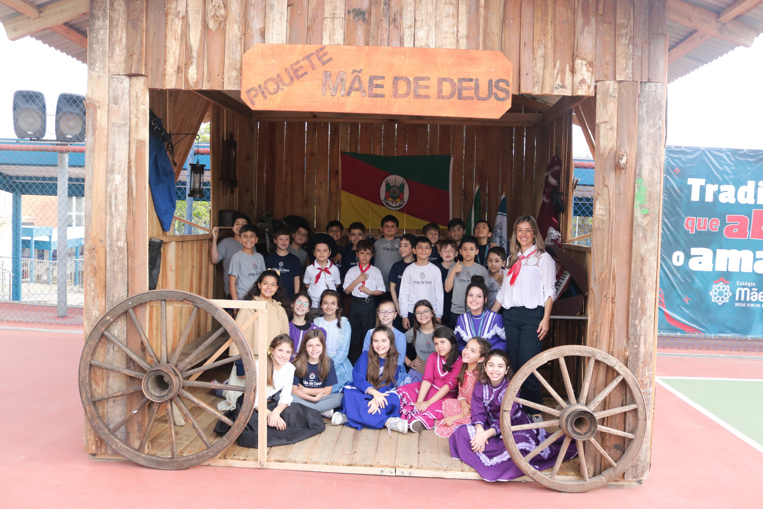 No piquete tivemos contação de histórias, rodas de chimarrão e danças típicas. Os alunos aprenderam mais sobre os objetos tradicionalistas e a história do nosso povo.