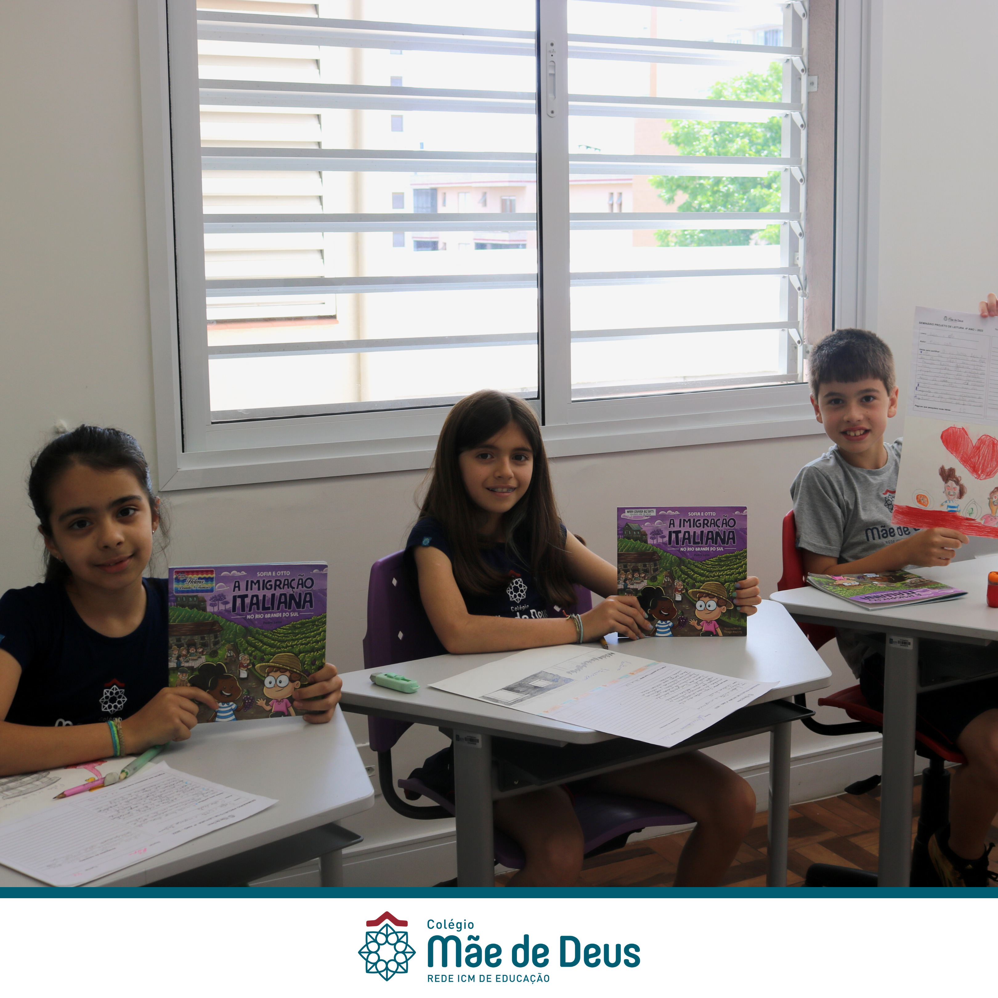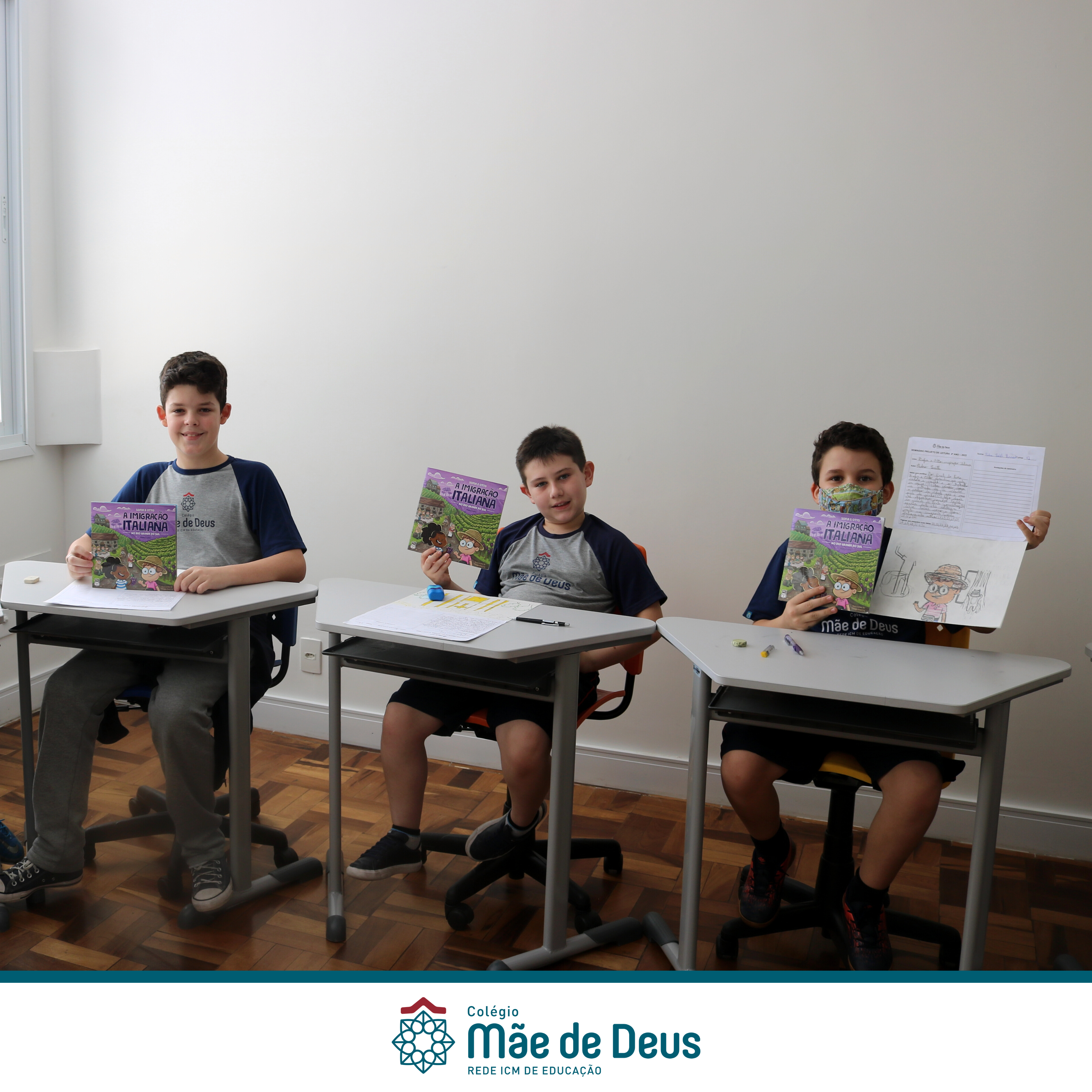 A turma 42, do 4º Ano do Ensino Fundamental, realizou o Seminário de Leitura, sobre o livro “A Imigração Italiana”, do autor Pedro Leite.