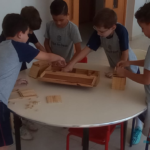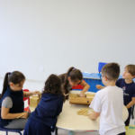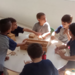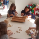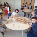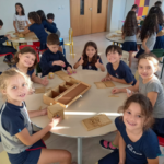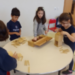 Os alunos do 2º Ano do Ensino Fundamental foram desafiados a explorarem o material dourado, fazendo construções de acordo com as propostas orientadas pelas professoras. Após essa exploração, foi introduzido o conceito de centena com as turmas.