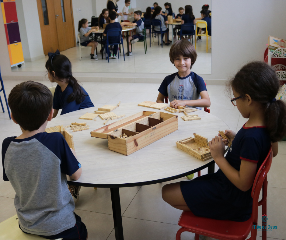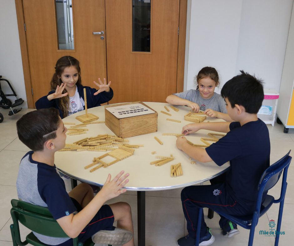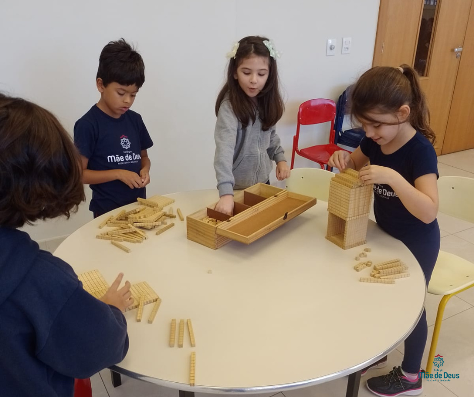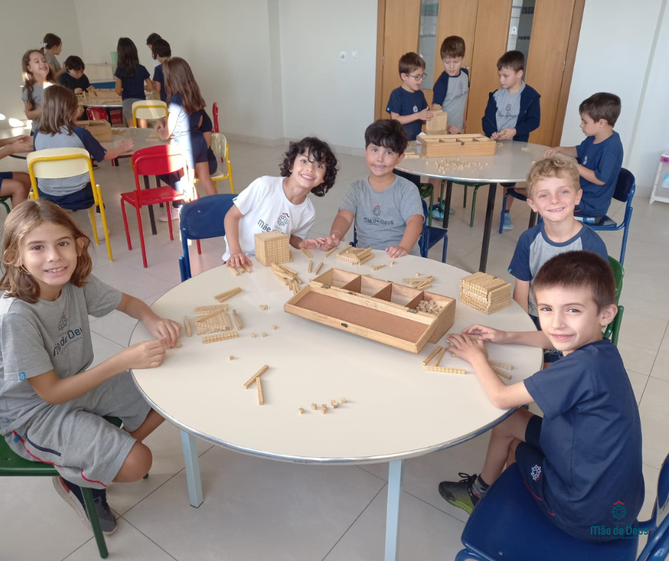 O trabalho com material concreto facilita o entendimento de conceitos importantes e desafia o aluno a aprender brincando.