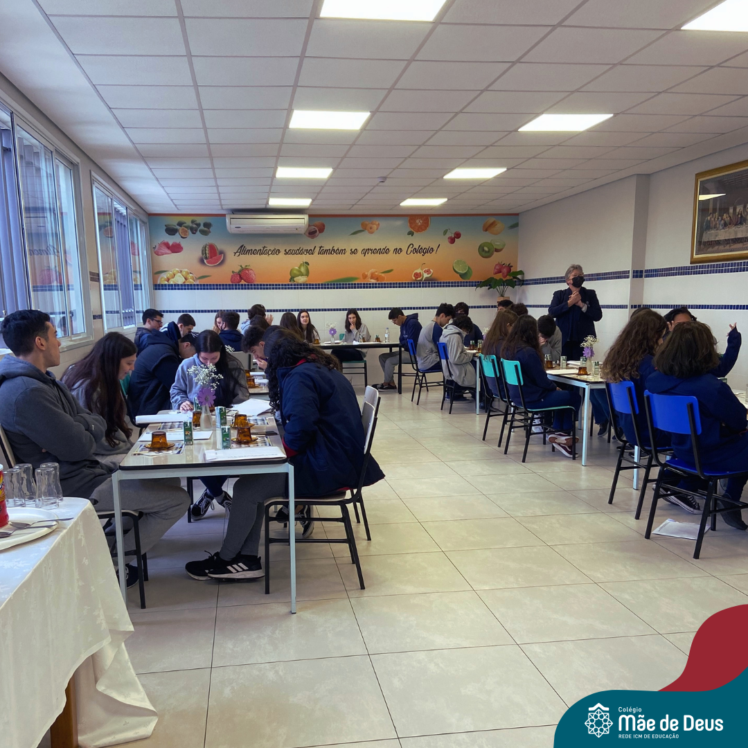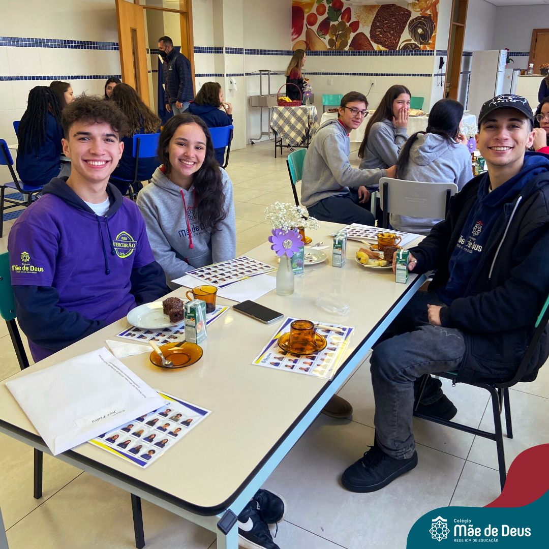 Na primeira parte da surpresa, os alunos foram recepcionados no salão do Colégio, onde escutarem mensagens de incentivo e um poema. Posteriormente, os estudantes receberam o caderno de recordações, que haviam elaborado quando ainda estavam no 9° Ano do Ensino Fundamental. Para finalizar a surpresa, os alunos ganharam um sousplet com as suas fotos e um delicioso café da manhã.