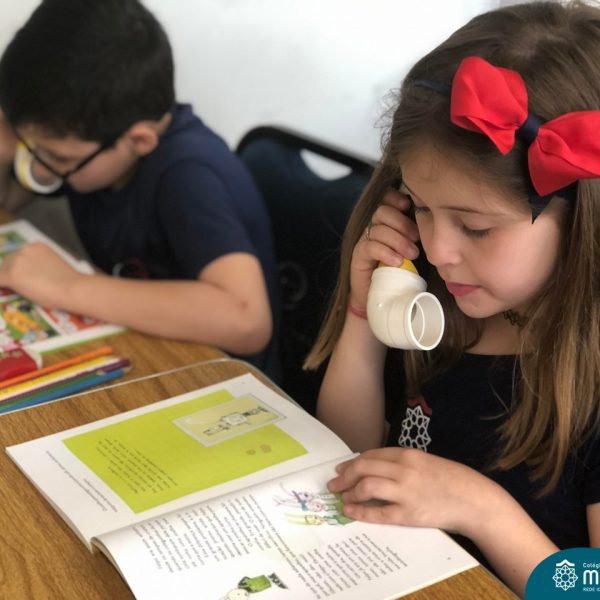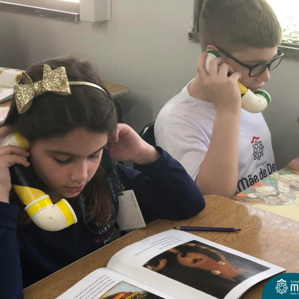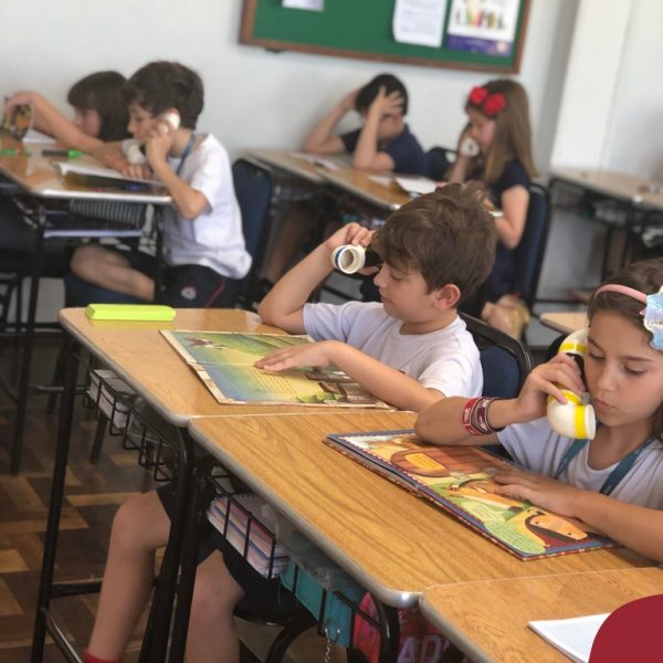 Acreditando ser de grande importância para a aprendizagem dos estudantes o estímulo à leitura, a turma 33 vem se divertindo com o auxílio de um instrumento muito diferente e favorável, em que o leitor, consegue se ouvir no ato da leitura. O uso do “Telefone da Leitura” associa ludicidade ao processo intelectual, cognitivo e cultural.