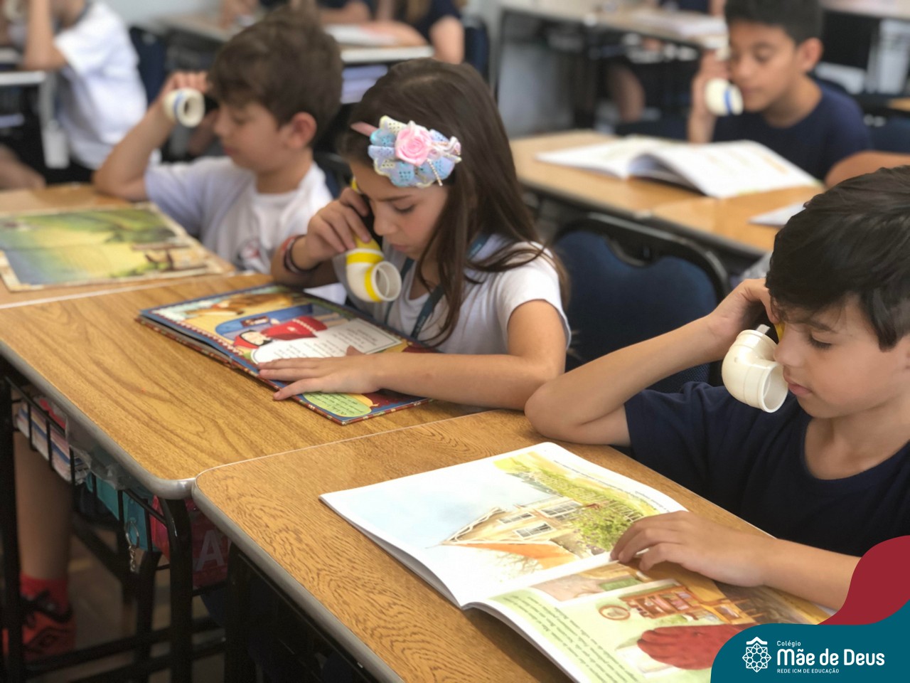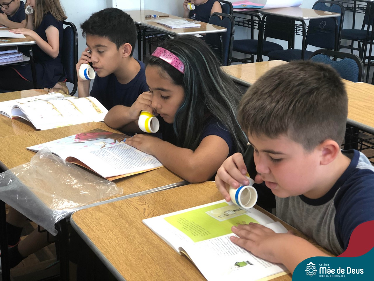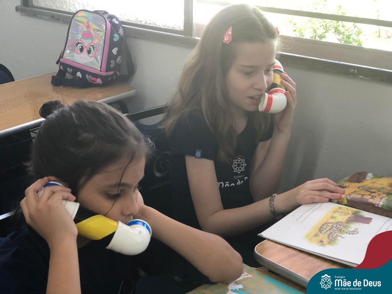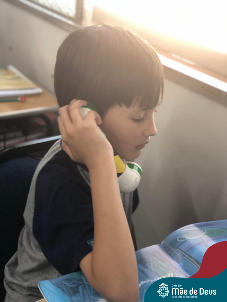 Acreditando ser de grande importância para a aprendizagem dos estudantes o estímulo à leitura, a turma 33 vem se divertindo com o auxílio de um instrumento muito diferente e favorável, em que o leitor, consegue se ouvir no ato da leitura. O uso do “Telefone da Leitura” associa ludicidade ao processo intelectual, cognitivo e cultural.