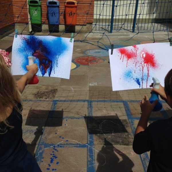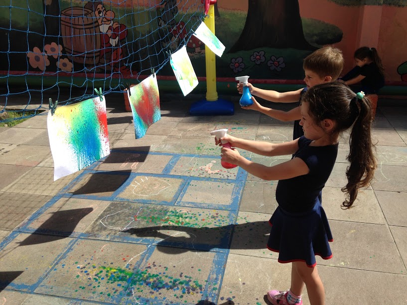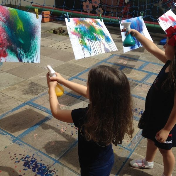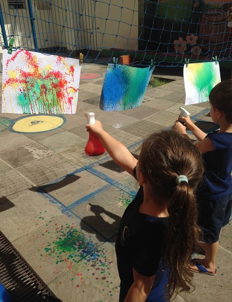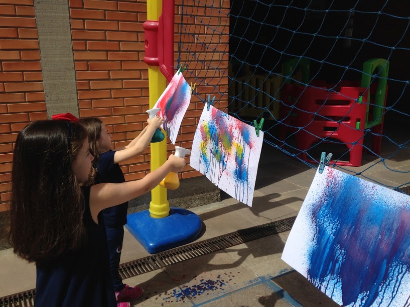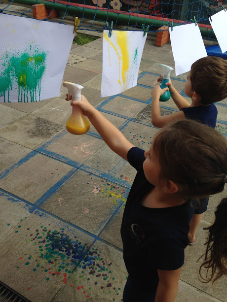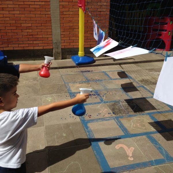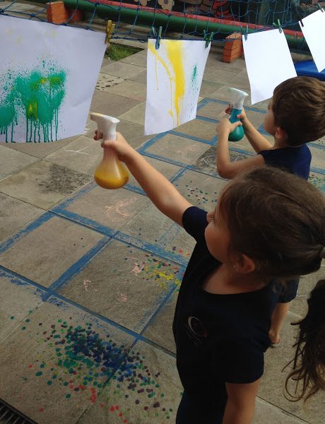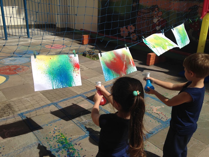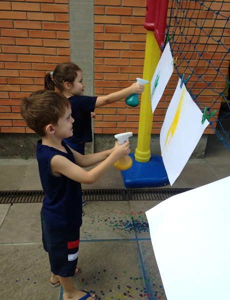 Conheceram o seu ciclo, ouviram histórias, listaram sua utilidade no nosso dia e fizeram uma atividade muito divertida usando água e tinta. Misturaram os dois elementos e borrifaram no papel.