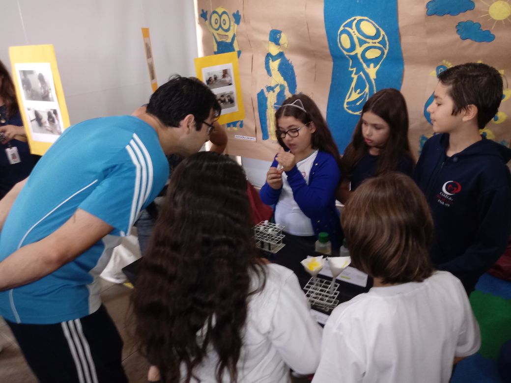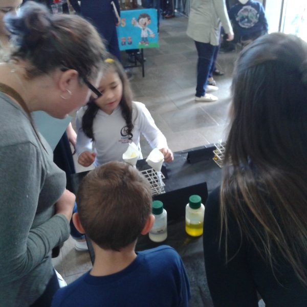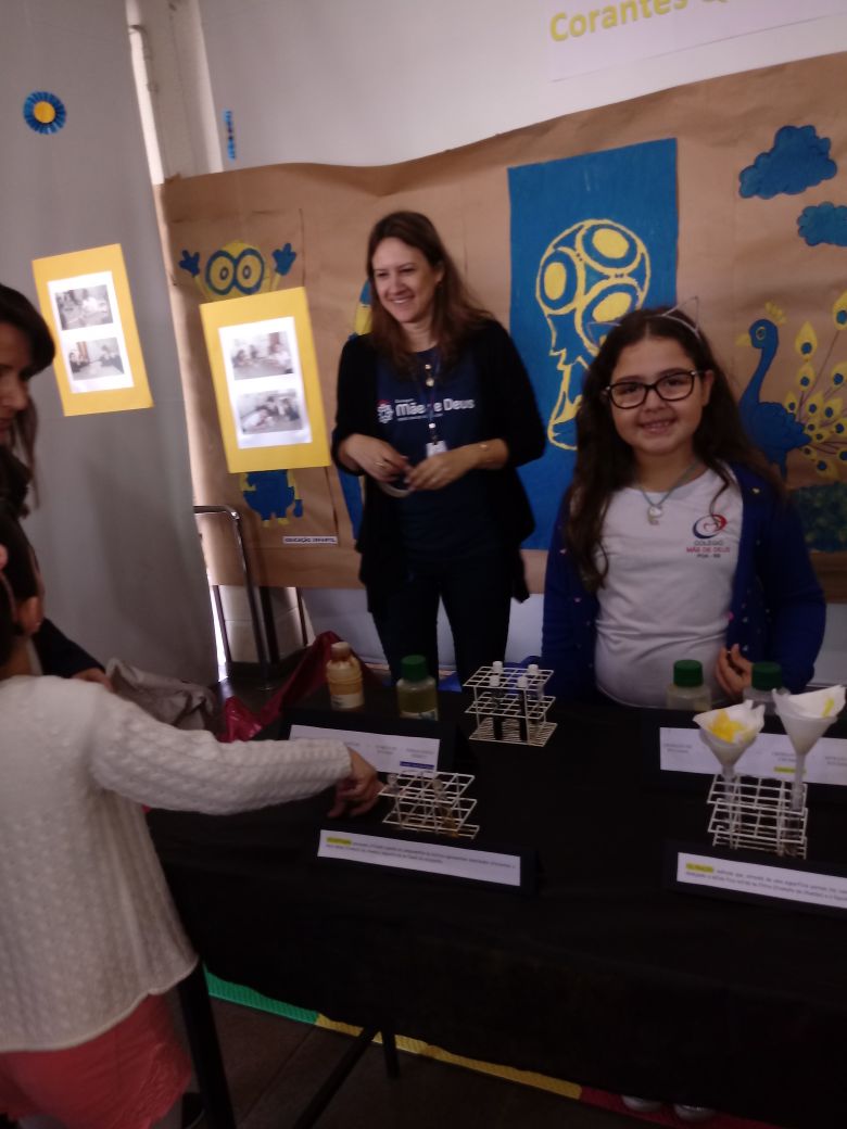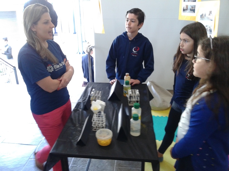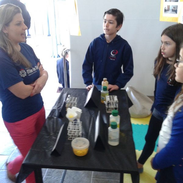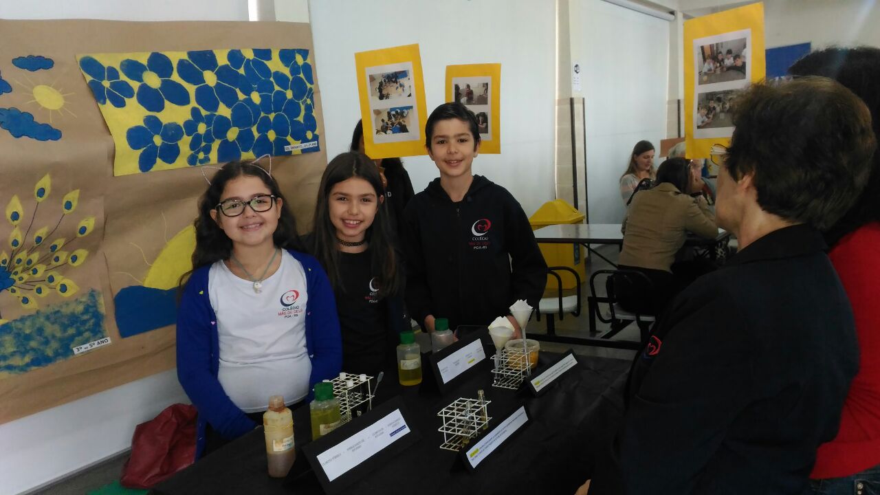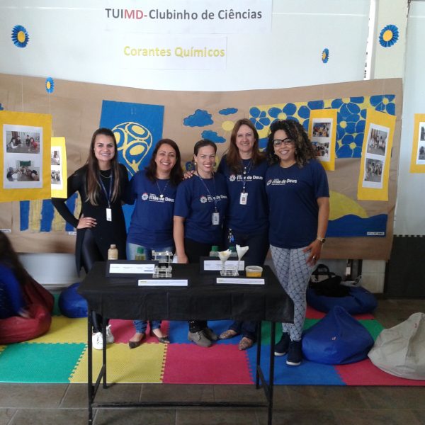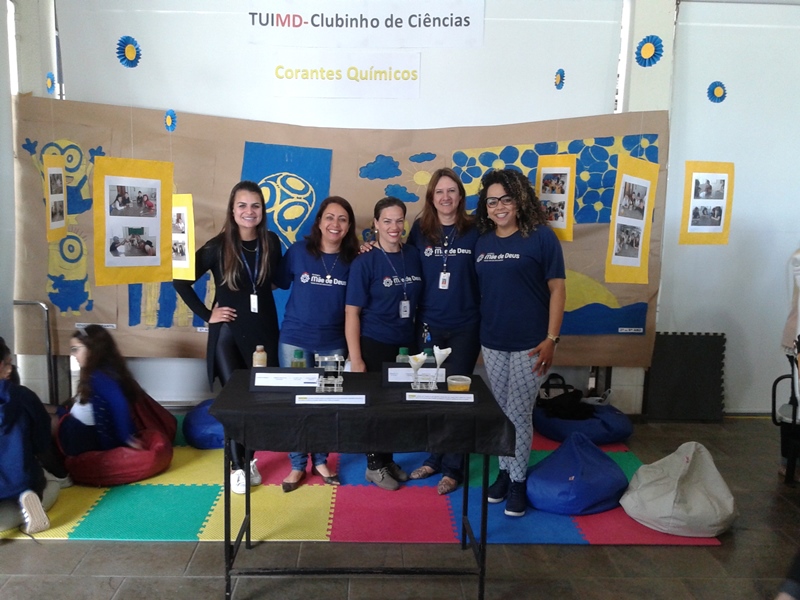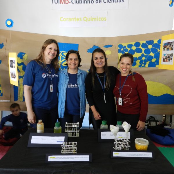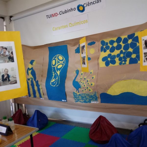 Na oficina Clubinho de Ciências, os alunos do TuiMD, a partir de substâncias químicas, criaram corantes químicos, o azul e o amarelo. E uniram a arte com a ciência através da pintura em painéis, levando essa experiência e exposição para a Mostra Científica no dia 28 de outubro.