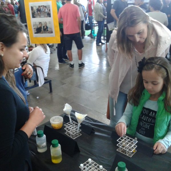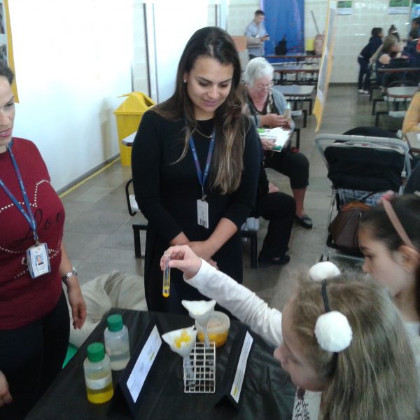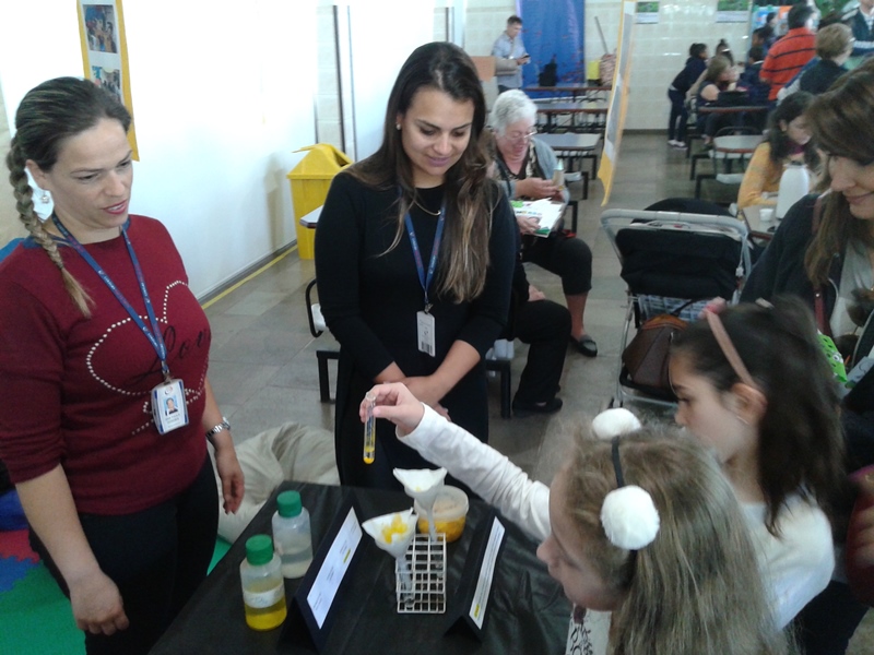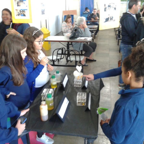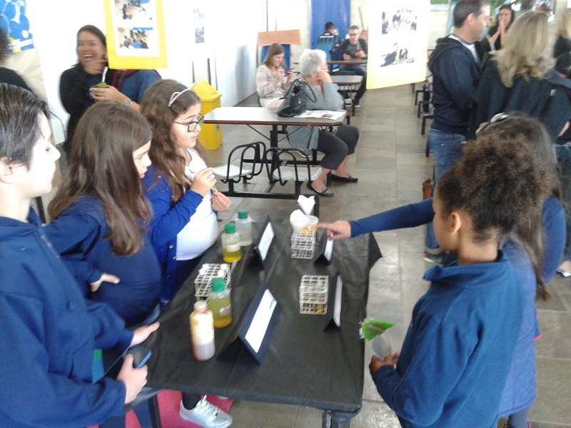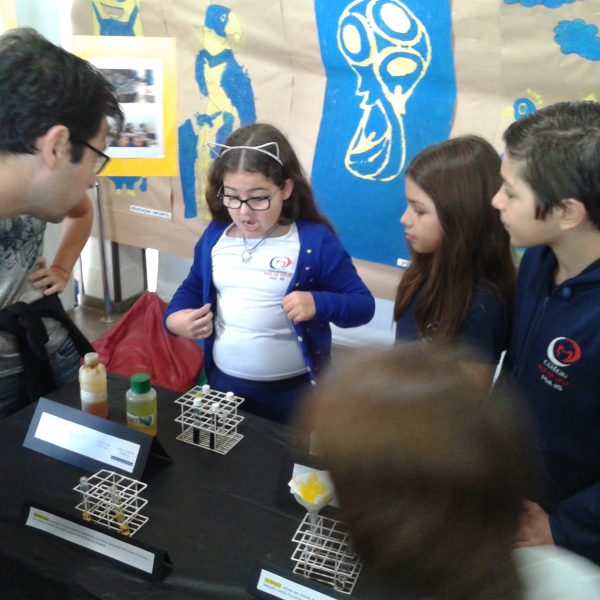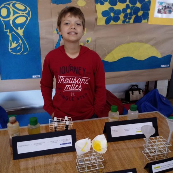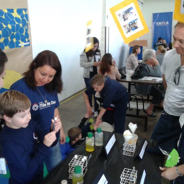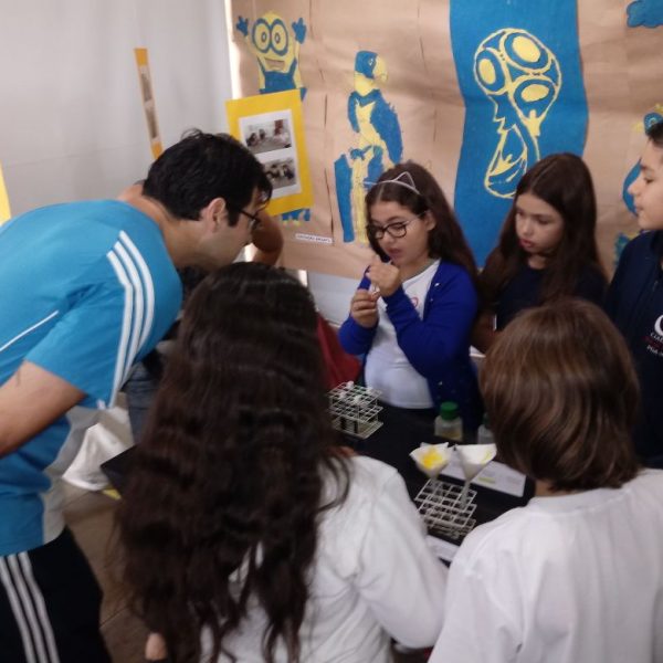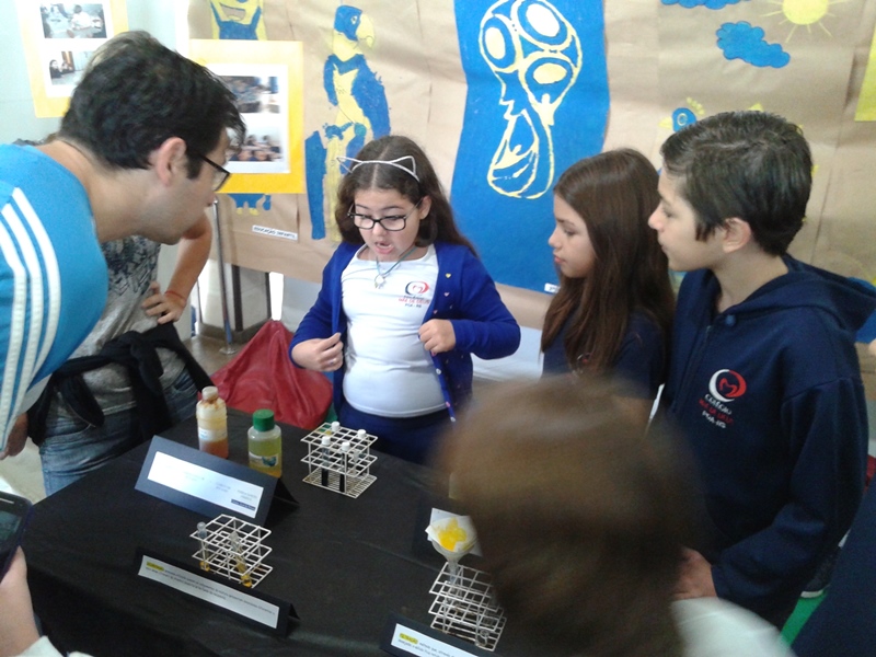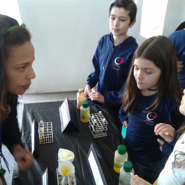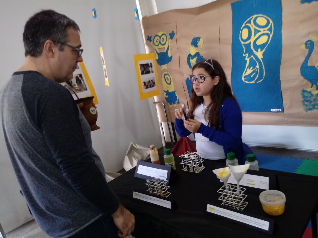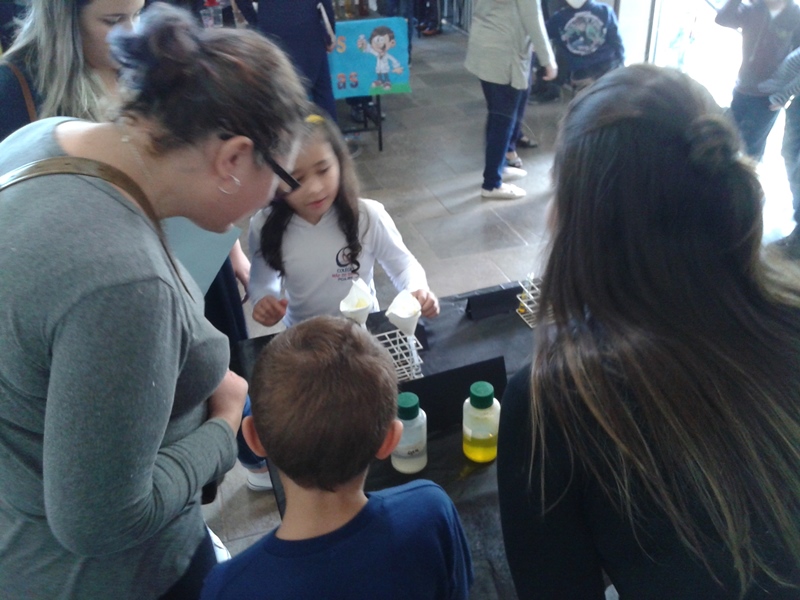 Na oficina Clubinho de Ciências, os alunos do TuiMD, a partir de substâncias químicas, criaram corantes químicos, o azul e o amarelo. E uniram a arte com a ciência através da pintura em painéis, levando essa experiência e exposição para a Mostra Científica no dia 28 de outubro.