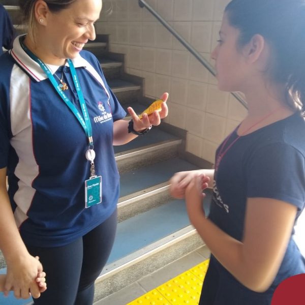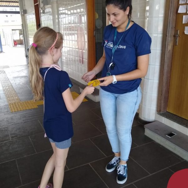 No dia 21 de novembro os alunos da turma 43 distribuíram cartões com palavras de gentileza pelos setores do colégio.