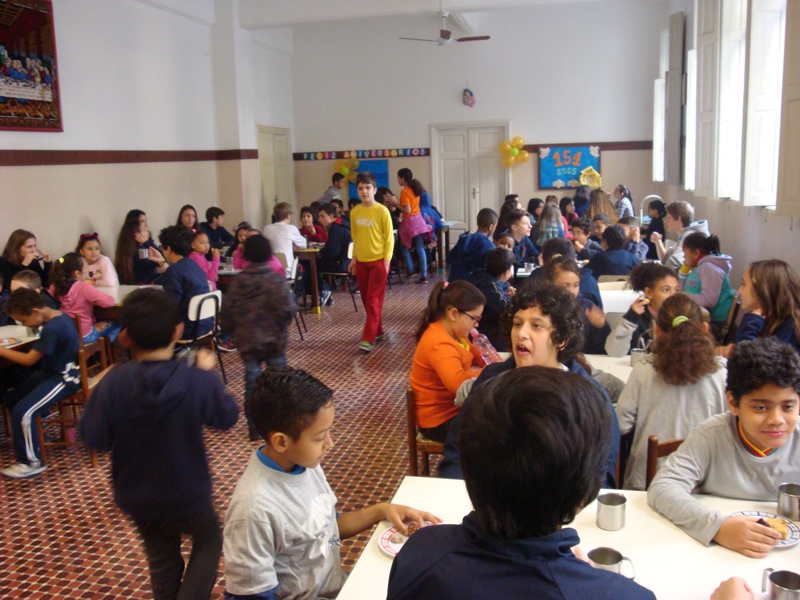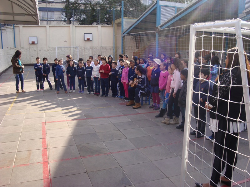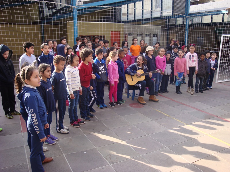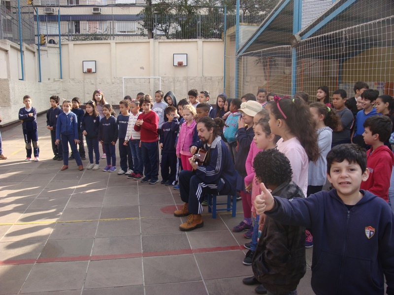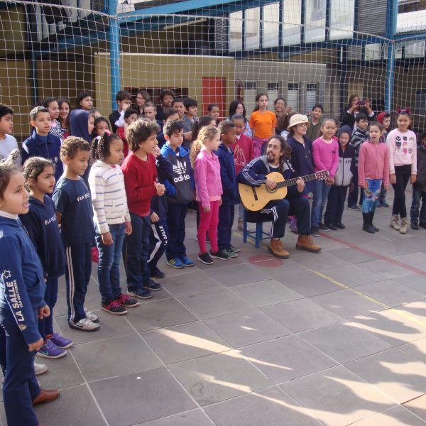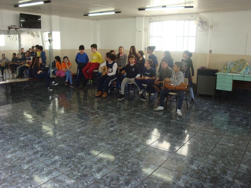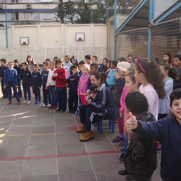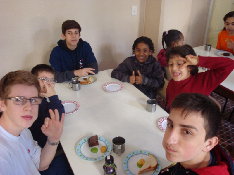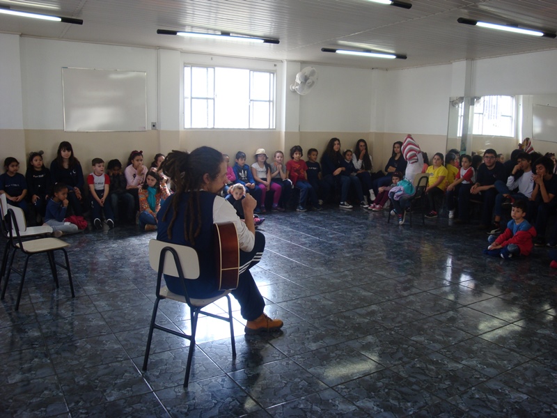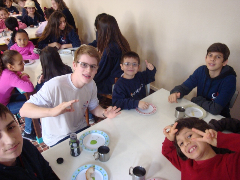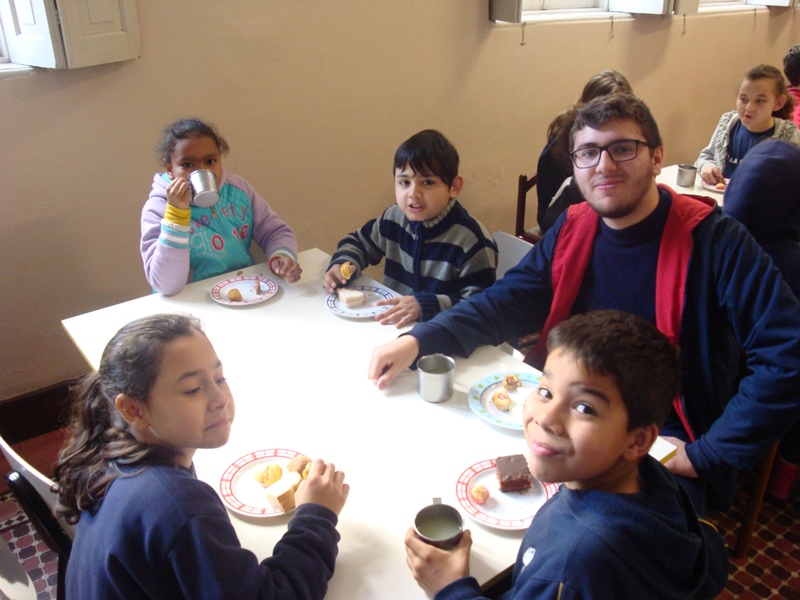Os estudantes compartilharam um gostoso lanche, preparado por eles, e também participaram, junto com as crianças, de duas oficinas: composição musical e esportes.