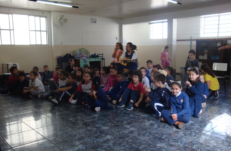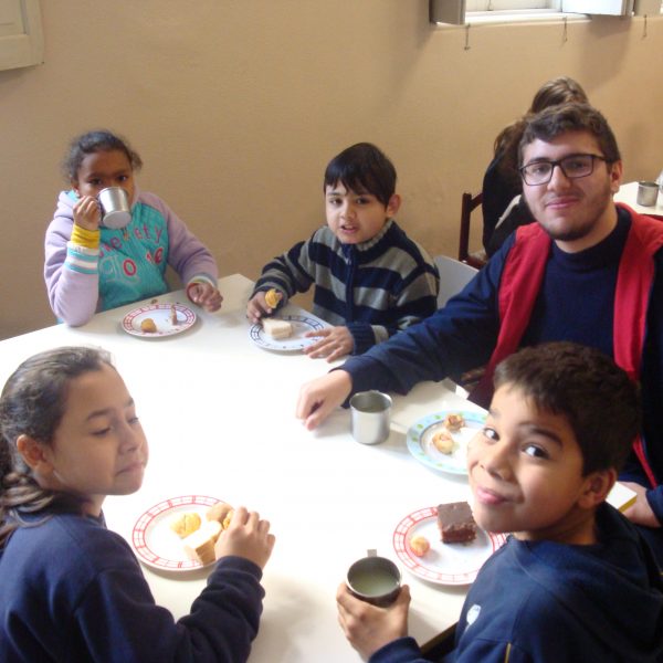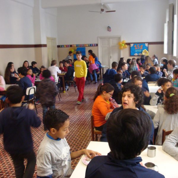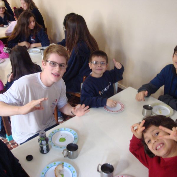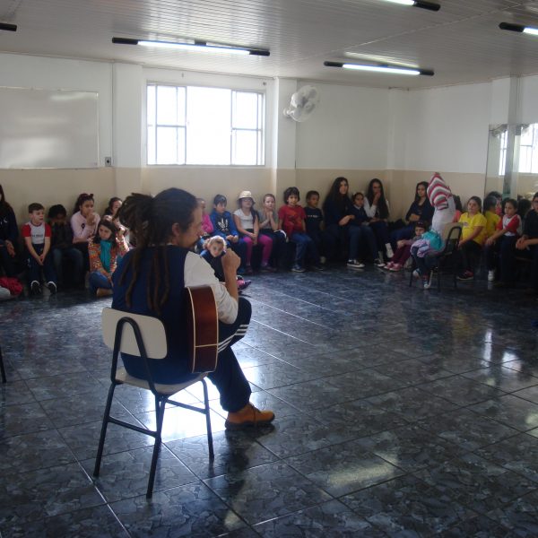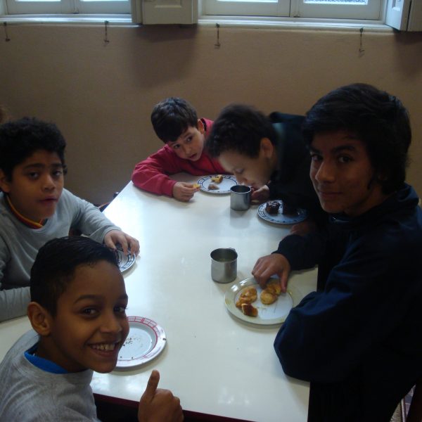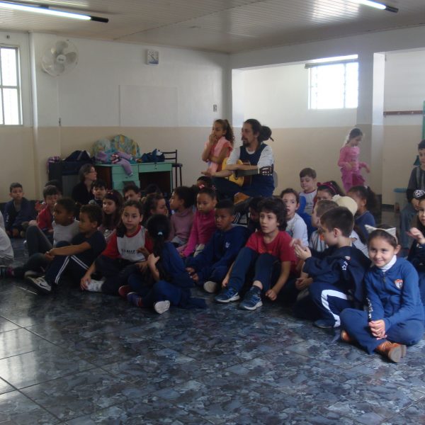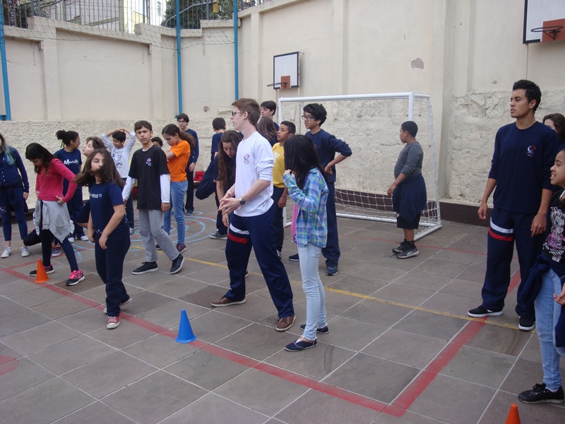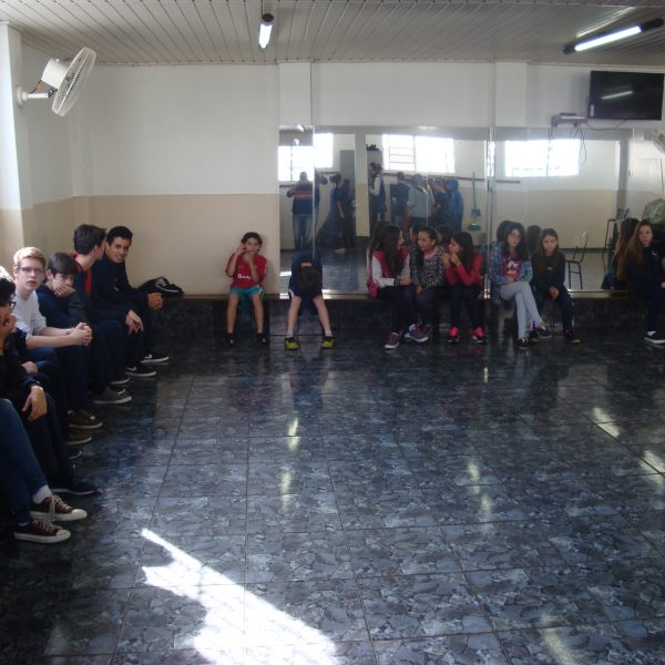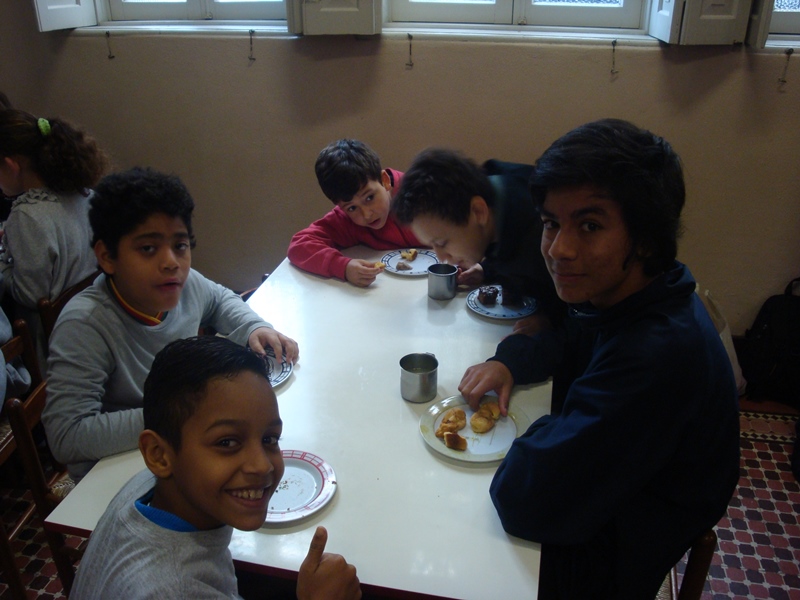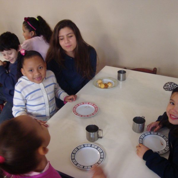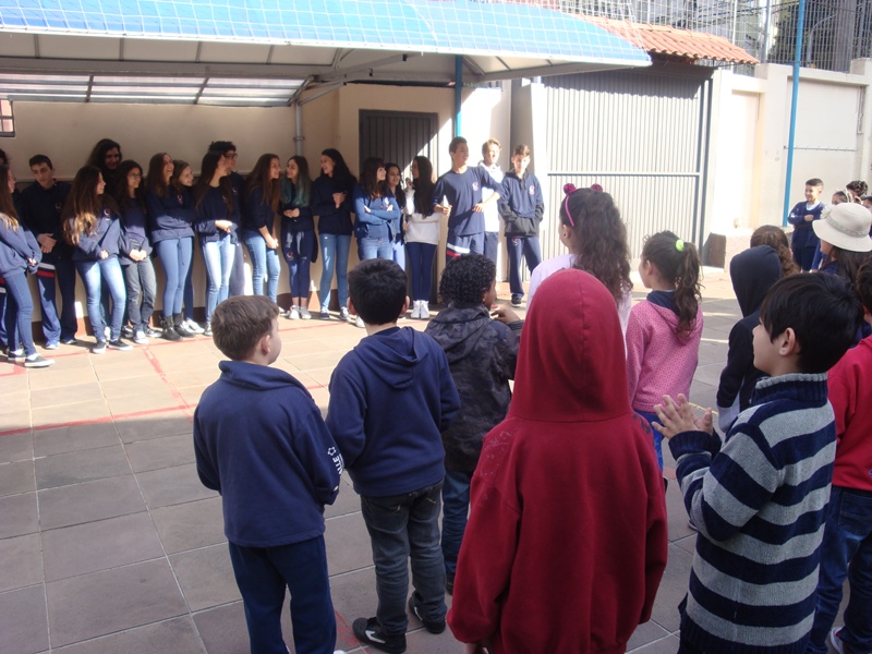 Os estudantes compartilharam um gostoso lanche, preparado por eles, e também participaram, junto com as crianças, de duas oficinas: composição musical e esportes.
