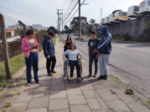 No mês de julho trabalhamos sobre a inclusão e valores, sobre os PCDs, sobre as barreiras que elas encontram, impostas pela sociedade e pela falta de preocupação ao pensar em uma rua, uma calçada entre outras limitações que nossas crianças e adolescentes encontraram ao vivenciar essa experiência.