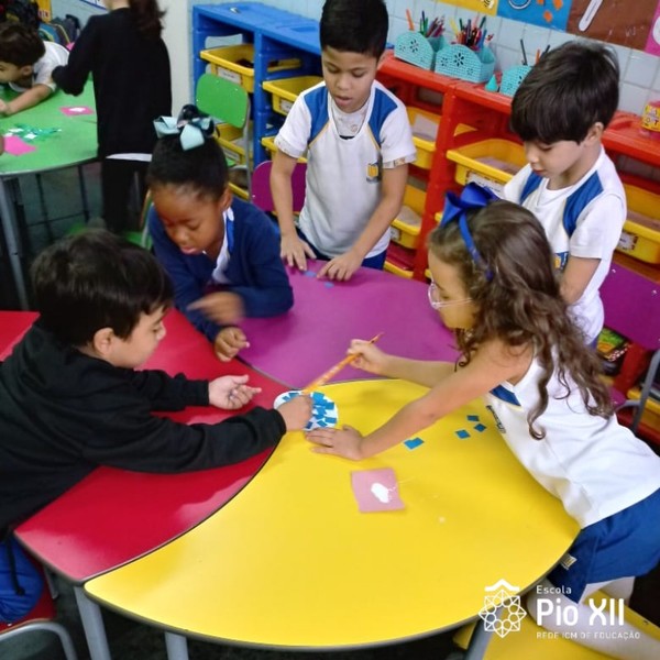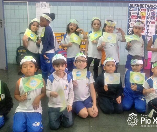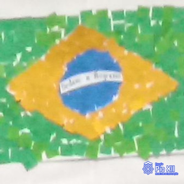 O que podemos fazer para construir um país independente? A turma do Nível III da Professora Bianca, por meio da colaboração, confeccionou uma linda bandeira de mosaico.