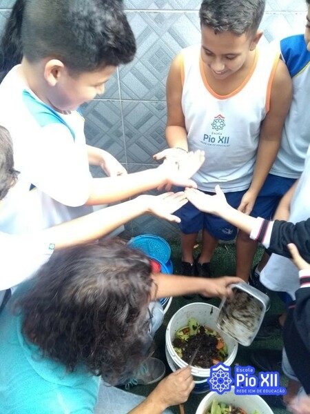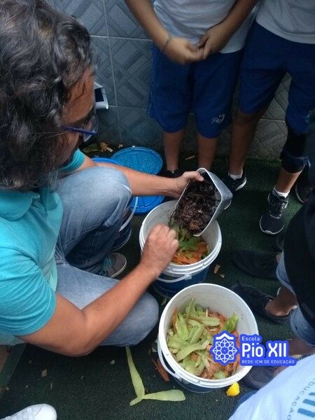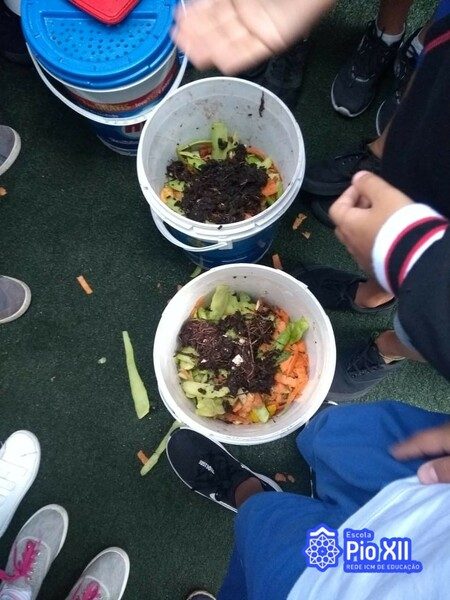 Nesta atividade aprendemos a produzir composto orgânico, o húmus, um adubo ecológico que não contamina o solo e ajuda a reduzir a produção de lixo. Montamos uma composteira, aprendemos sobre o papel das minhocas neste processo e utilizamos o húmus produzido em nossa Horta Escolar!