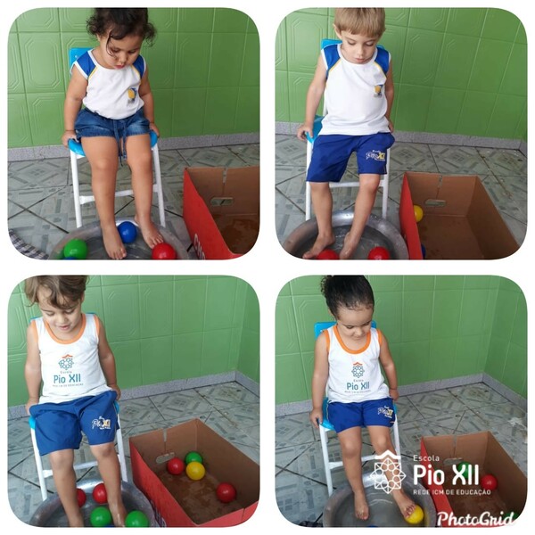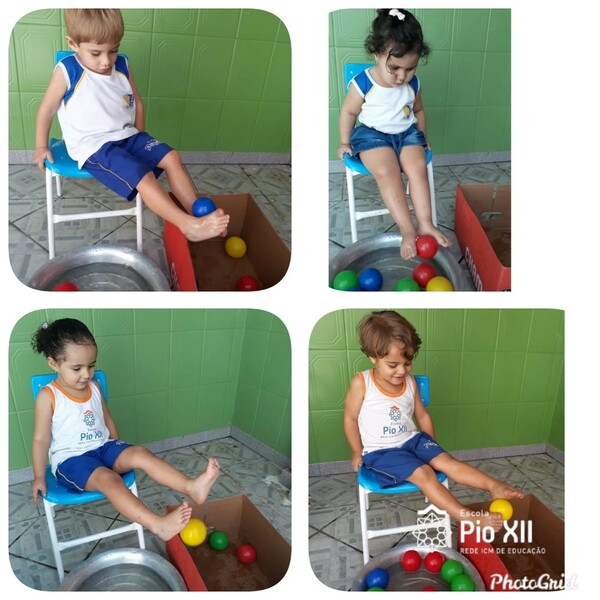 A Turma do Maternal/Manhã foi desafiada na dinâmica das bolinhas usando somente os pezinhos.
