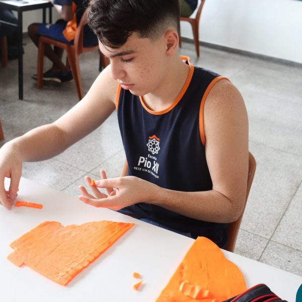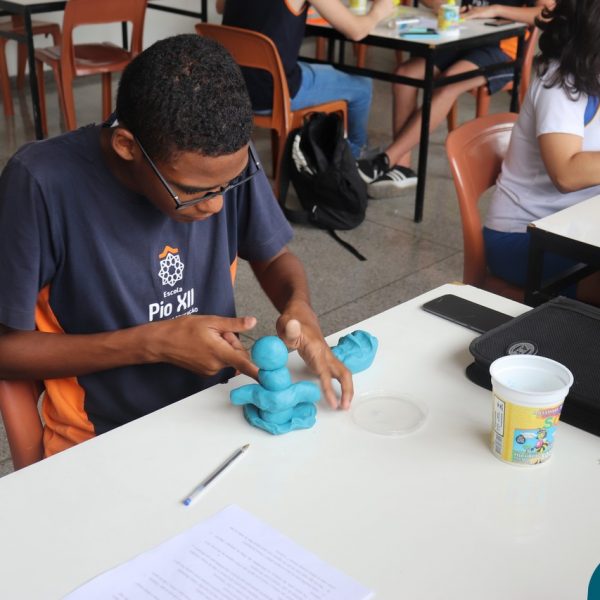 Os Jovens em Pastoral Escolar, do 8º AE ao Ensino Médio, realizaram um encontro para trocarem experiências e reflexões. O encontro foi conduzido com a presença do professor e coordenador Marcelo Muzzi e do professor Guilherme de Oliveira. As reflexões aconteceram a partir de diversos questionamentos acerca do que pensam sobre a vida, sobre as relações humanas – individuais e coletivas. Para tornar o momento mais interativo, além do bate-papo, cada grupo recebeu o desafio de expressar por meio da massinha uma síntese do que foi debatido.