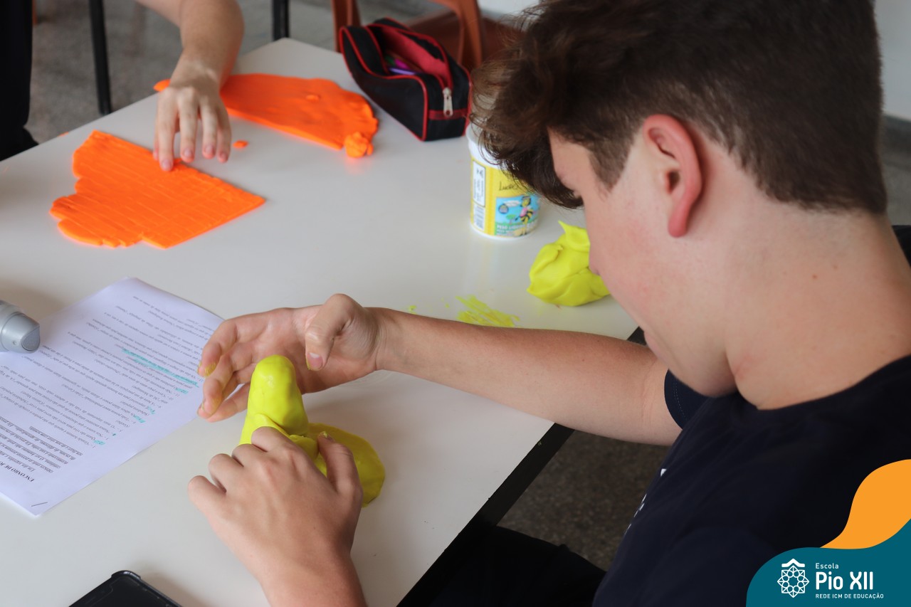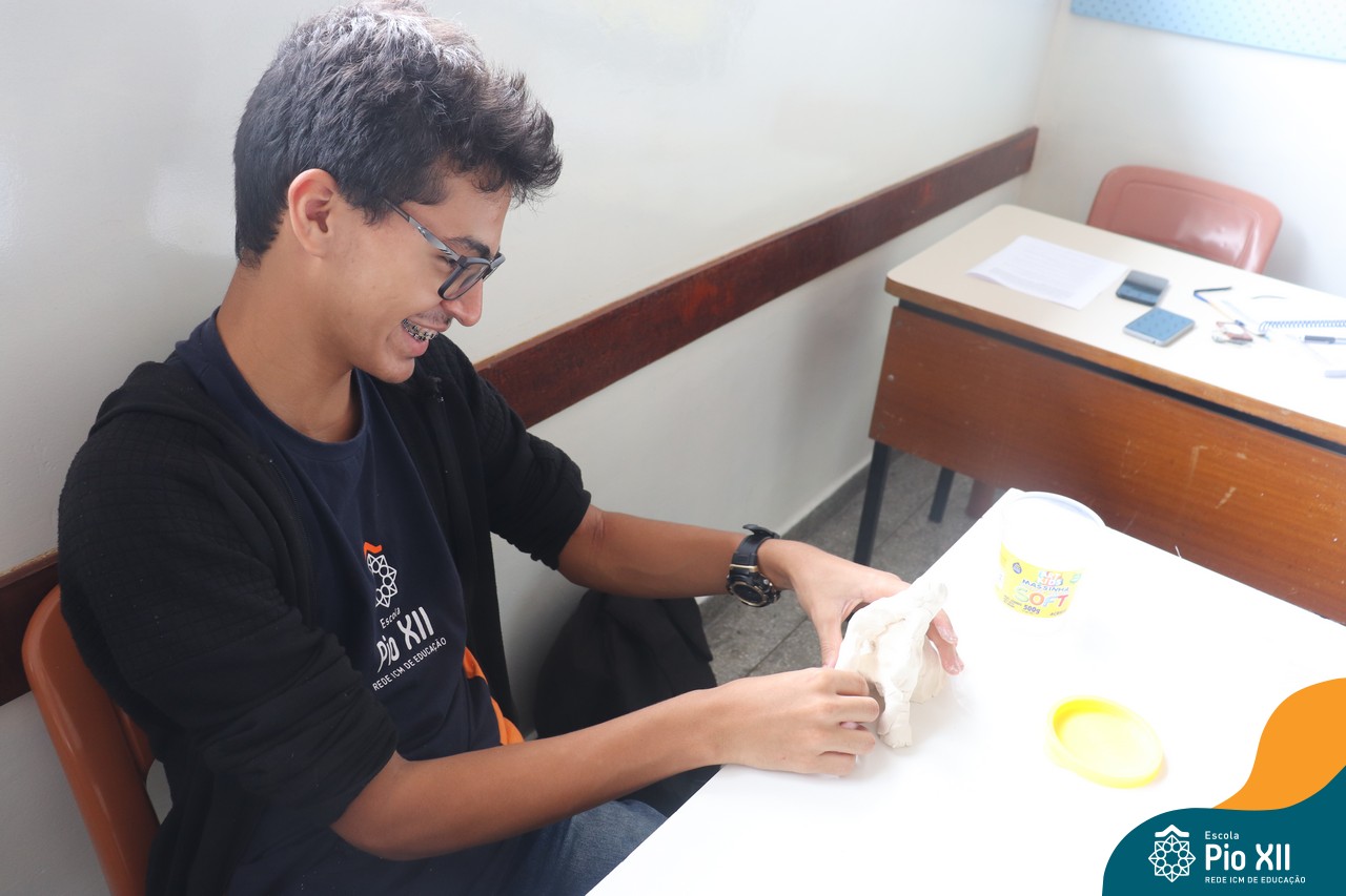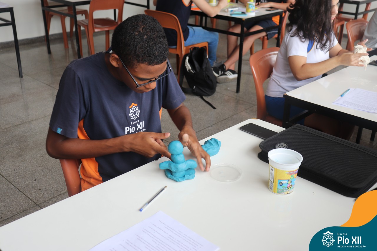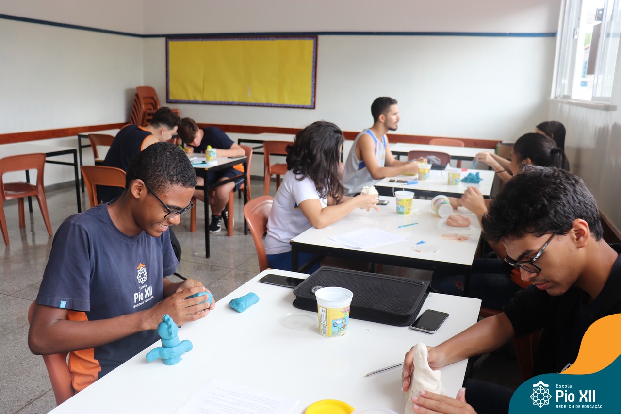 Os Jovens em Pastoral Escolar, do 8º AE ao Ensino Médio, realizaram um encontro para trocarem experiências e reflexões. O encontro foi conduzido com a presença do professor e coordenador Marcelo Muzzi e do professor Guilherme de Oliveira. As reflexões aconteceram a partir de diversos questionamentos acerca do que pensam sobre a vida, sobre as relações humanas – individuais e coletivas. Para tornar o momento mais interativo, além do bate-papo, cada grupo recebeu o desafio de expressar por meio da massinha uma síntese do que foi debatido.