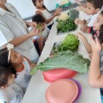 Semanalmente os Grupos do Horário Integral, participam de atividades nutricionais com a orientação da nutricionista Camila, para reconhecimento das características, propriedades e degustação de diversos alimentos. Juntos observaram as verduras e frutas e, em seguida, inseriram esses alimentos nas suas principais refeições. No almoço vivenciaram a experiência de degustar brócolis, couve-flor e couve. No lanche, preparam um delicioso bolo de laranja.