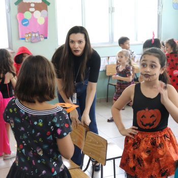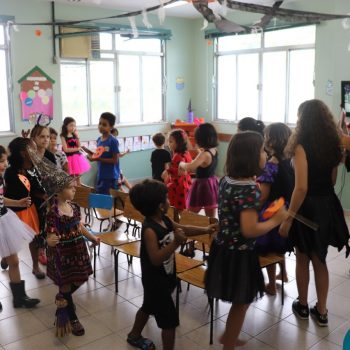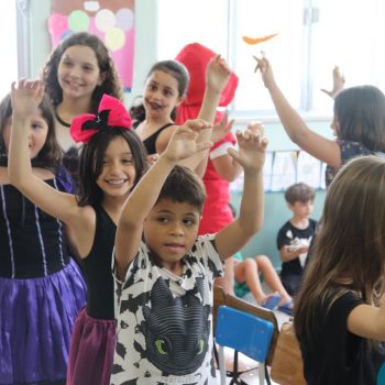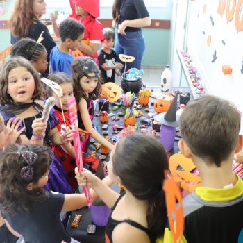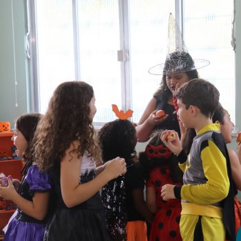 Os alunos do Horário Integral se divertiram muito no Halloween. Juntos brincaram de caça ao tesouro, dança da cadeira, ovo na colher, dança da maçã… A alegria e o companheirismo foram os ingredientes principais para que a mágica da amizade estivesse presente nessa festa de pura imaginação.