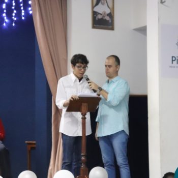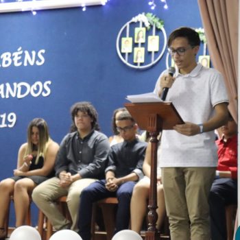 Na quarta-feira, dia 18 de dezembro, os alunos do 9º Ano do Ensino Fundamental – Anos Finais celebraram, como muita alegria, ao lado de seus familiares e equipe pedagógica, a passagem para mais um ciclo de estudos. Não faltaram homenagens, mensagens e recordações dos momentos importantes vividos nessa Instituição. Sucesso!