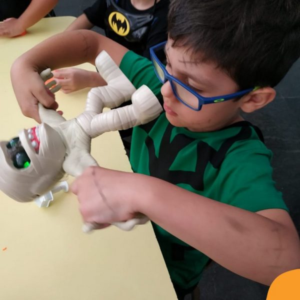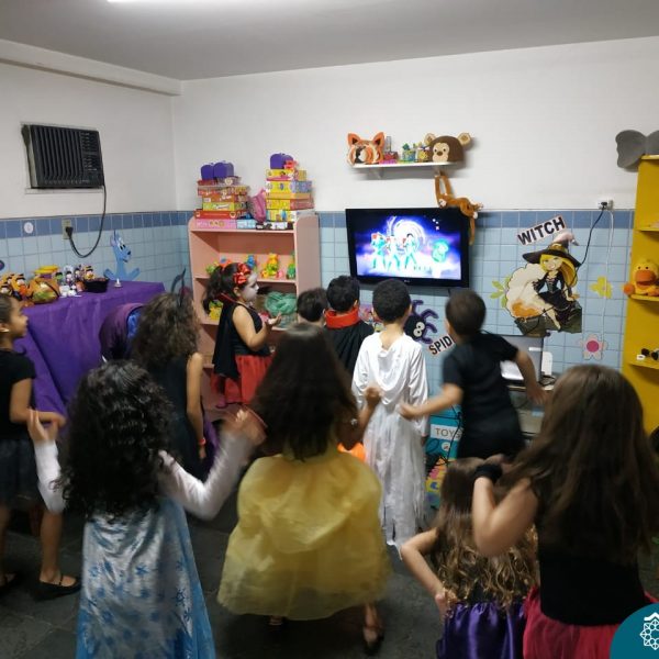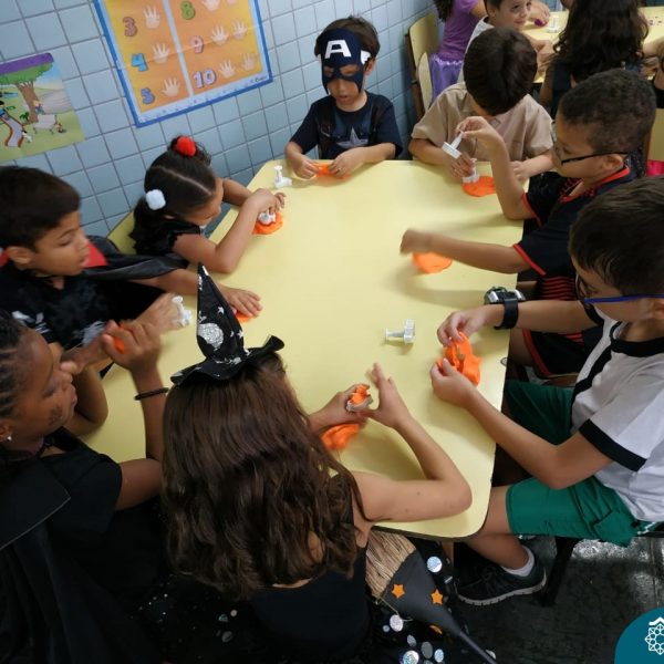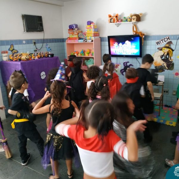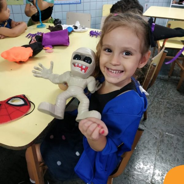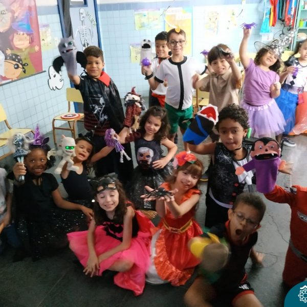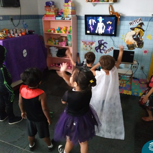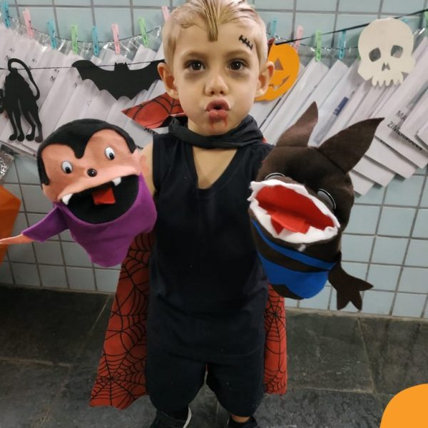 O Halloween da Educação Infantil foi divertidíssimo! As crianças aprenderam sobre esse evento que faz parte da cultura inglesa, através de vídeos, games, fantoches, brinquedos, massinha e moldes do tema e muita música. Aprender brincando estimula o gosto pela língua estrangeira e sua cultura.