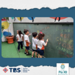 A Turma do Pré I-B está aprendendo sobre os membros da família e cada aluno escolheu uma pessoa para desenhar. Durante a atividade os alunos puderam conhecer novas palavras do vocabulário em Inglês: mom, dad, grandma, grandpa, sister e brother.