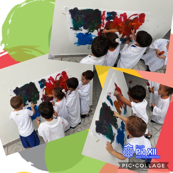 Os alunos exploraram a  coordenação motora, a mistura de cores e o trabalho em equipe.